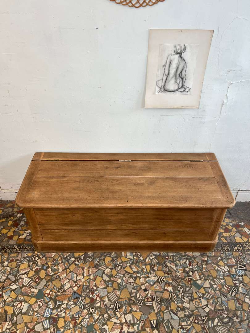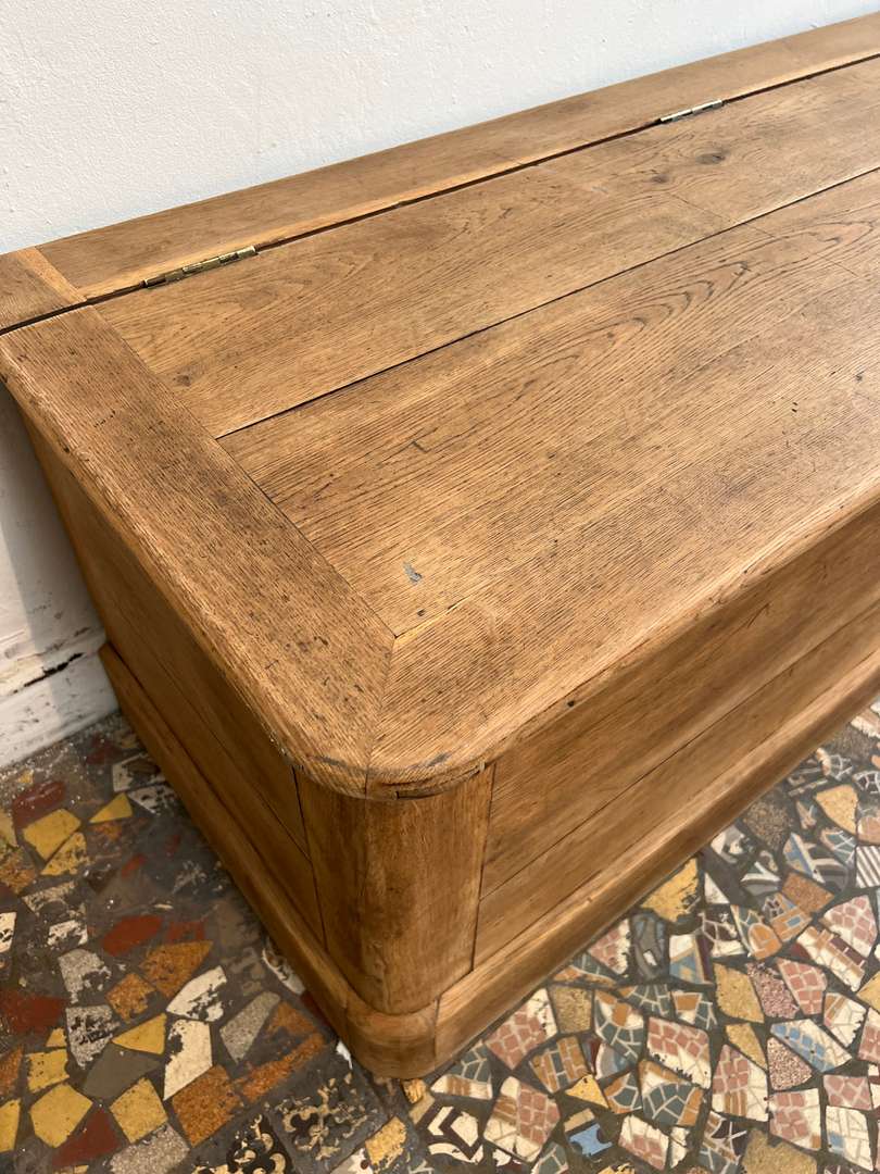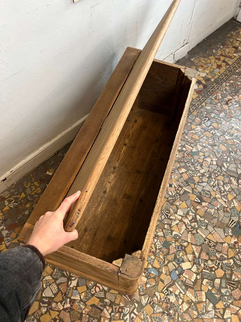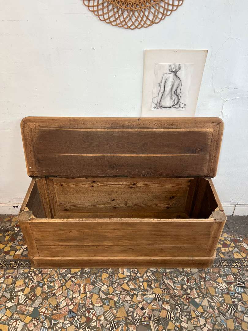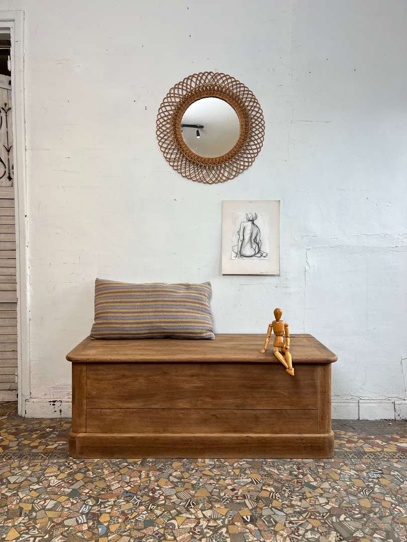 Ancien banc coffre en chêne Ce produit est venduBanc coffre ancien en chêne brut, début XXᵉ siècle. Lignes sobres, belle patine et grande capacité de rangement. Idéal dans une entrée, un couloir ou au pied d’un lit. #bancancien #meubleancien #cheneDimensionsLargeur127 cmProfondeur50 cmHauteur48 cmRenseignementsRéférence2551009
