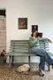 Ancien banc de jardin en bois – Patine bleue d’origine