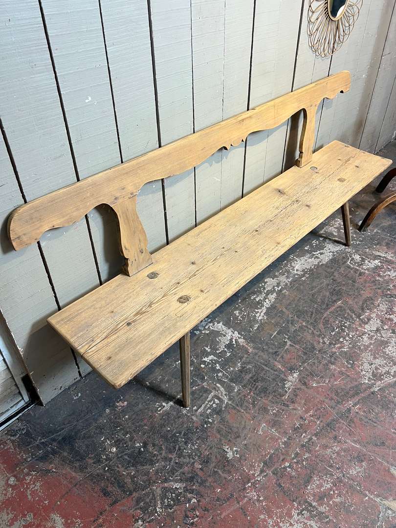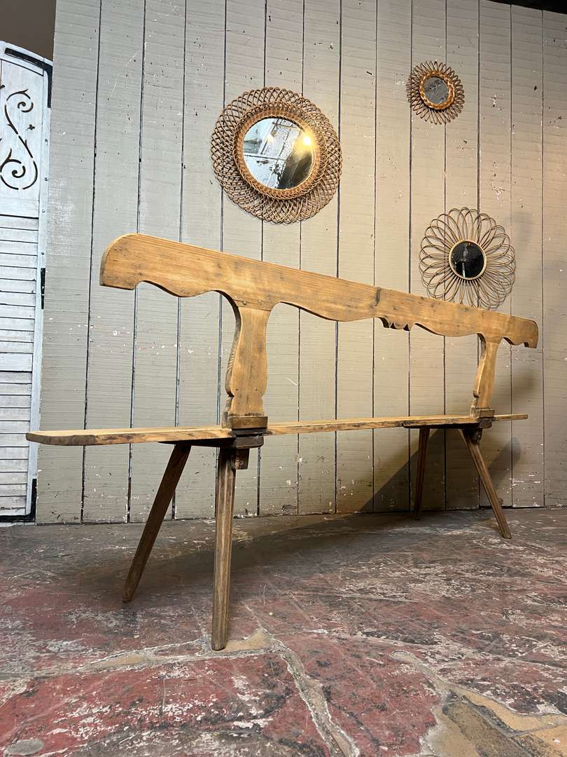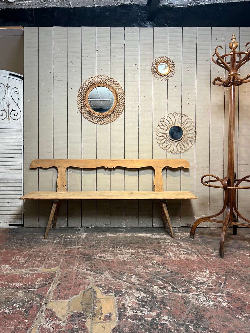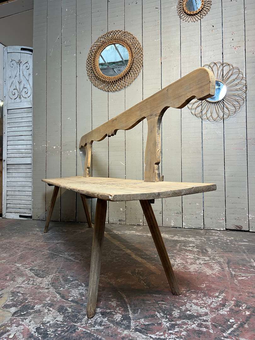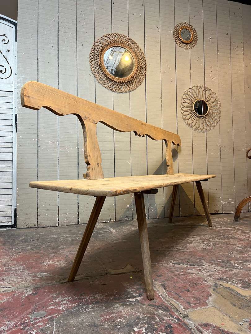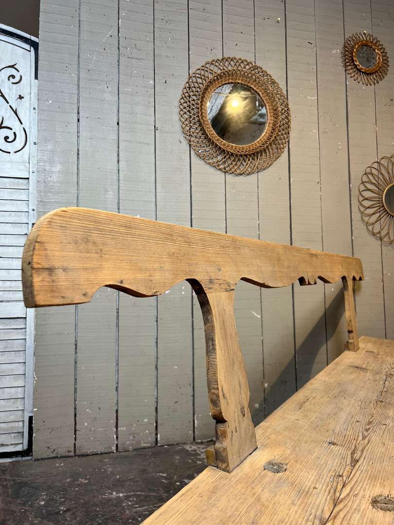 Ancien banc d’estaminet en sapin 380 € Ajouter au panierAncien banc d’estaminet en sapin brut, avec un joli dossier travaillé et une assise longue et stable. Parfait contre un mur, dans une entrée, ou autour d’une grande table. #banc #bancancien #bancestaminet #sapin #meubleancien #brocante #decoauthentique #marchanddoublisDimensionsLargeur201 cmProfondeur43 cmHauteur89 cmProfondeur d'assise37,5 cmHauteur d'assise46 cmRenseignementsRéférence2547004