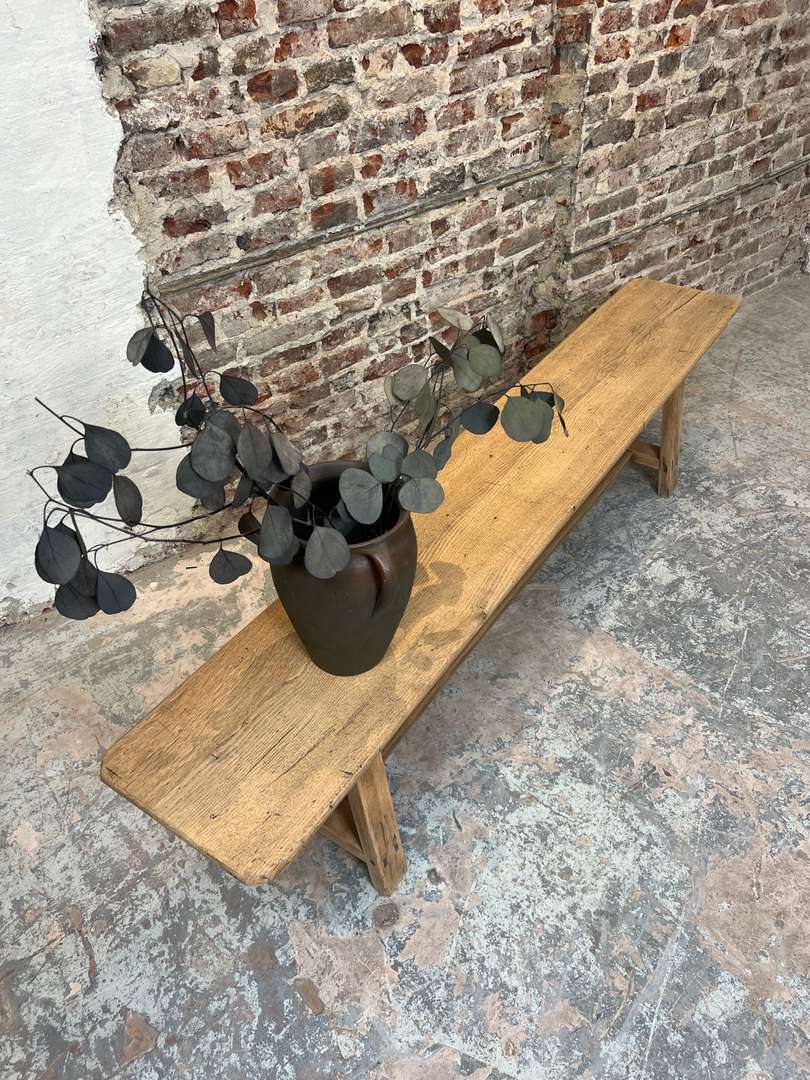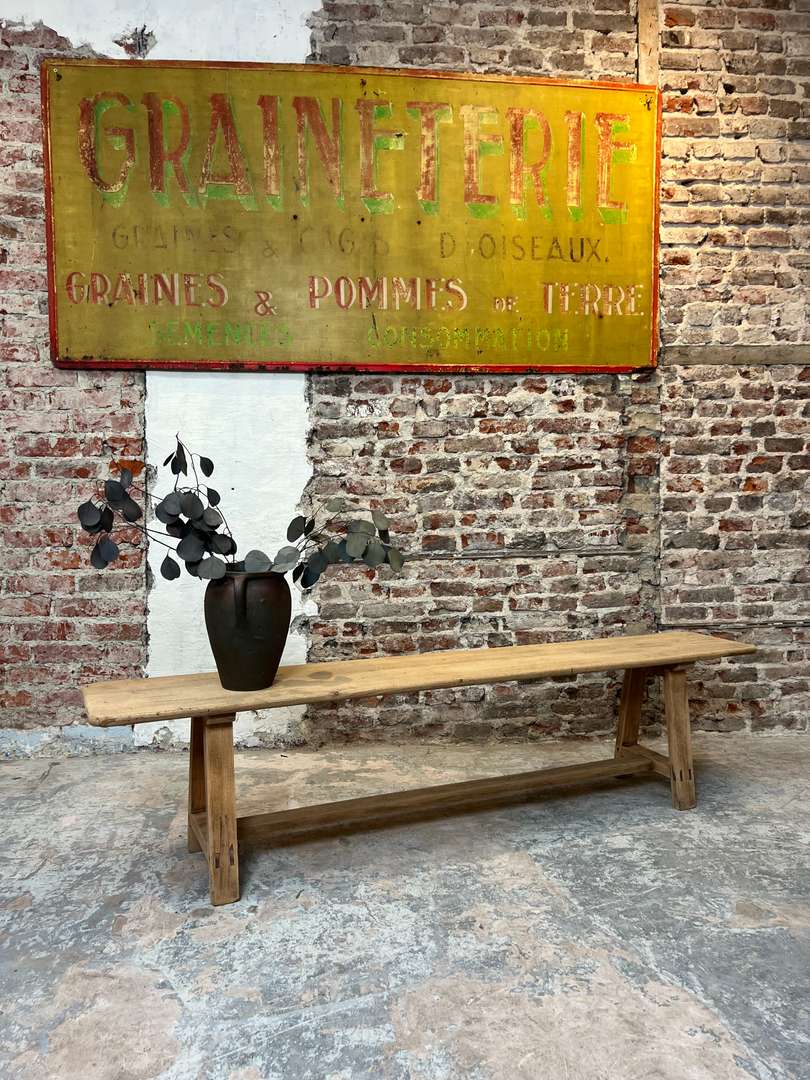 Ancien banc en chêne brut 250 € Ajouter au panierBanc ancien en chêne brut, au style simple et authentique. Solide et polyvalent, il trouvera facilement sa place autour d’une table, en bout de lit ou encore dans une entrée. #bancancien #chene #boisbrut #meubleancien #meublevintage #brocante #decoauthentique #decorationinterieurDimensionsLargeur185 cmProfondeur30 cmHauteur45 cmRenseignementsRéférence2540013