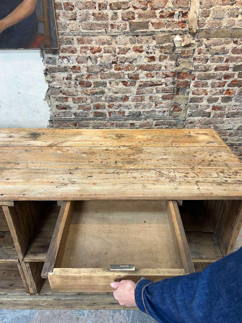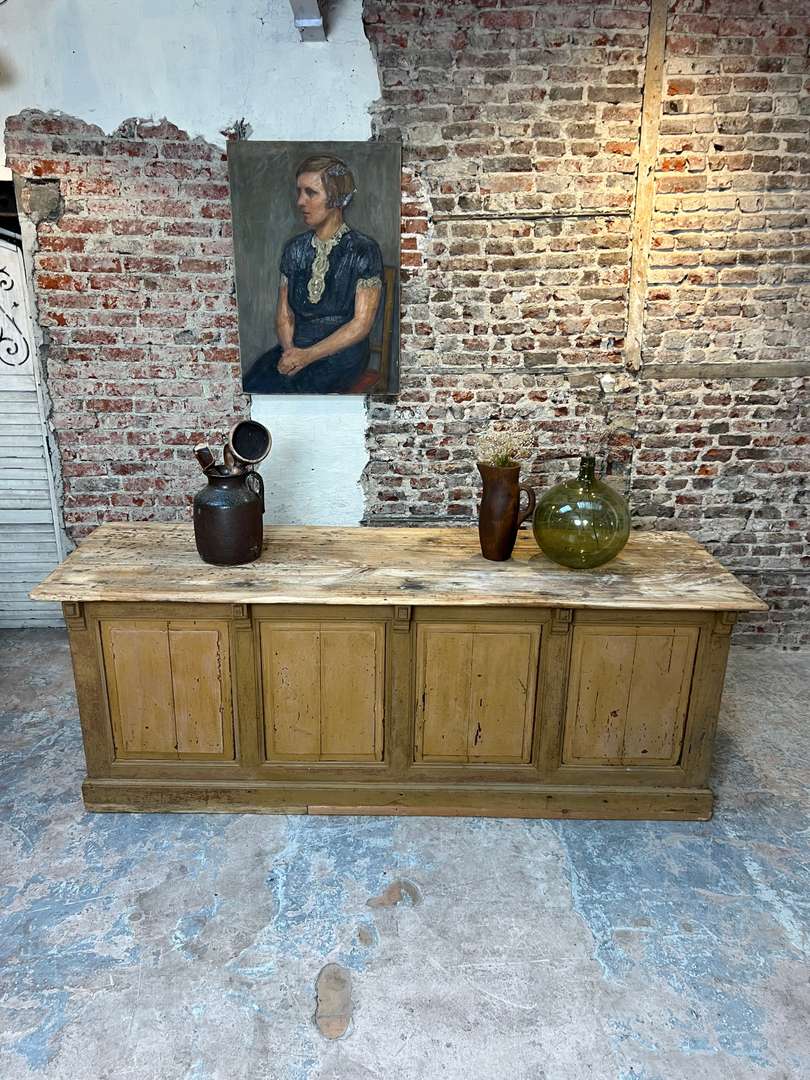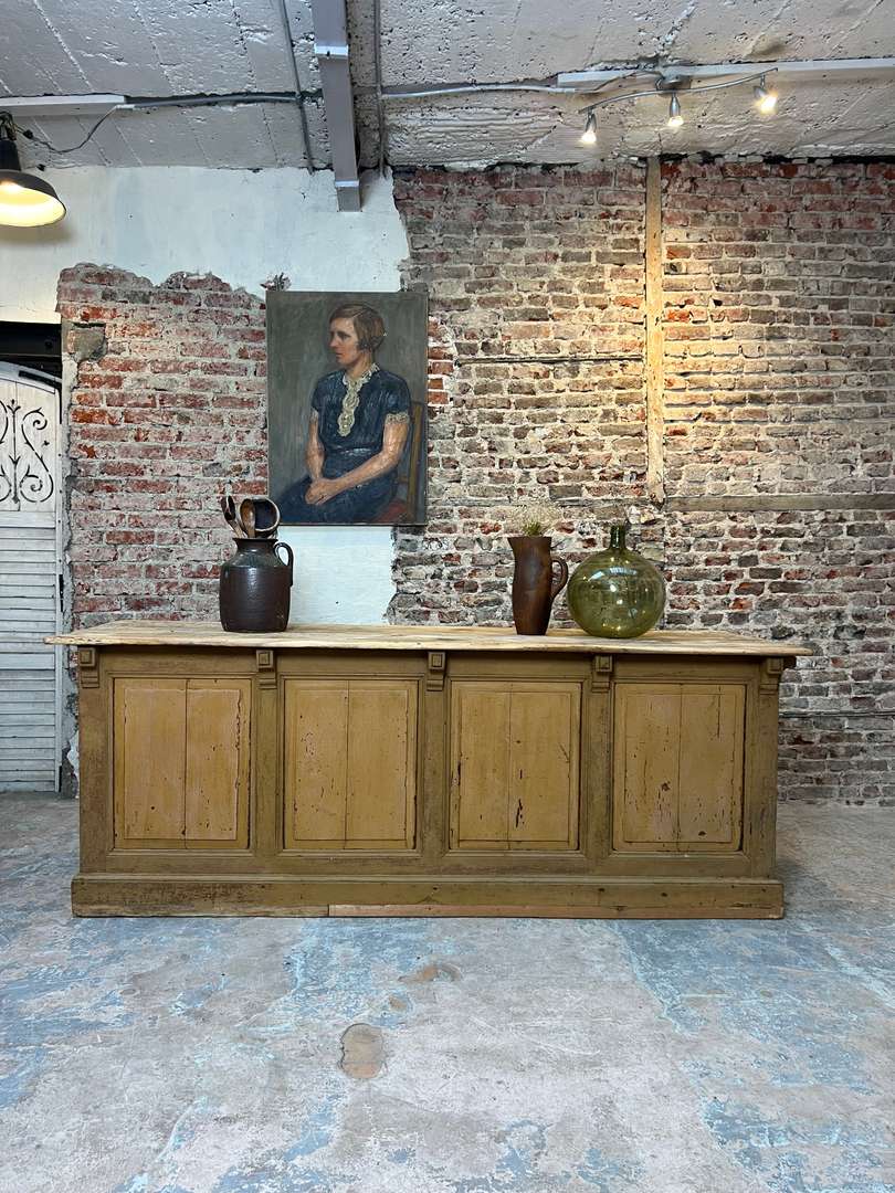 Ancien comptoir XIXe en sapin et tilleul