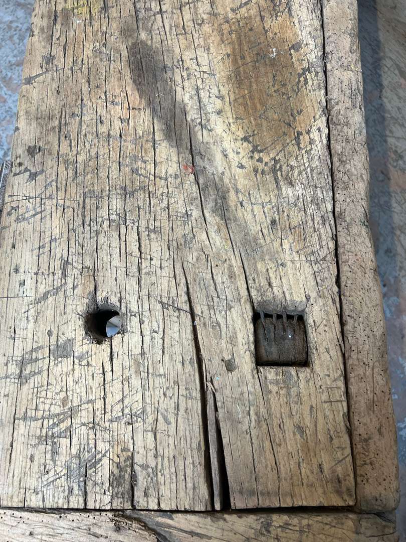 Ancien établi en bois brut