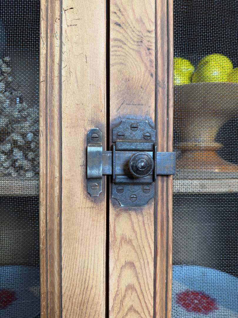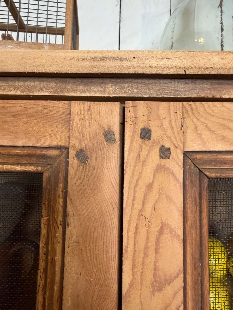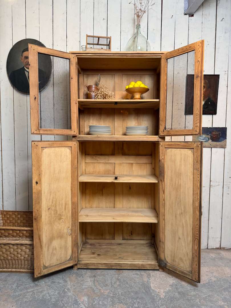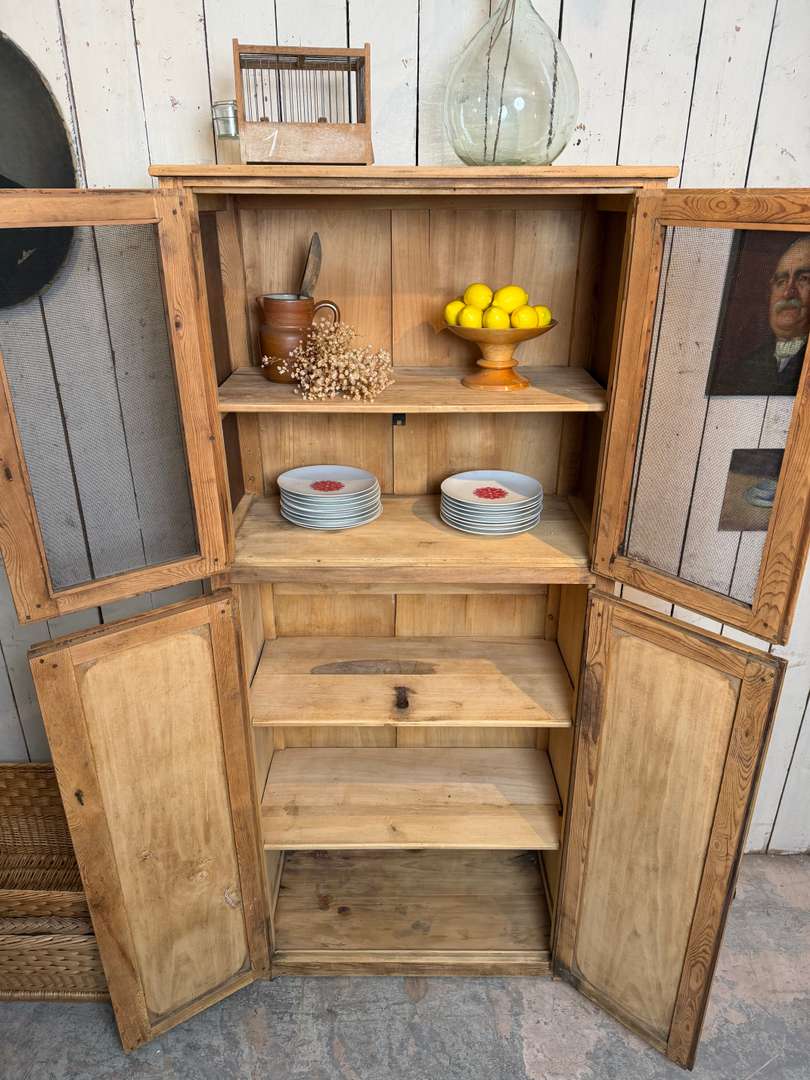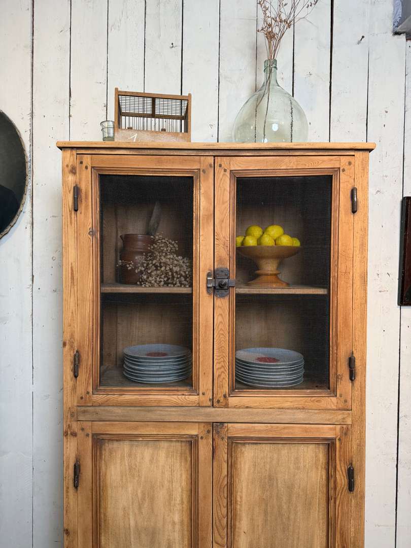 Ancien garde-manger – début XXe 750 € Ajouter au panierAncien garde-manger début XXe siècle, grande dimension. Structure en sapin et peuplier, portes grillagées avec verrou d’origine. #gardemanger #meubleancien #debut20eme #sapin #peuplier #brocanteDimensionsLargeur91 cmProfondeur46 cmHauteur205 cmProfondeur intérieure40 cmHauteur des étagères partie haute 39 + 32 cmHauteur des étagères partie basse 38 + 39 + 41 cmRenseignementsRéférence2602011