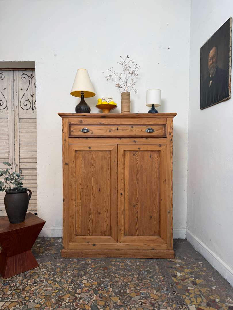 Ancien meuble parisien en sapin brut 580 € Ajouter au panierBuffet parisien en sapin avec 1 tiroir. Meuble fermant à clé, lignes sobres et patine naturelle. #buffetparisien #meubleancien #sapin #mobilierancien #brocanteDimensionsLargeur110 cmProfondeur48.5 cmHauteur137 cmProfondeur intérieure39 cmRenseignementsRéférence2602004