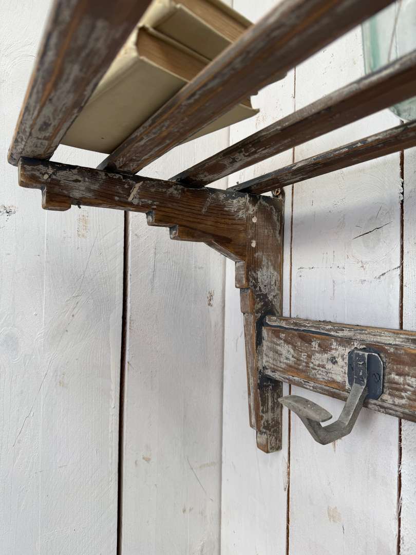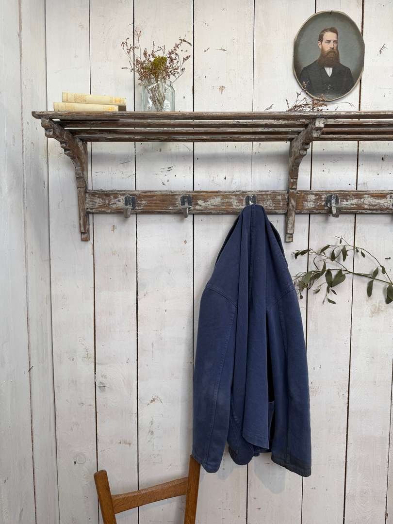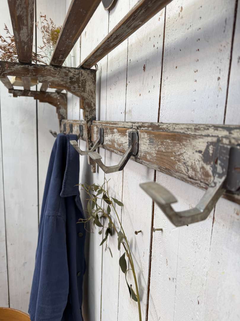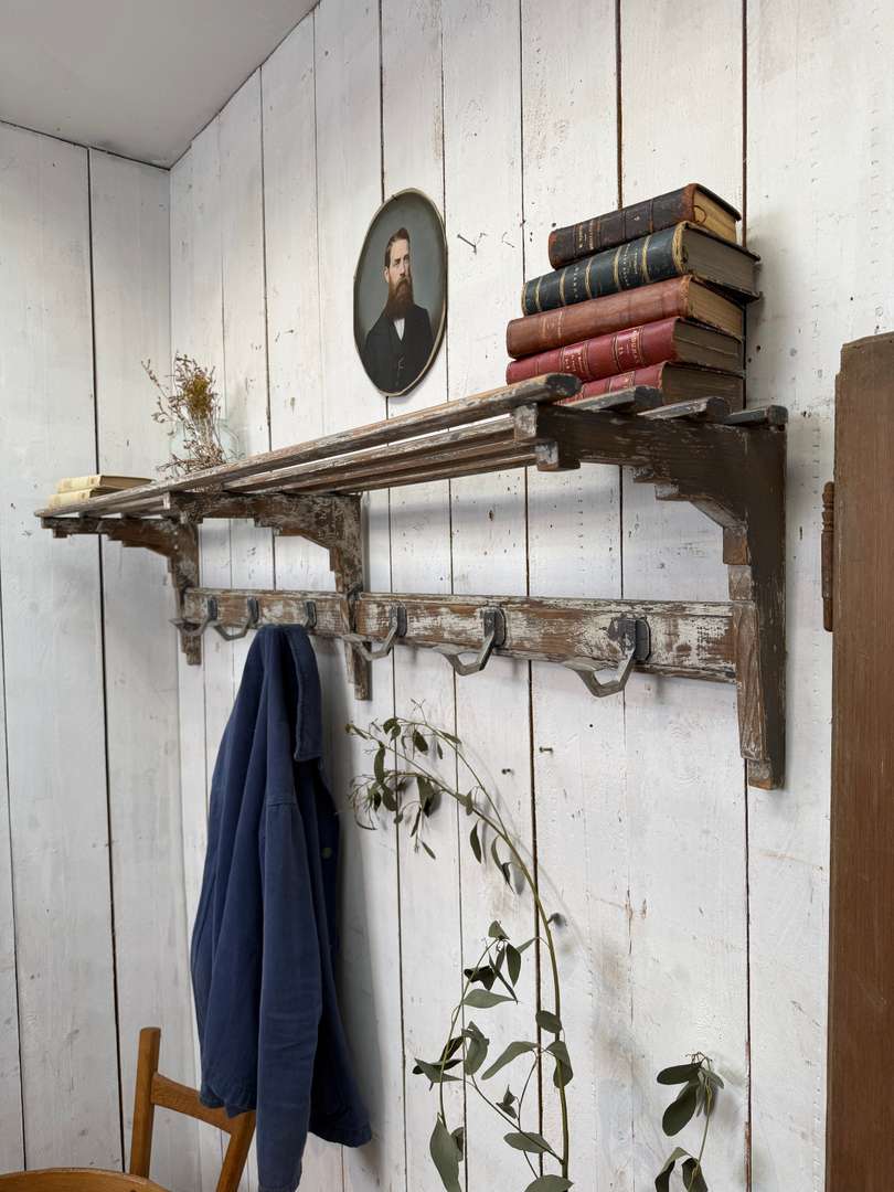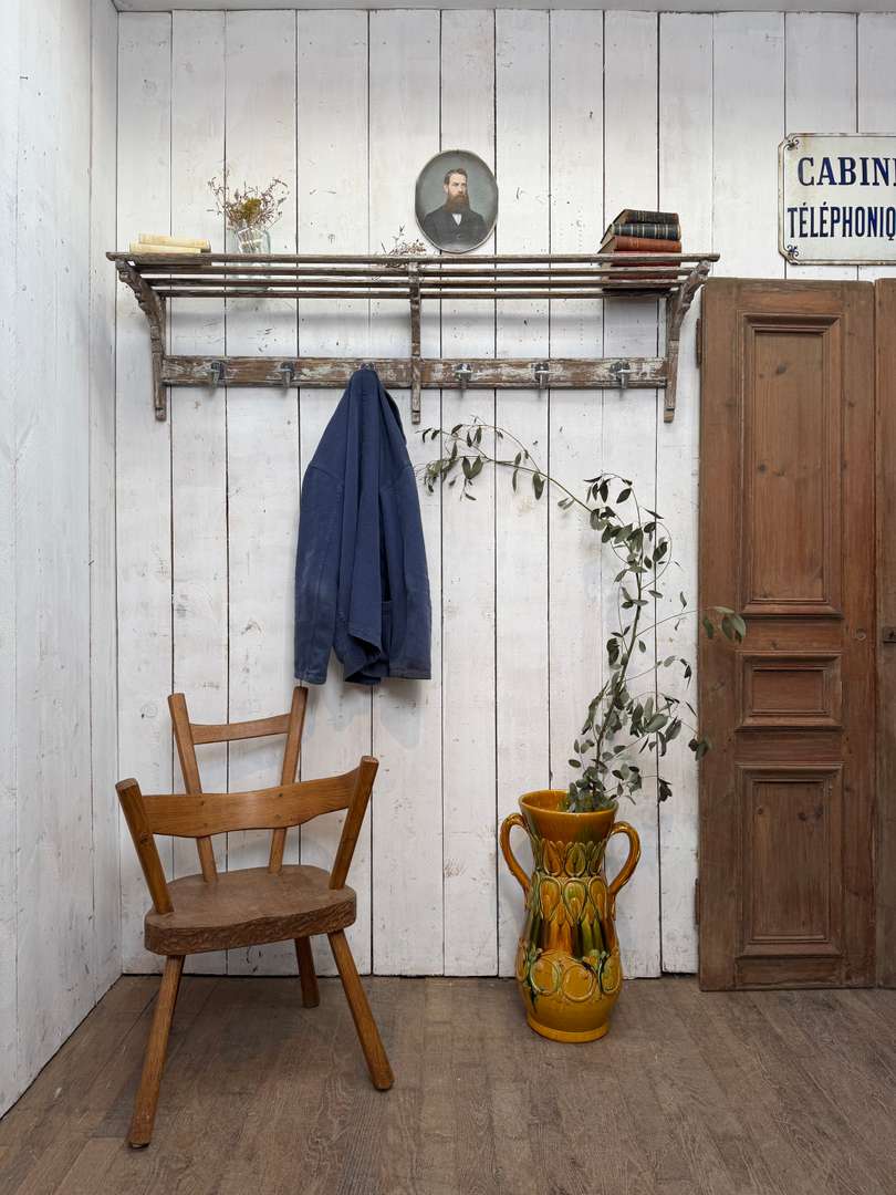Ancien porte-manteau mural – XXe siècleCe produit est venduAncien porte-manteau mural XXe siècle Structure en bois avec étagère supérieure Patères en métal Traces d’usage et peinture ancienne Idéal dans une entrée ou une cuisine #portemanteau #mobilierancien #meubledemetier #brocante #decorationinterieureDimensionsLargeur145 cmProfondeur31.5 cmHauteur33 cmRenseignementsRéférence2612011