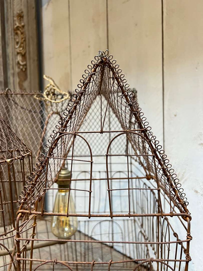 Cette ancienne cage à oiseau décorative des années 1970 est réalisée en fil de fer. Son design dégage une ambiance poétique, ajoutant une touche vintage à tout intérieur. Elle est également électrifiée, offrant la possibilité d'y ajouter une source lumineuse pour créer une atmosphère chaleureuse. Parfait pour les amateurs de décoration rétro et les adeptes d'objets uniques.