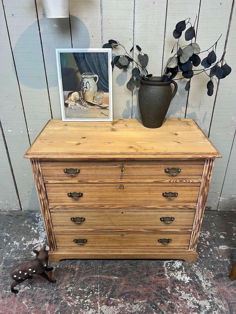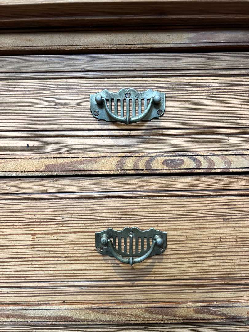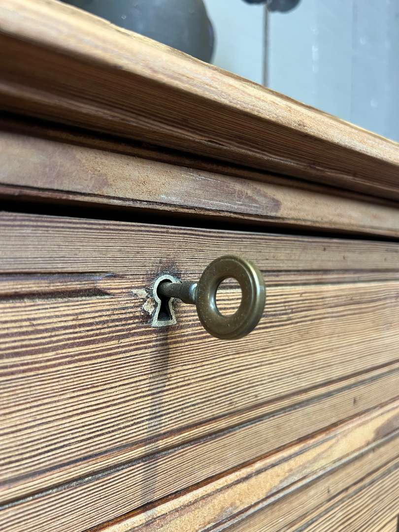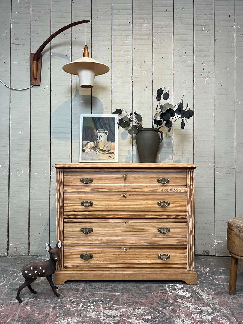 Ancienne commode en sapin 400 € Ajouter au panierCharmante commode en sapin, dotée de quatre tiroirs montés à queues d’aronde. Poignées en laiton et clé d’origine. Un meuble sobre et chaleureux, parfait dans une chambre ou une entrée. #commodeancienne #meubledesapin #meublevintage #commodebois #mobilierancien #brocantefrancaise #deconvintage #poigneeslaitonDimensionsLargeur99 cmProfondeur51 cmHauteur83 cmRenseignementsRéférence2545006