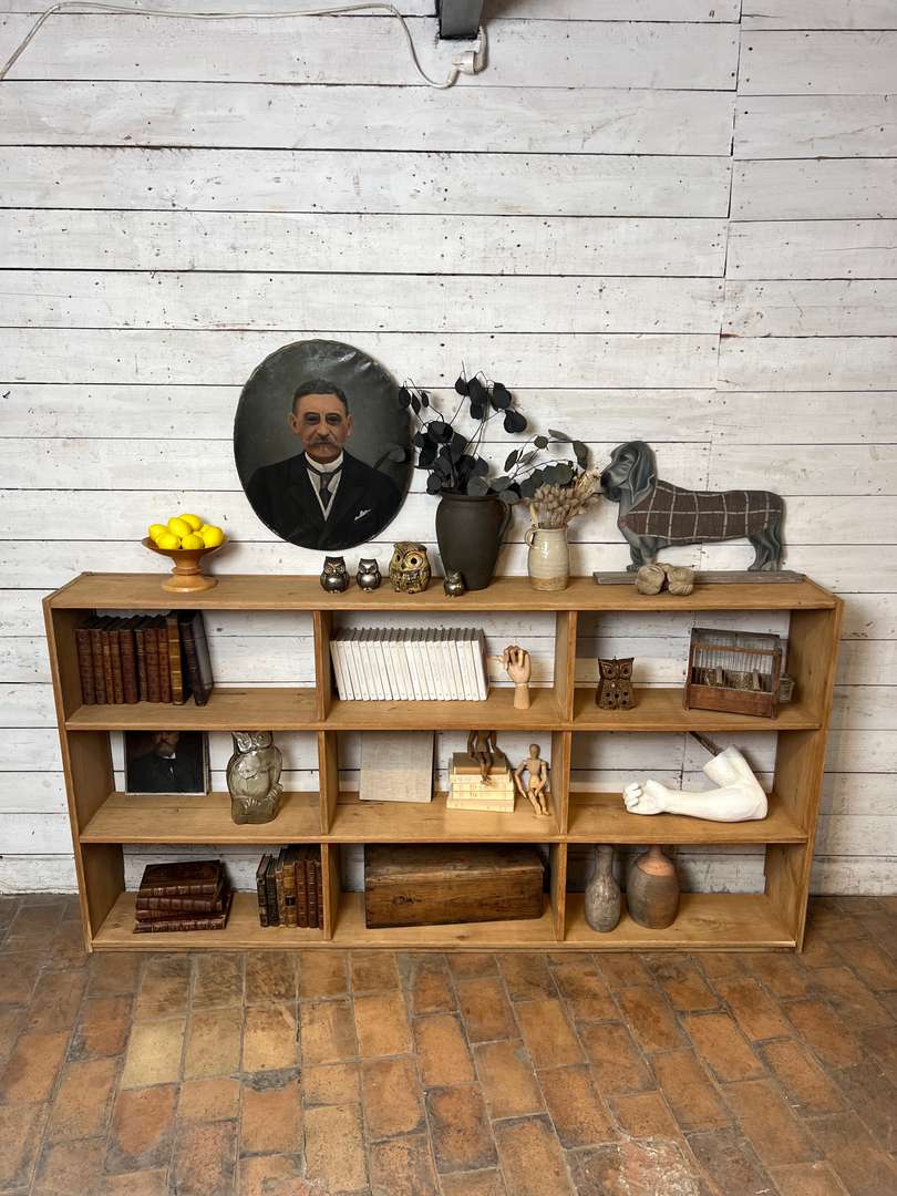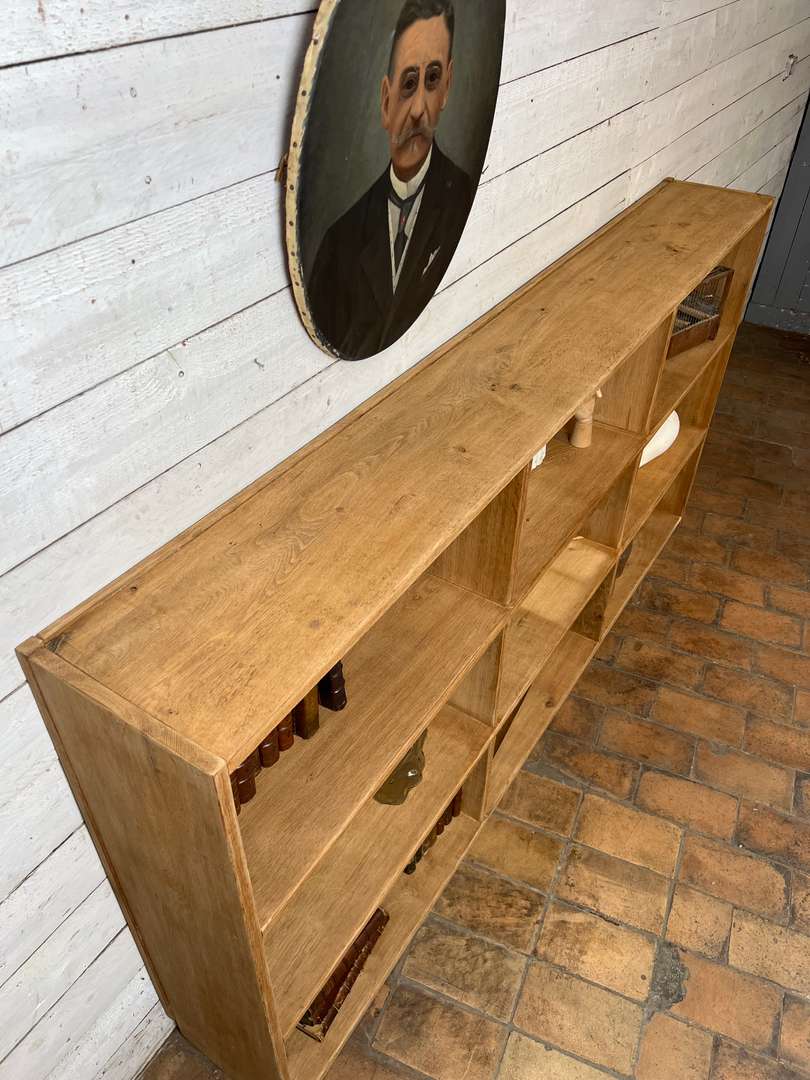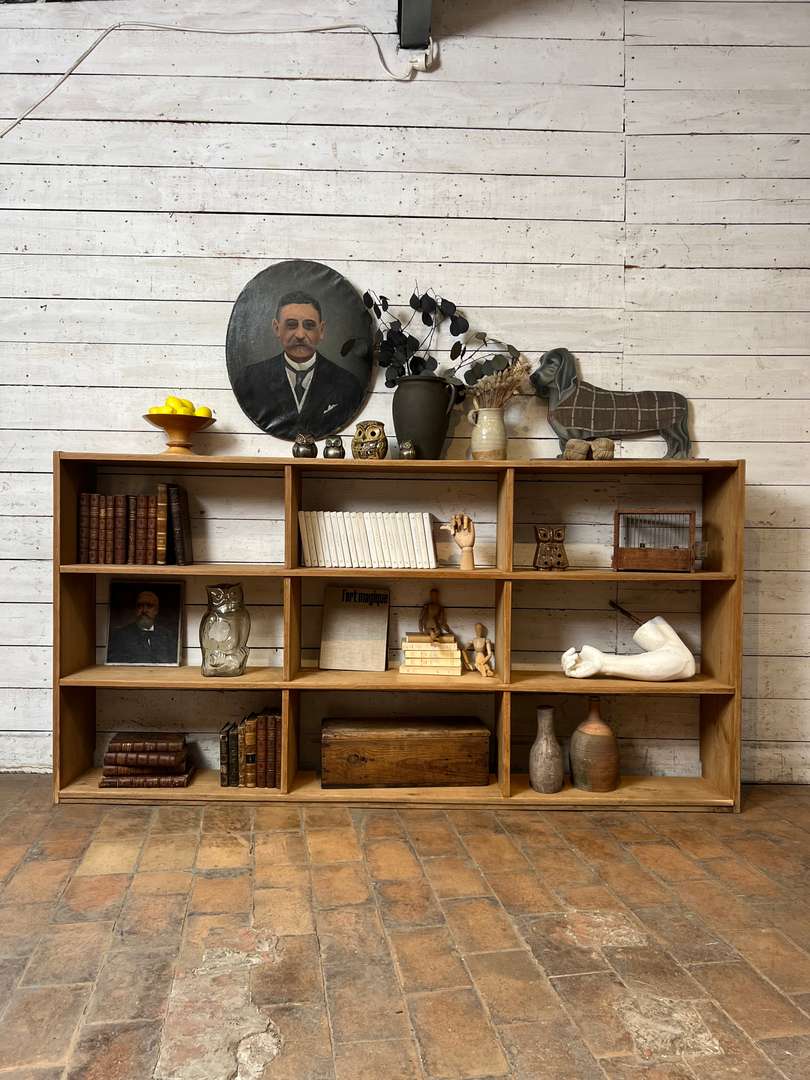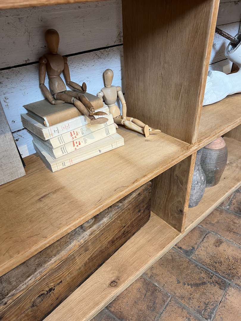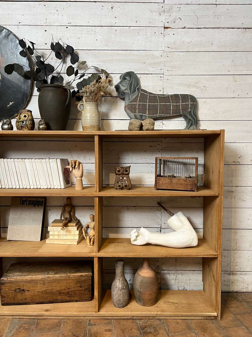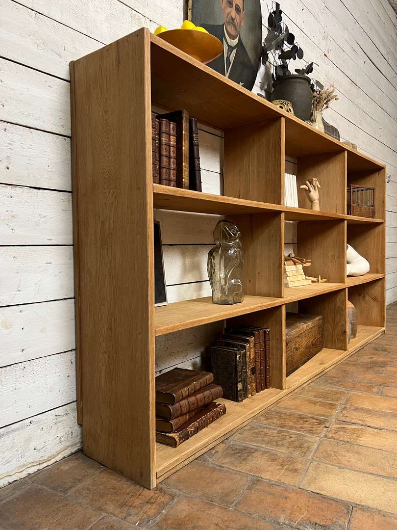 Étagère en chêne massif datant des années 50. Elle est composée de plusieurs casiers ouverts offrant de belles possibilités de rangement. Son design simple et fonctionnel lui permet de s’intégrer facilement dans toutes les pièces de la maison, que ce soit dans un salon, une chambre ou un bureau.