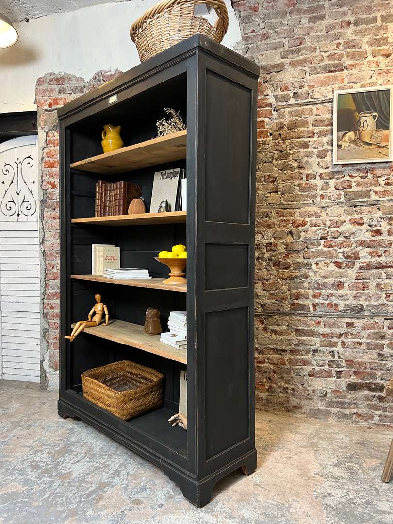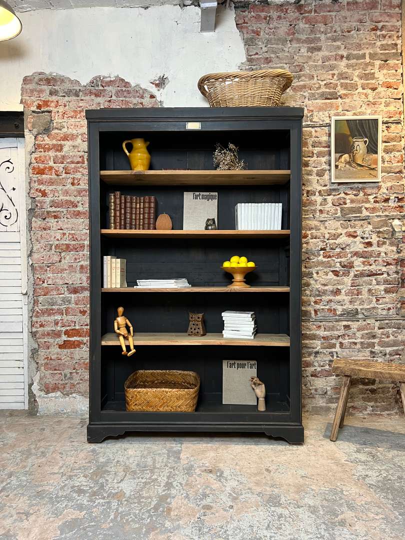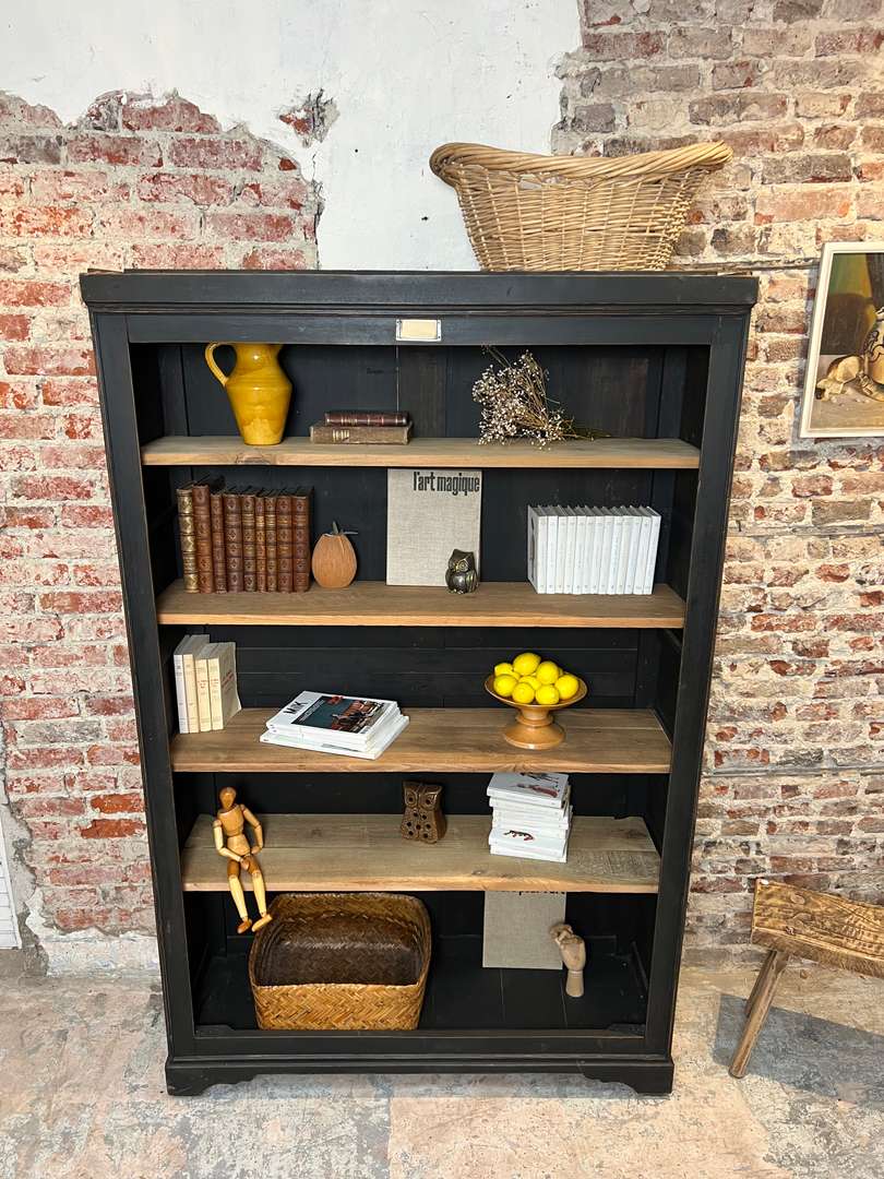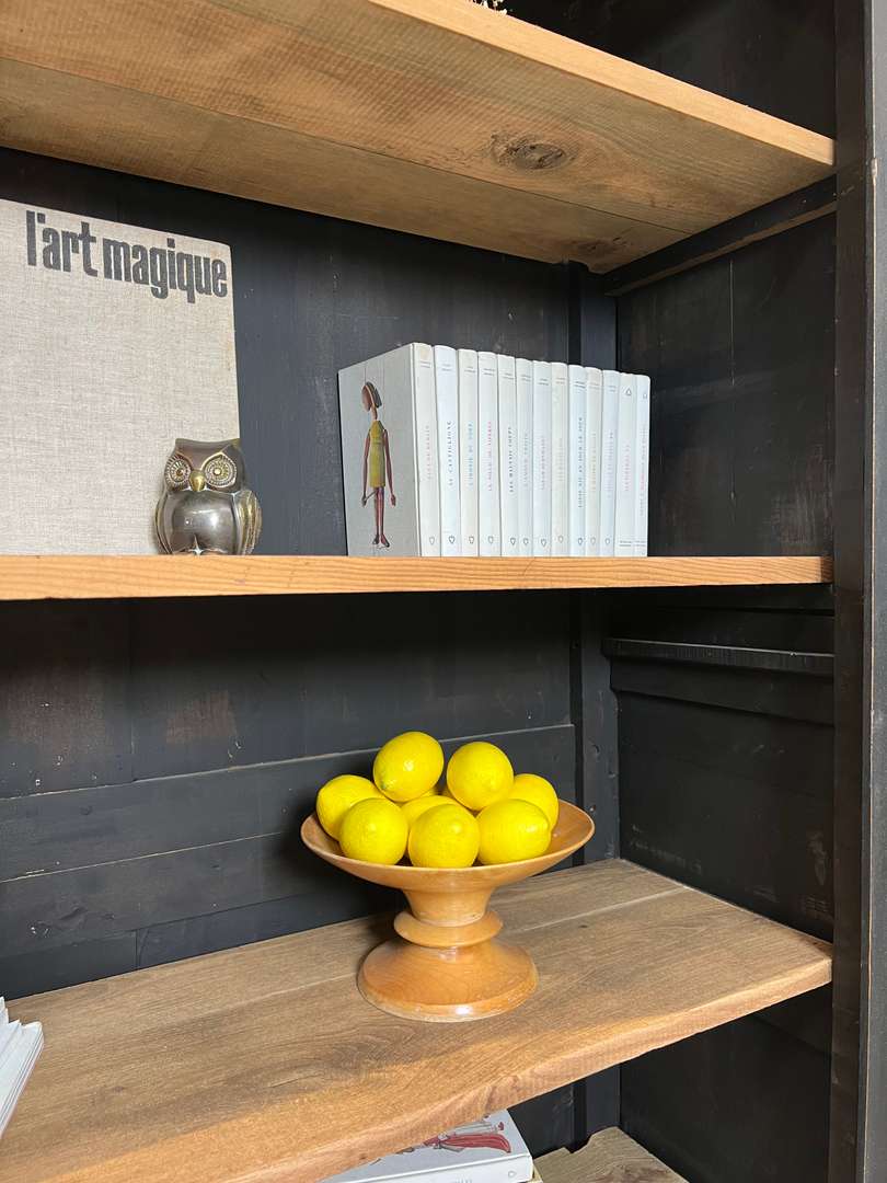 Ancienne étagère en merisier 550 € Ajouter au panierAncienne étagère en merisier, dotée de quatre planches fixes en sapin et chêne brut. Les étagères ne sont pas modulables en hauteur. Idéale pour livres ou objets décoratifs. #etagereancienne #meubledantan #merisier #chene #sapin #mobilierauthentique #brocanteDimensionsLargeur127 cmProfondeur41 cmHauteur195 cmProfondeur des étagères32 cmRenseignementsRéférence2545019