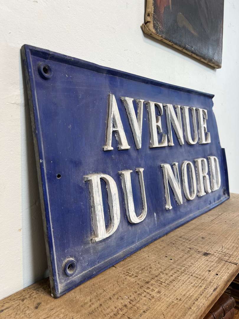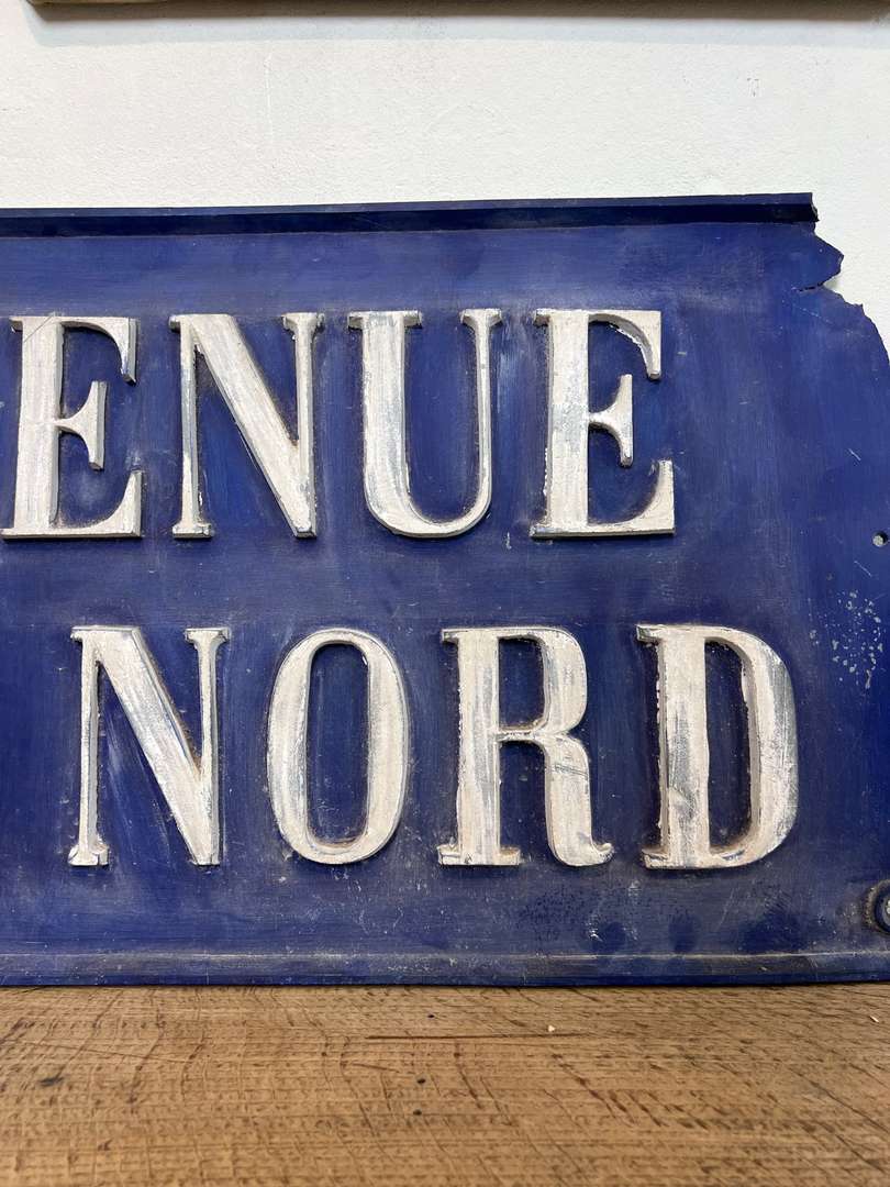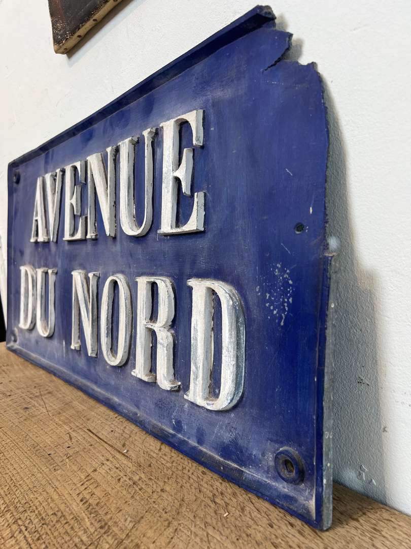 Ancienne plaque de rue en fonte 180 €Livraison france offerte Ajouter au panierAncienne plaque de rue en fonte, modèle « Avenue du Nord ». Une belle pièce de caractère avec sa patine d’usage et son bleu typique, idéale en décoration murale. #plaqueancienne #fonte #decoindustrielle #brocante #objetsdu20e #patineauthentiqueDimensionsLargeur70 cmProfondeur1 cmHauteur34 cmRenseignementsRéférence2546011