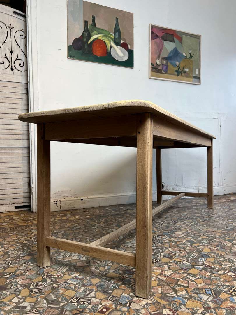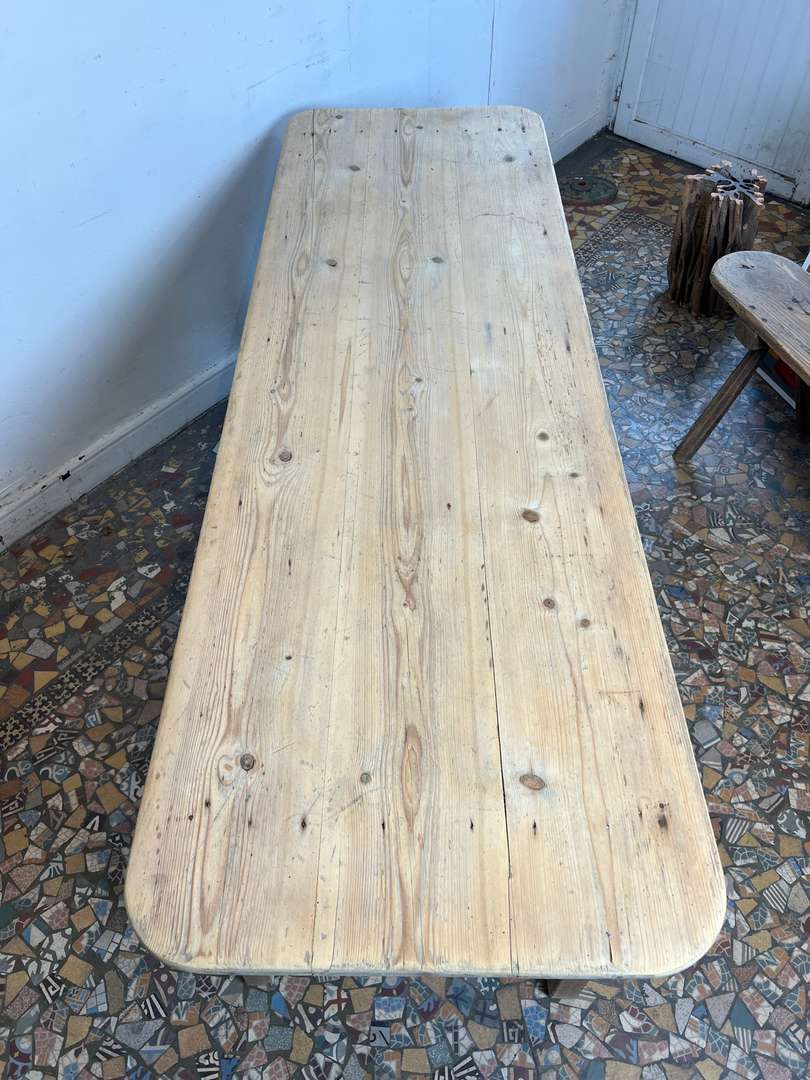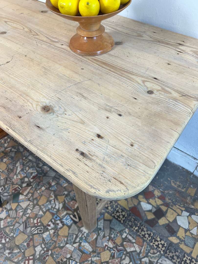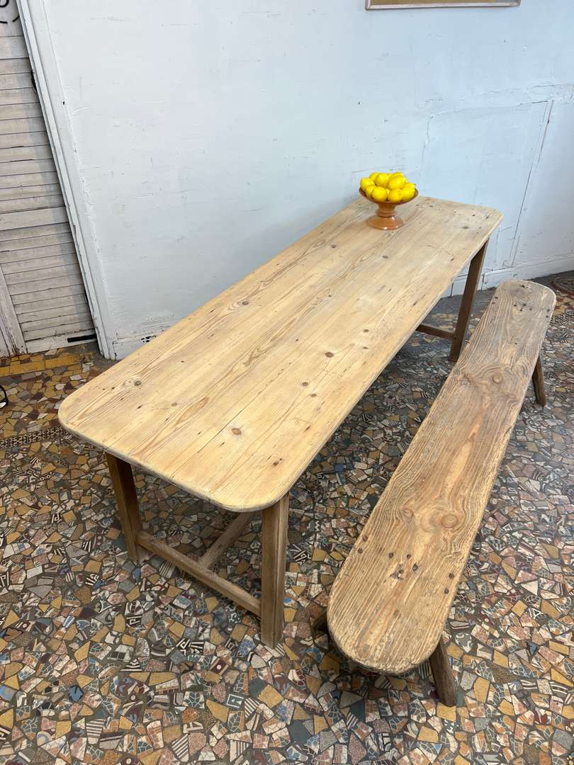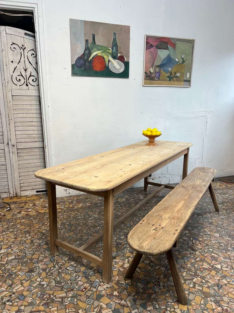 Table d’estaminet au format étroit, pratique en console, bureau ou table d’appoint. Le plateau est en sapin, avec une patine naturelle et de jolis bords arrondis, tandis que le piètement est en chêne, solide et stable. Un meuble simple et authentique, facile à intégrer dans de nombreux intérieurs.