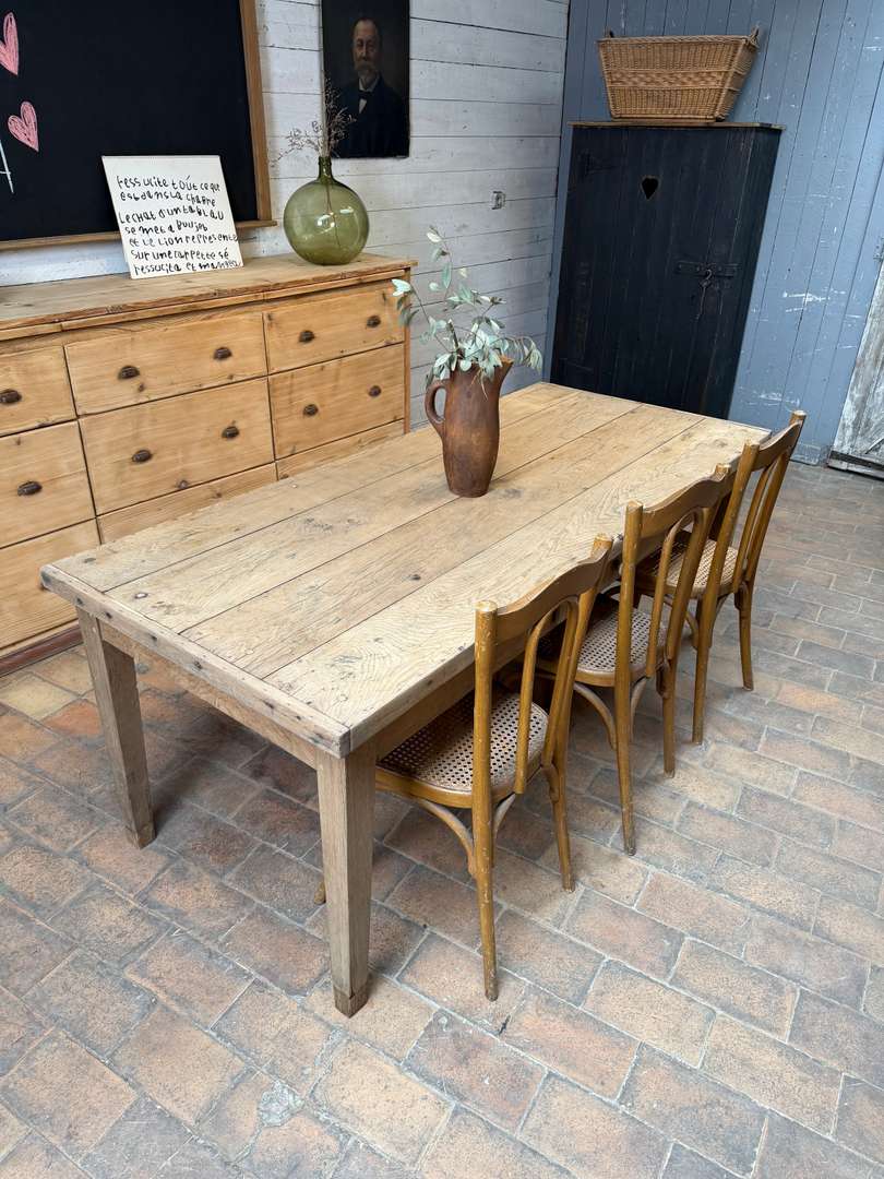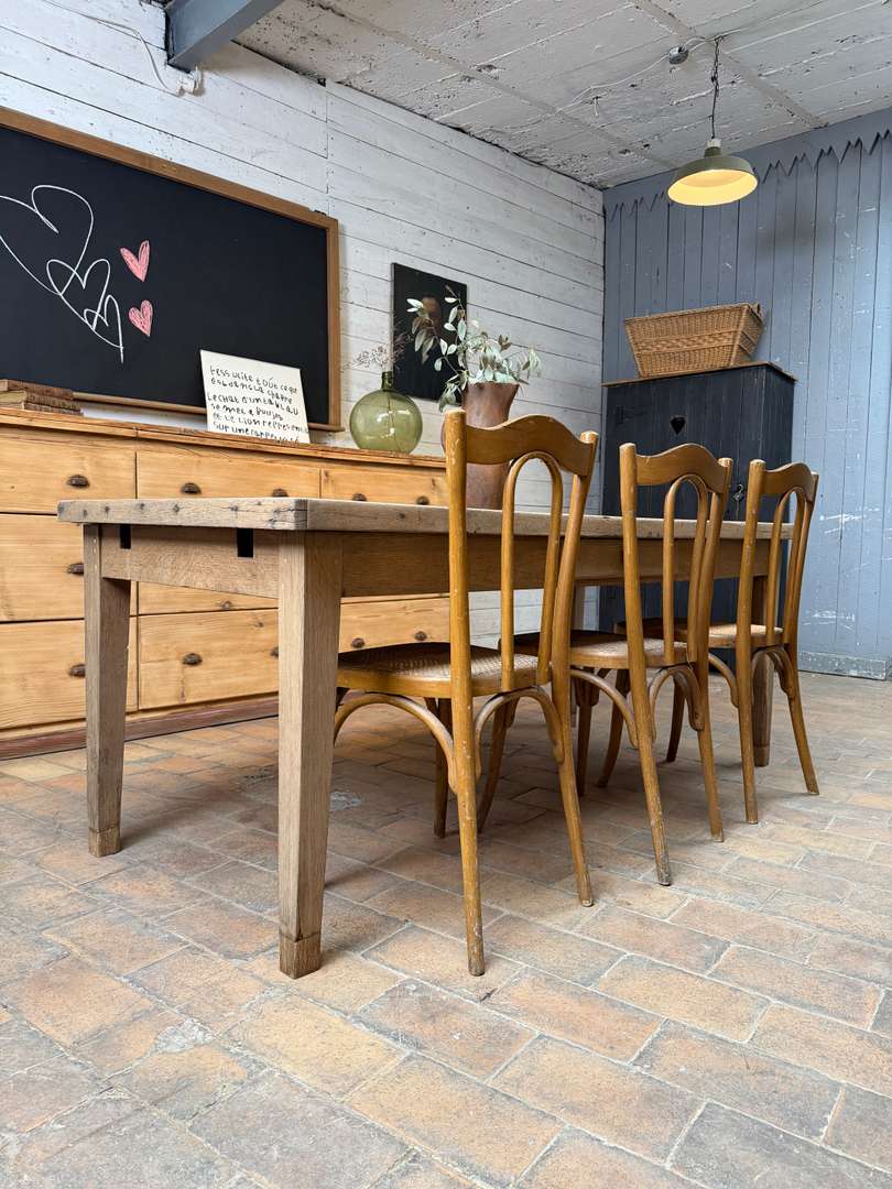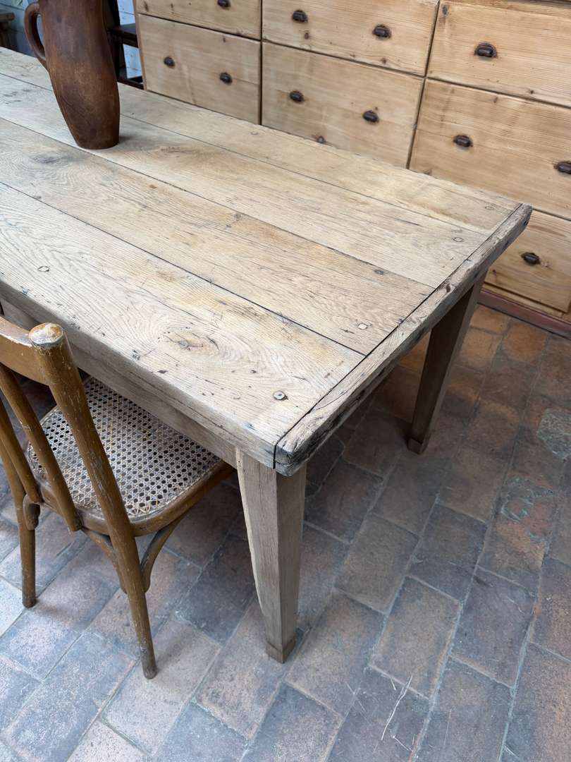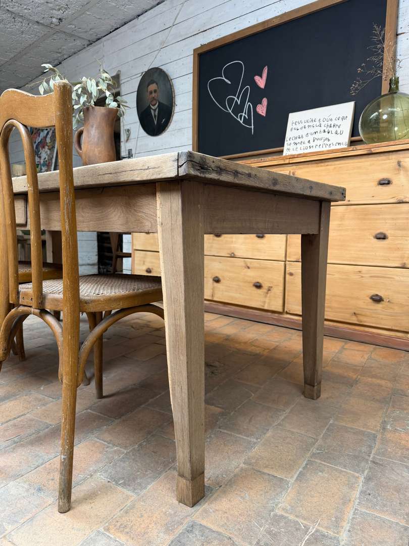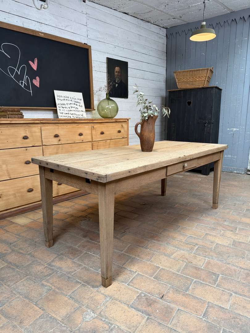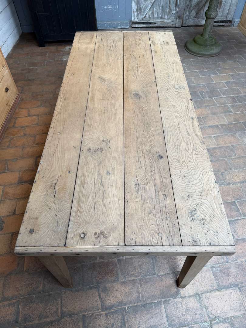Ancienne table d’office en chêne avec plateau épais en bois massif. Date 1882 gravée en façade.