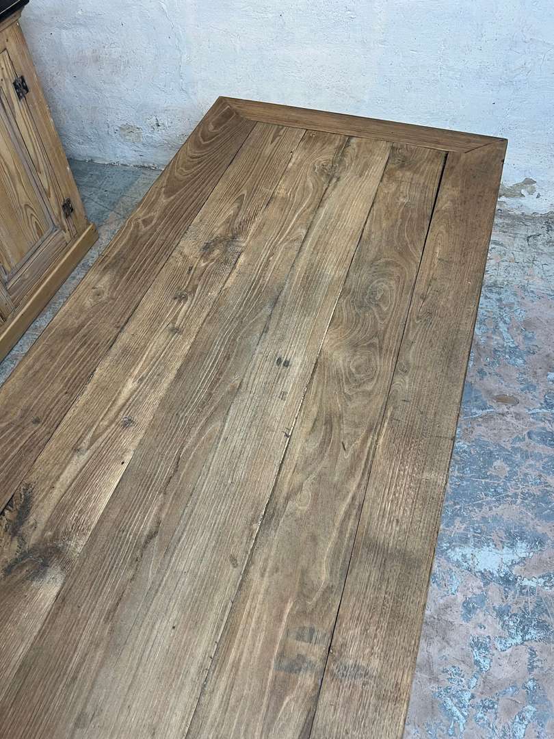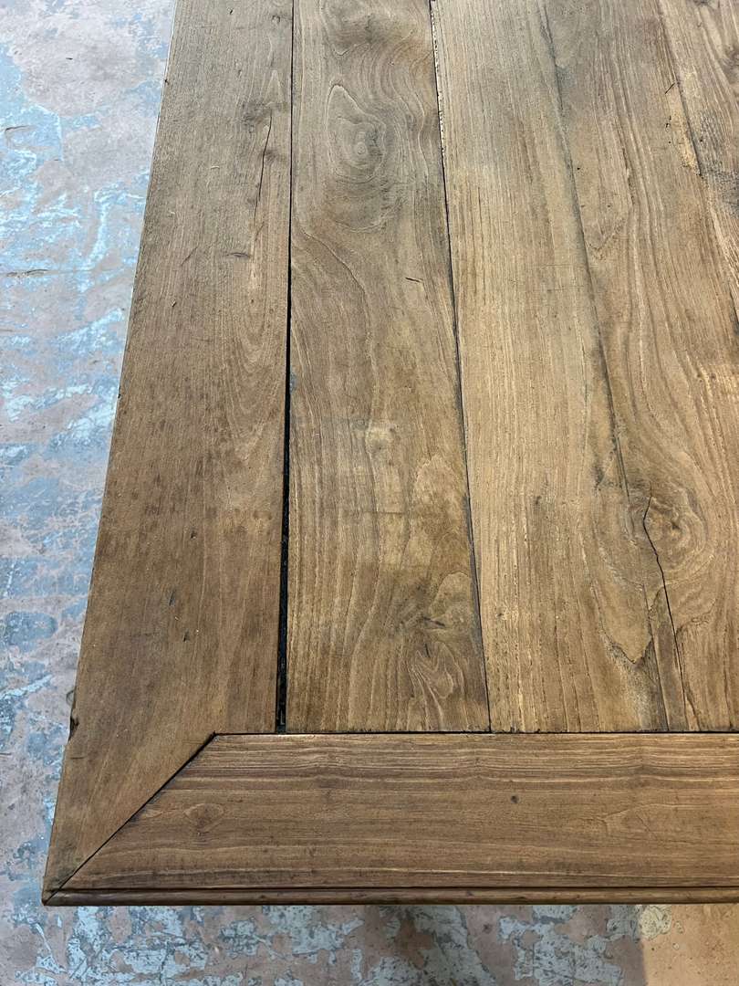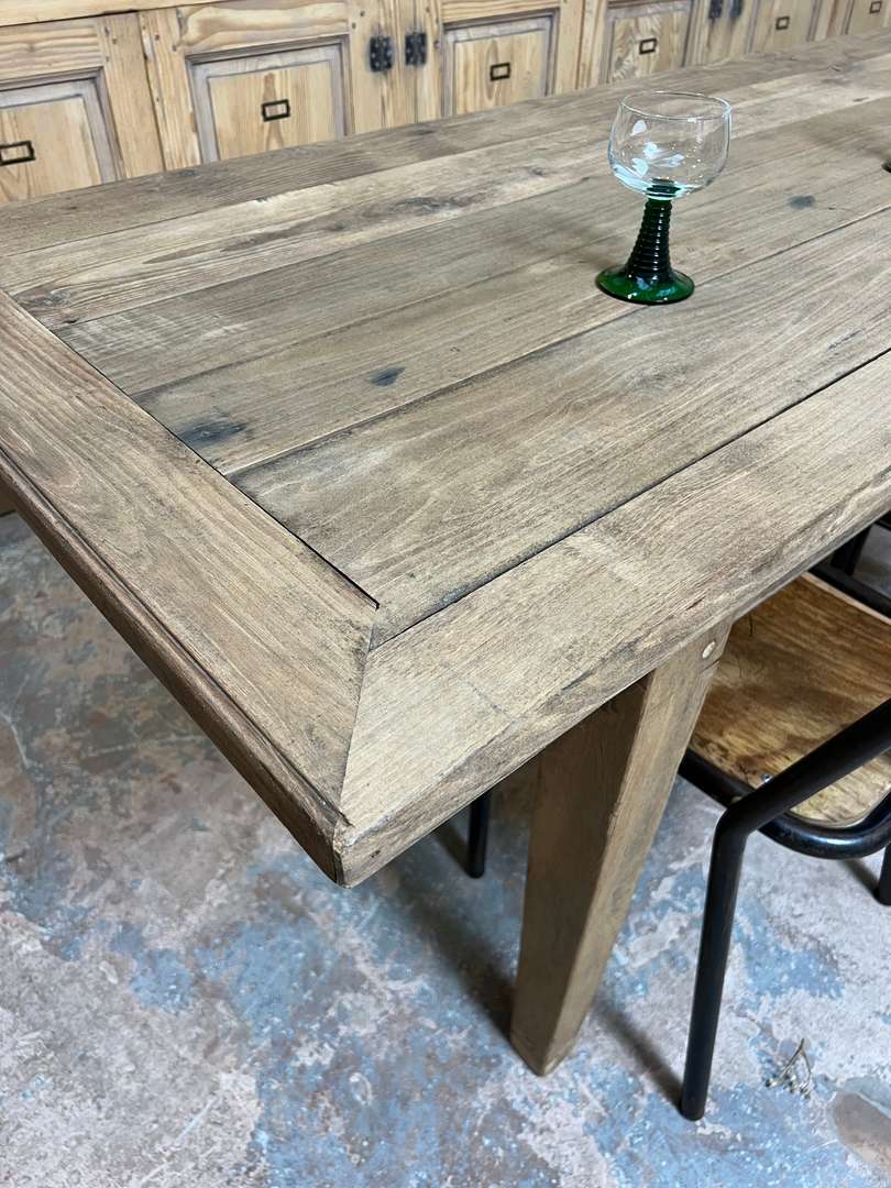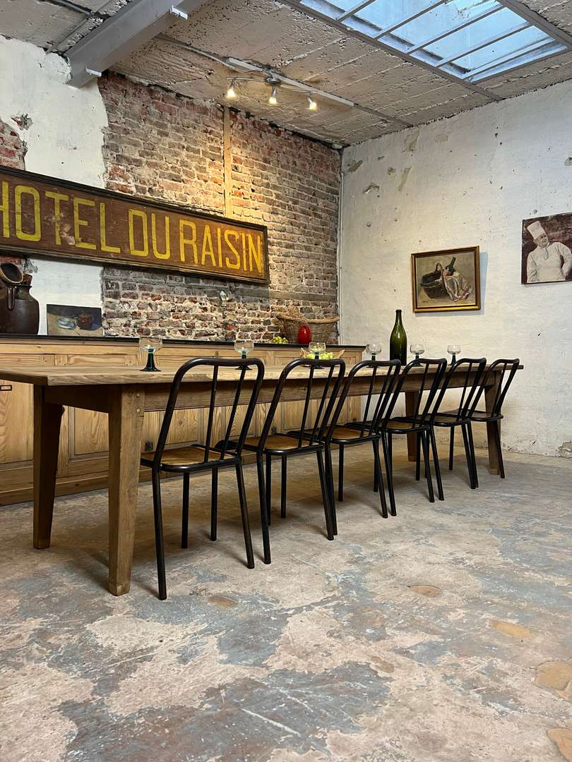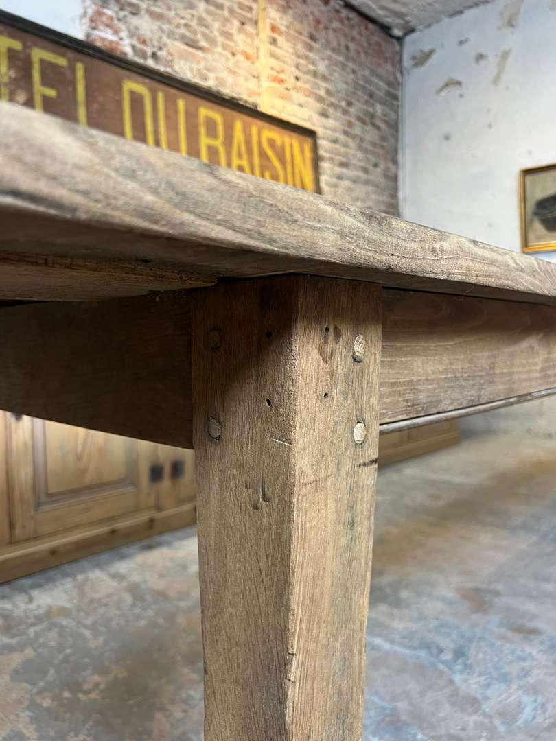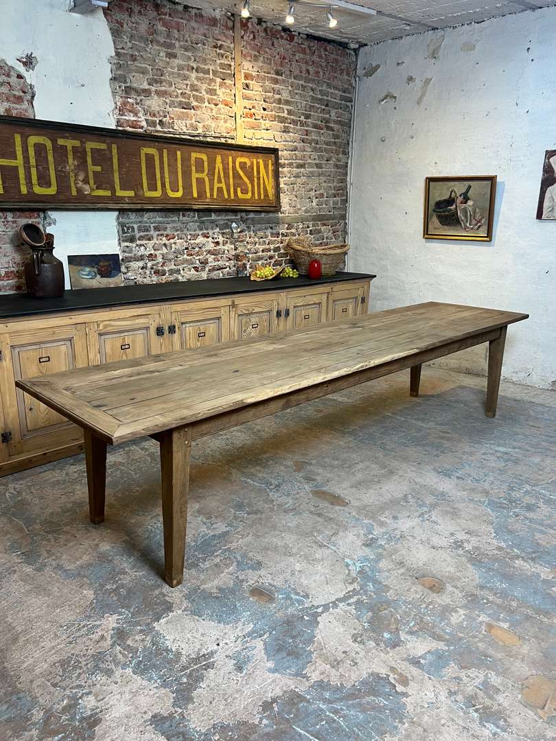 Très grande table de ferme en châtaignier datant du XIXᵉ siècle. Son long plateau en bois massif lui permet d’accueillir confortablement jusqu’à 14 personnes. Une table authentique, chaleureuse et idéale pour les grandes tablées familiales.