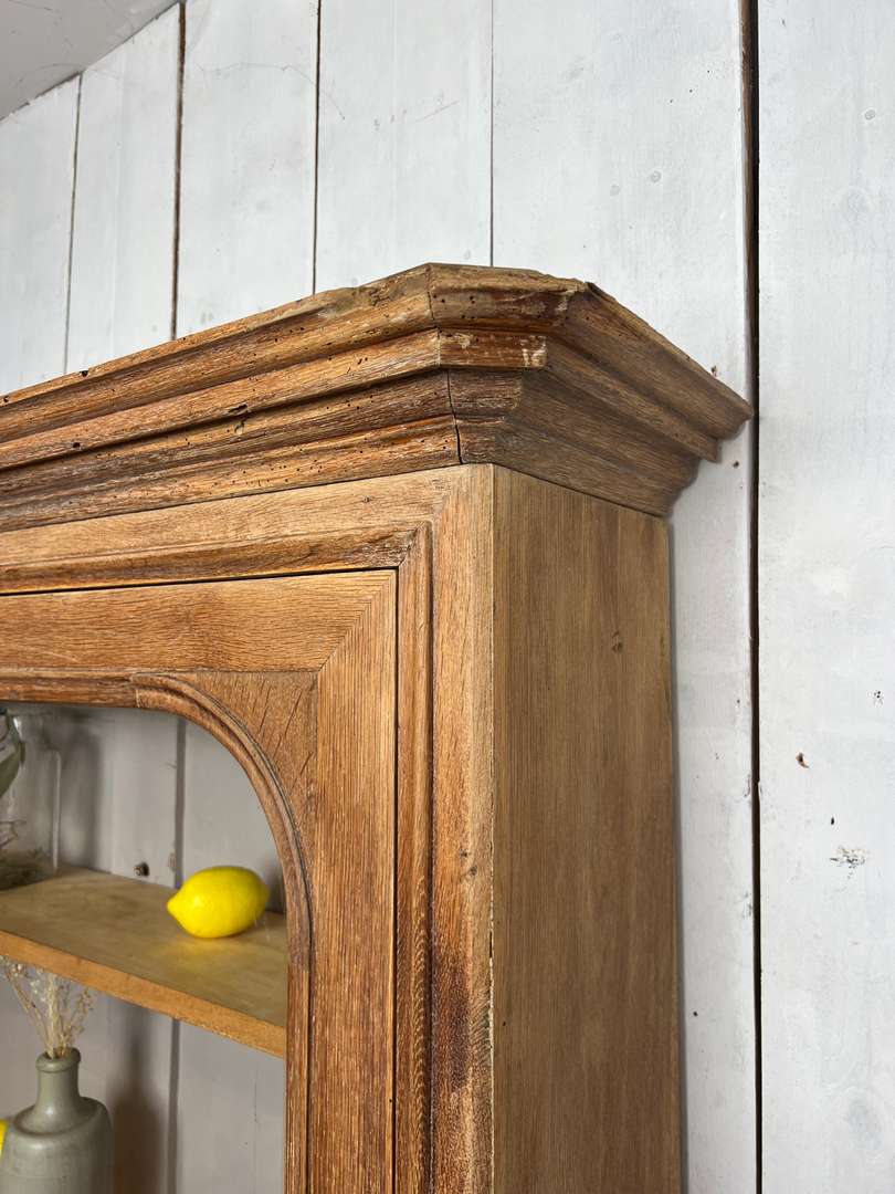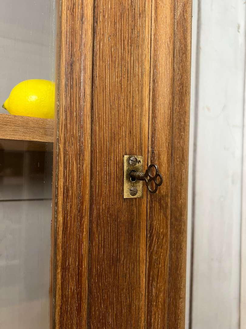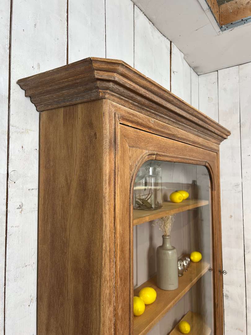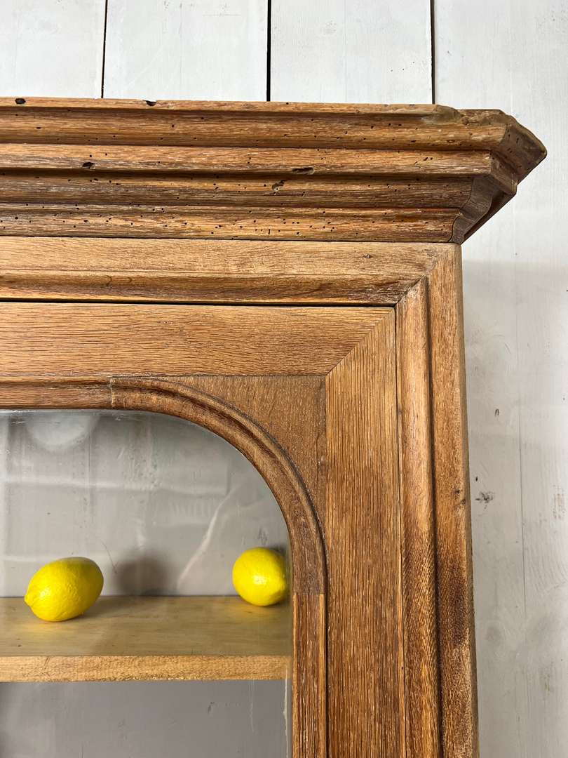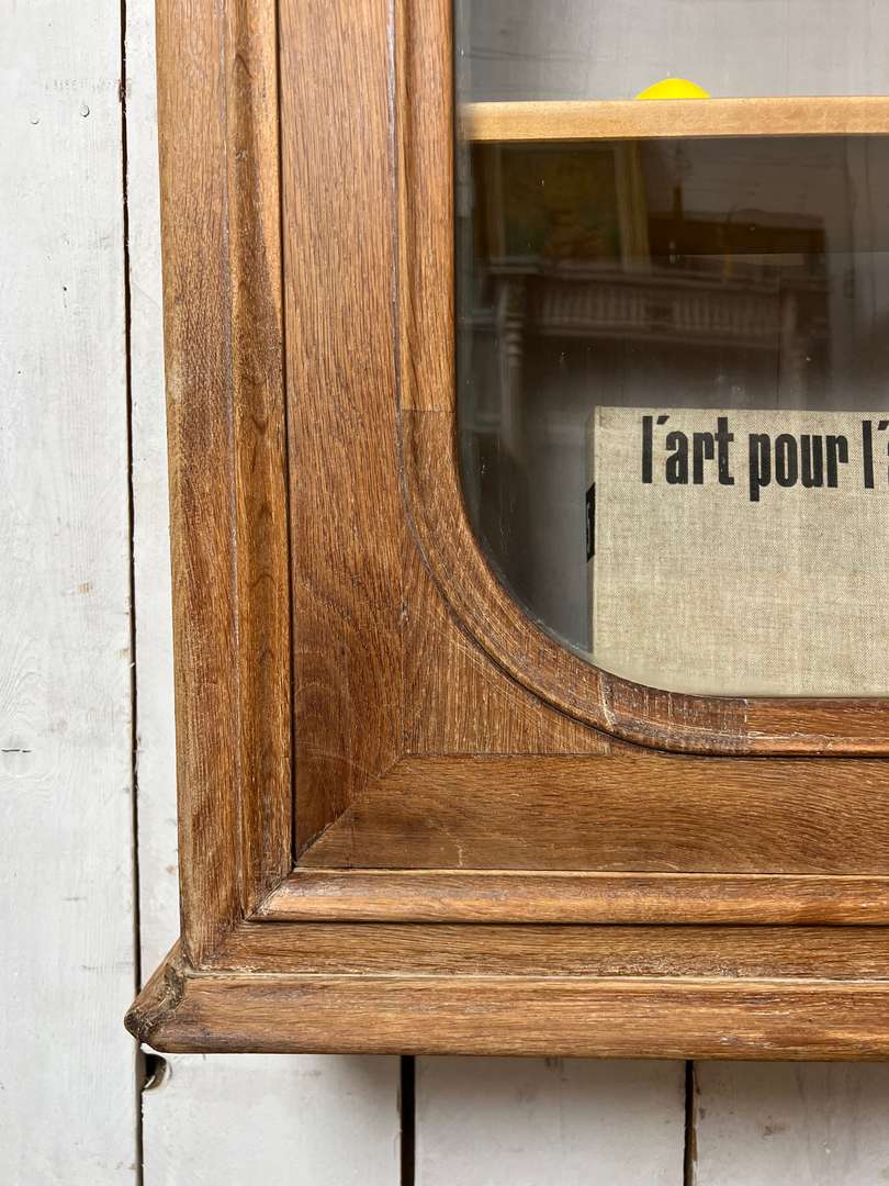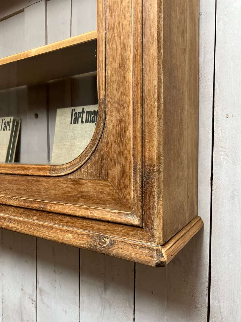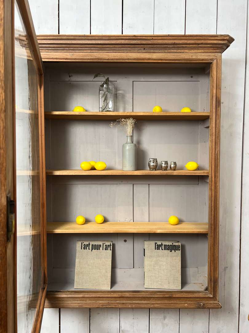 Charmante vitrine murale de la fin du XIXᵉ siècle, avec son verre bullé d’origine qui lui apporte tout son caractère. Elle est réalisée en bois massif, avec un joli travail de moulures sur l’encadrement.
