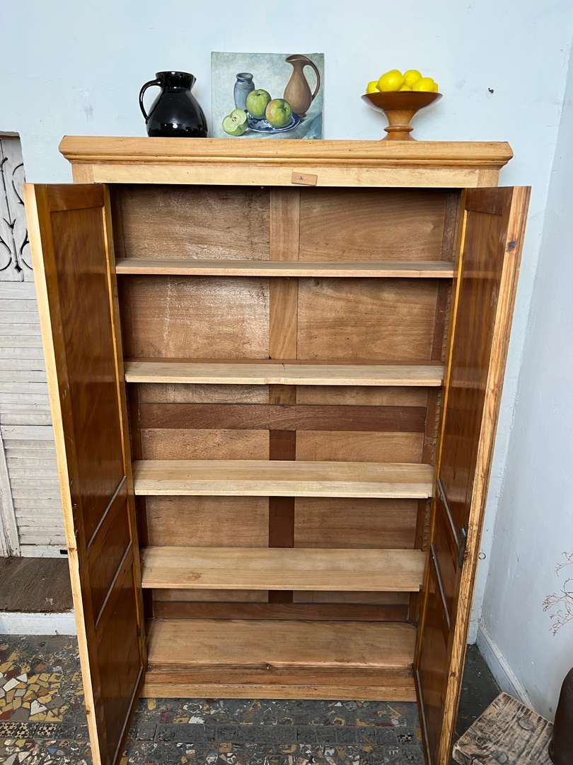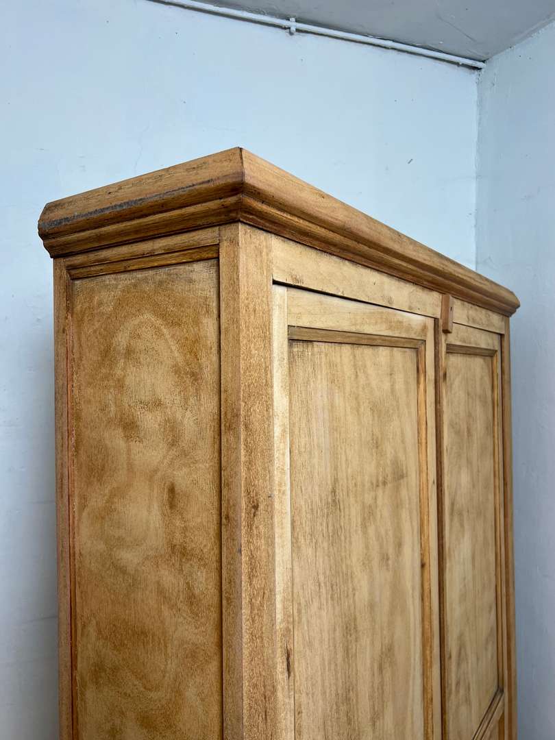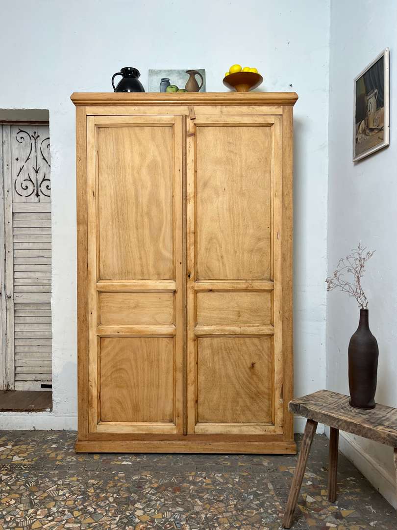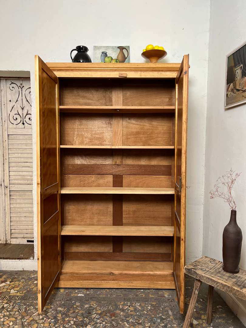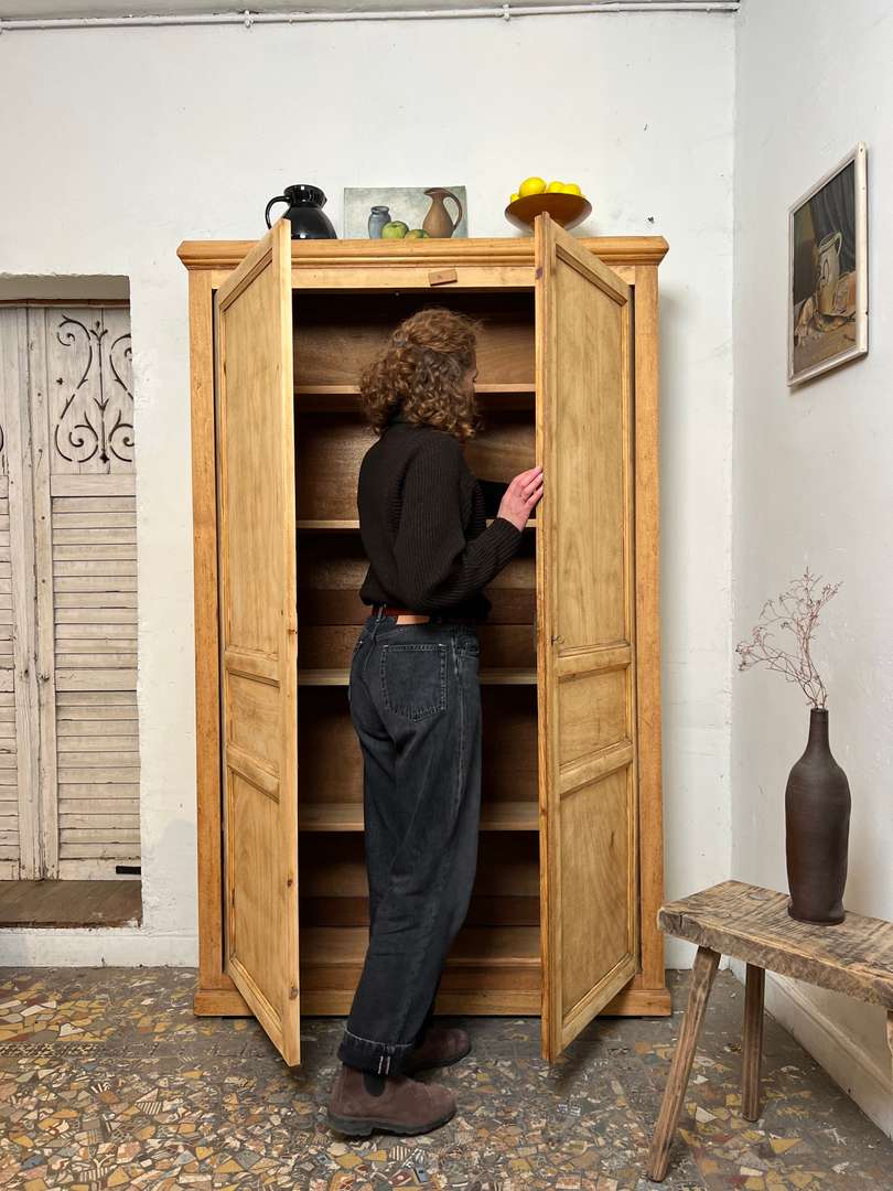 Ancienne armoire en hêtre, avec une jolie patine naturelle. Elle a la particularité d’être étroite, idéale pour les petits espaces. L’intérieur est composé d’étagères modulables en hauteur pour s’adapter à vos besoins. À noter : elle ne ferme pas à clé.