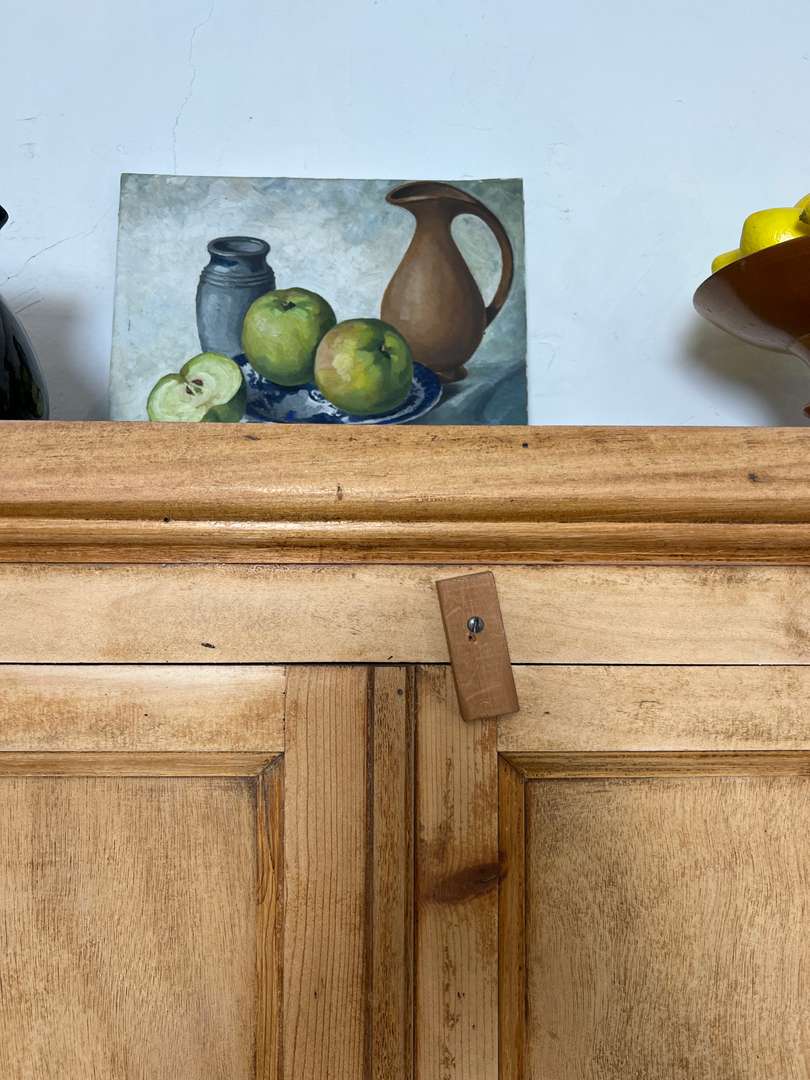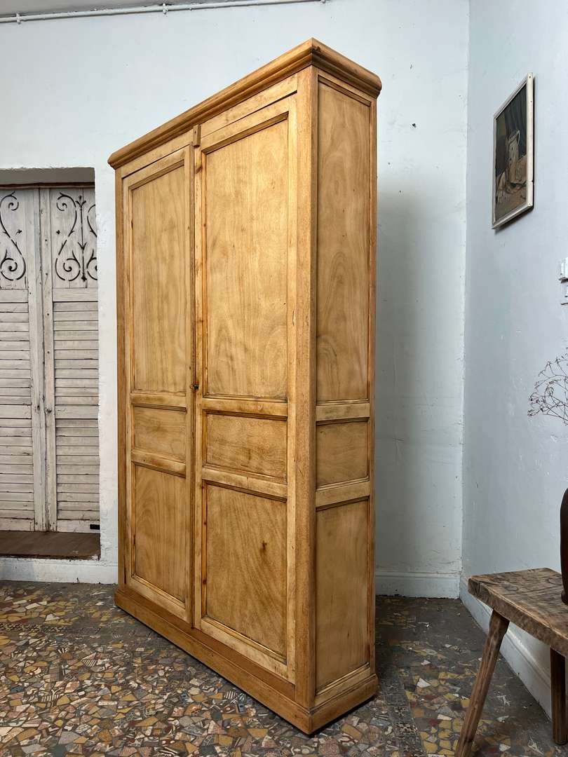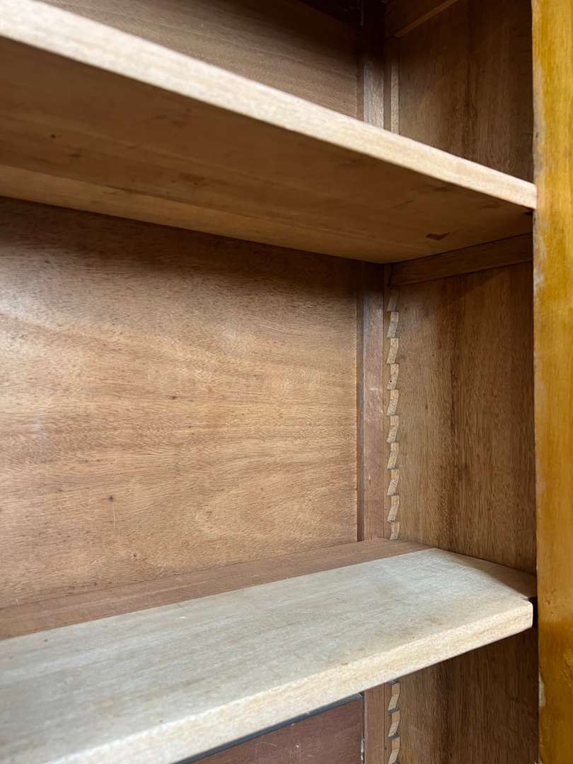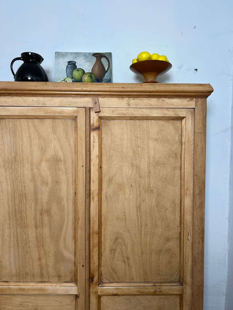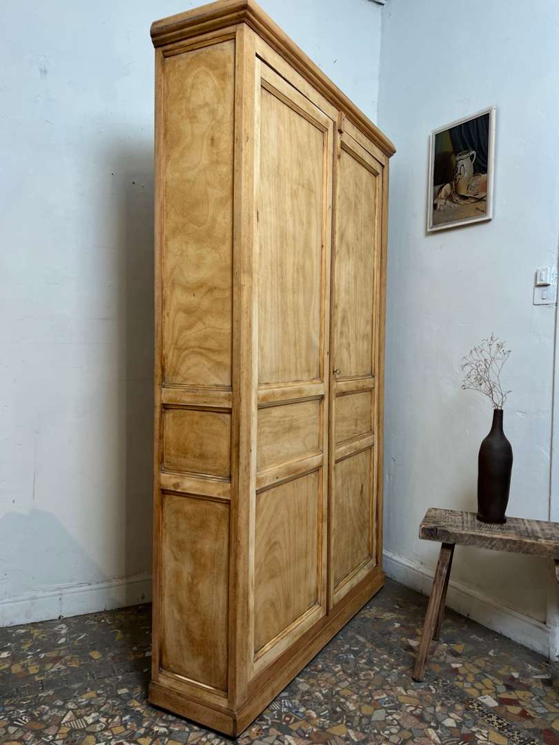 Ancienne armoire en hêtre, avec une jolie patine naturelle. Elle a la particularité d’être étroite, idéale pour les petits espaces. L’intérieur est composé d’étagères modulables en hauteur pour s’adapter à vos besoins. À noter : elle ne ferme pas à clé.