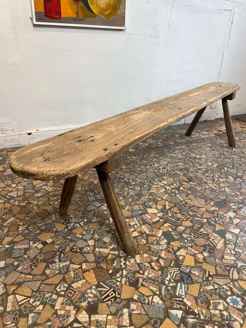 Banc rustique en sapin 250 € Ajouter au panierAncien banc en sapin, avec une assise longiligne et des pieds légèrement inclinés. Un banc rustique, plein de charme, parfait pour une entrée ou une pièce au style campagne. #bancancien #rustique #sapinDimensionsLargeur200 cmProfondeur43 cmHauteur43 cmProfondeur de l'assise25 cmRenseignementsRéférence2550009