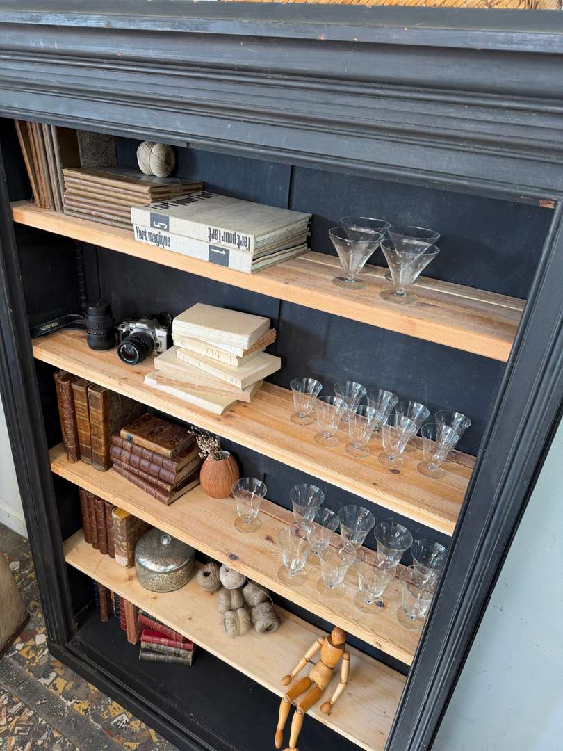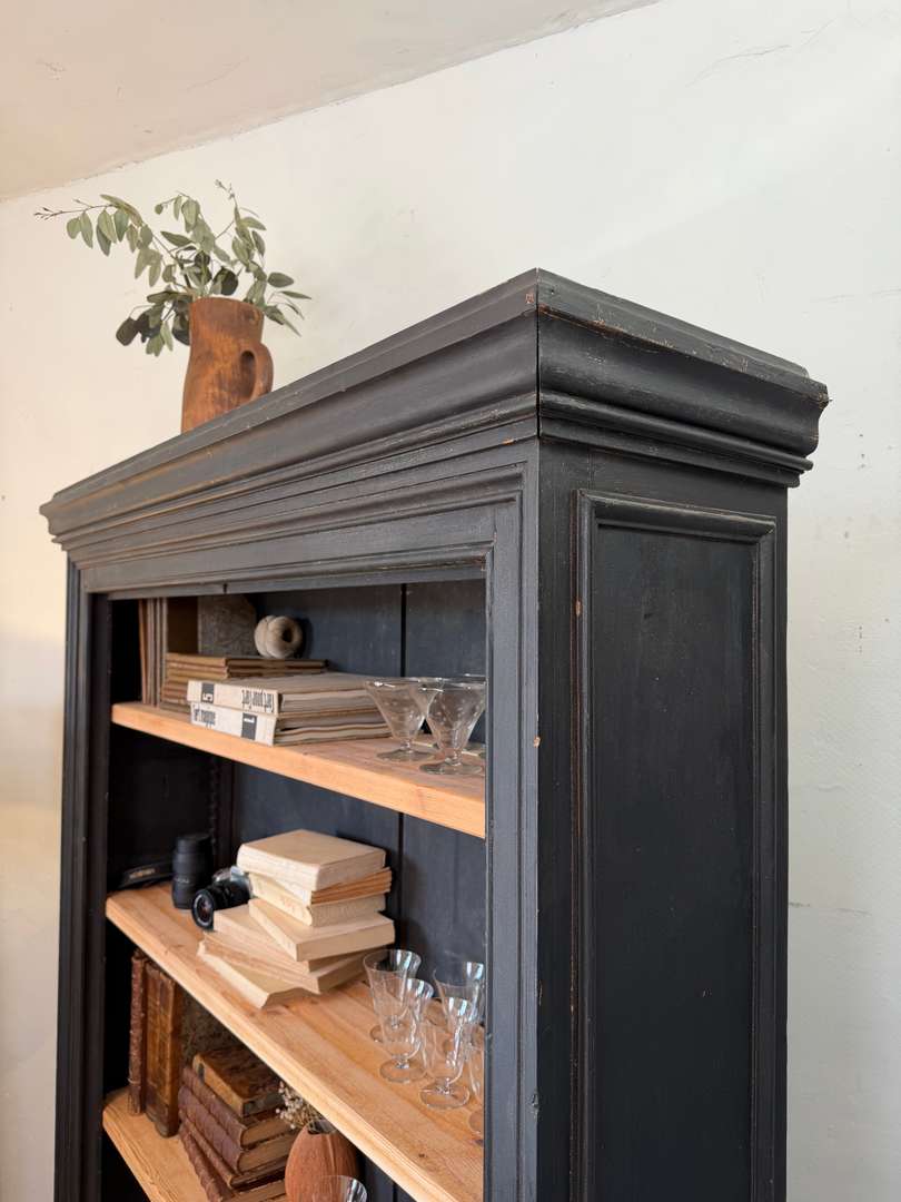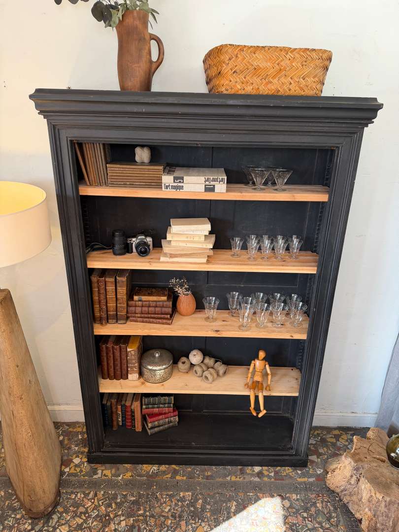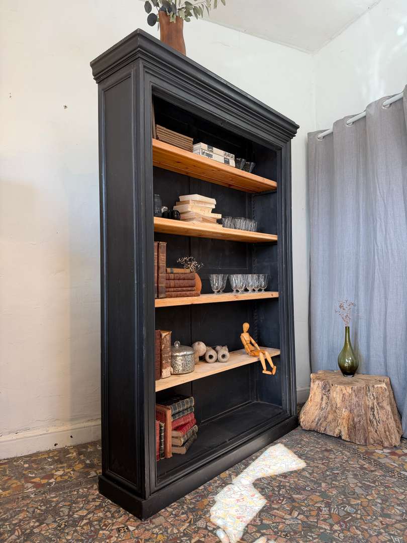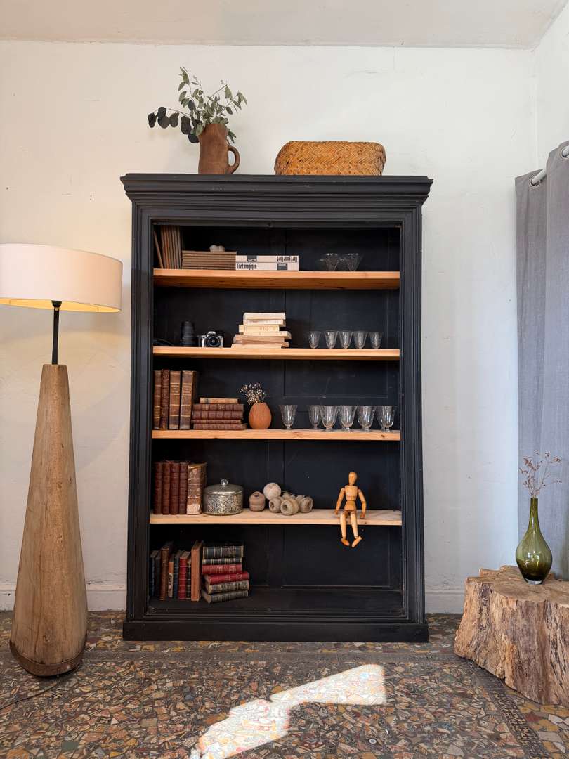 Bibliothèque en sapin – début XXème 550 € Ajouter au panierAncienne bibliothèque en sapin, début XXème siècle. Structure peinte en noir. Étagères en bois brut, réglables en hauteur. Un joli contraste entre le noir et le bois naturel. #bibliothequeancienne #mobilier20eme #etagereancienneDimensionsLargeur133 cmProfondeur35 cmHauteur197 cmProfondeur des étagères23 cmHauteur des étagères31 + 34 cmRenseignementsRéférence2609008