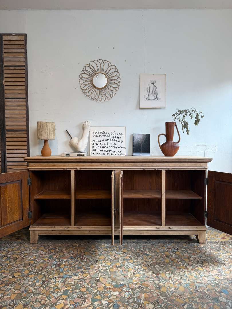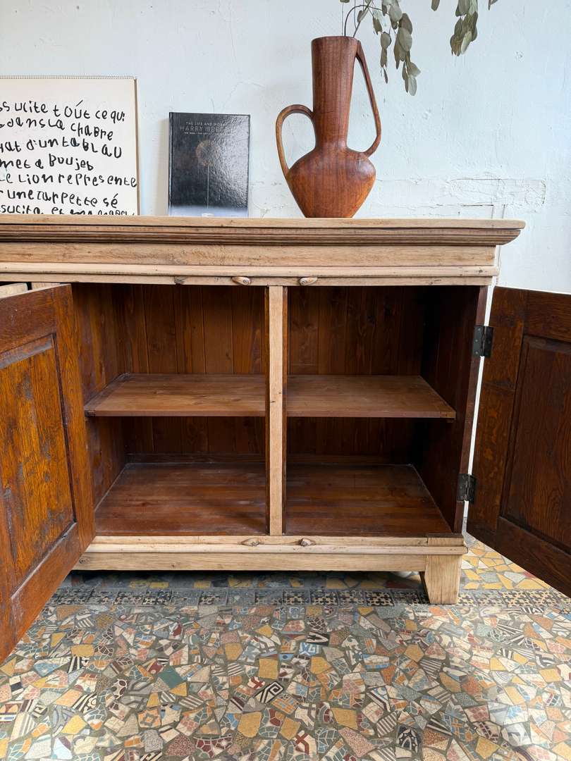 Buffet en chêne des années 80, aux lignes simples.