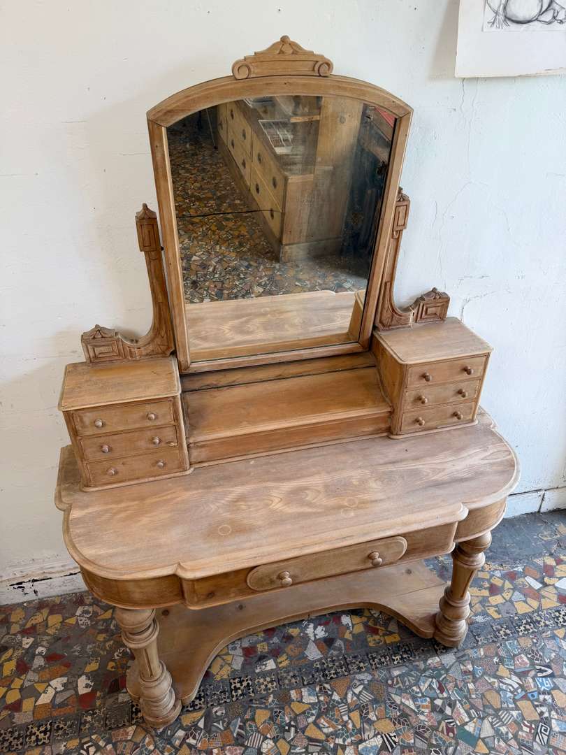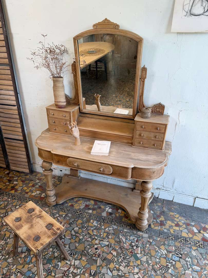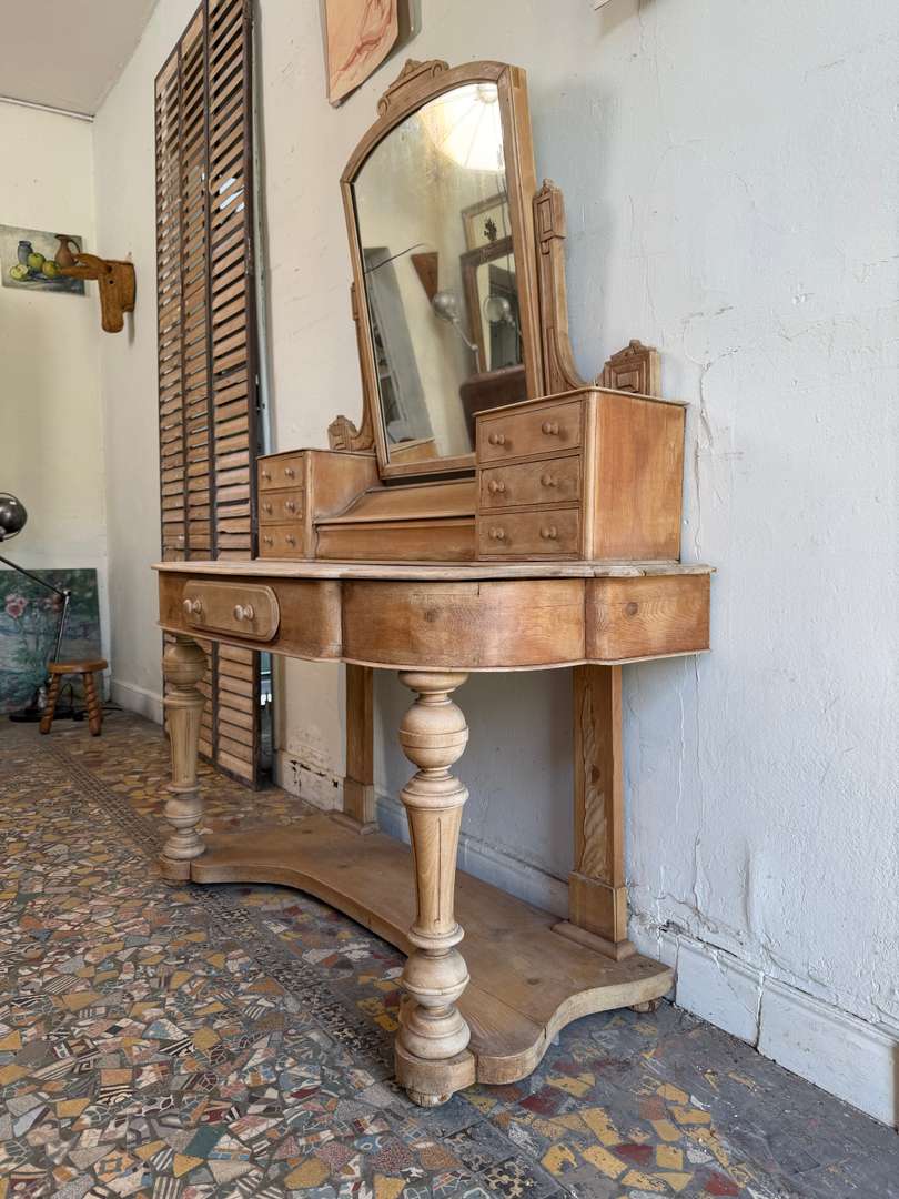 Ancienne coiffeuse anglaise en sapin du XIXe siècle.