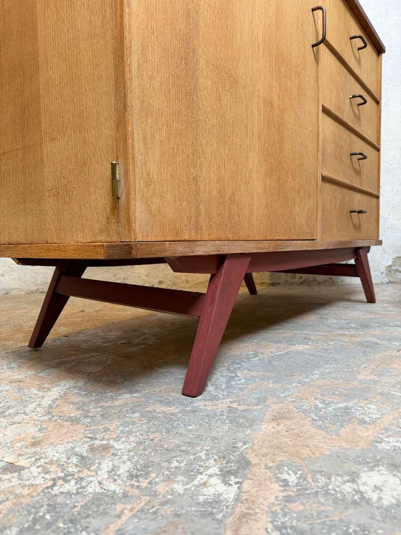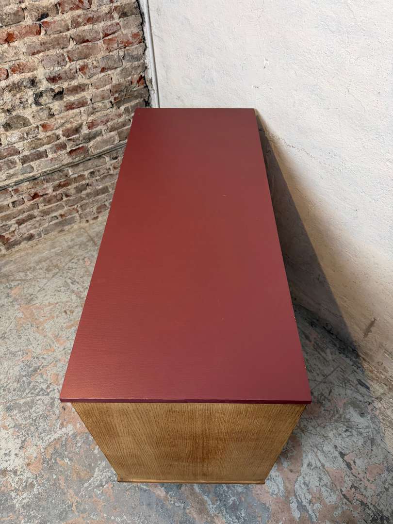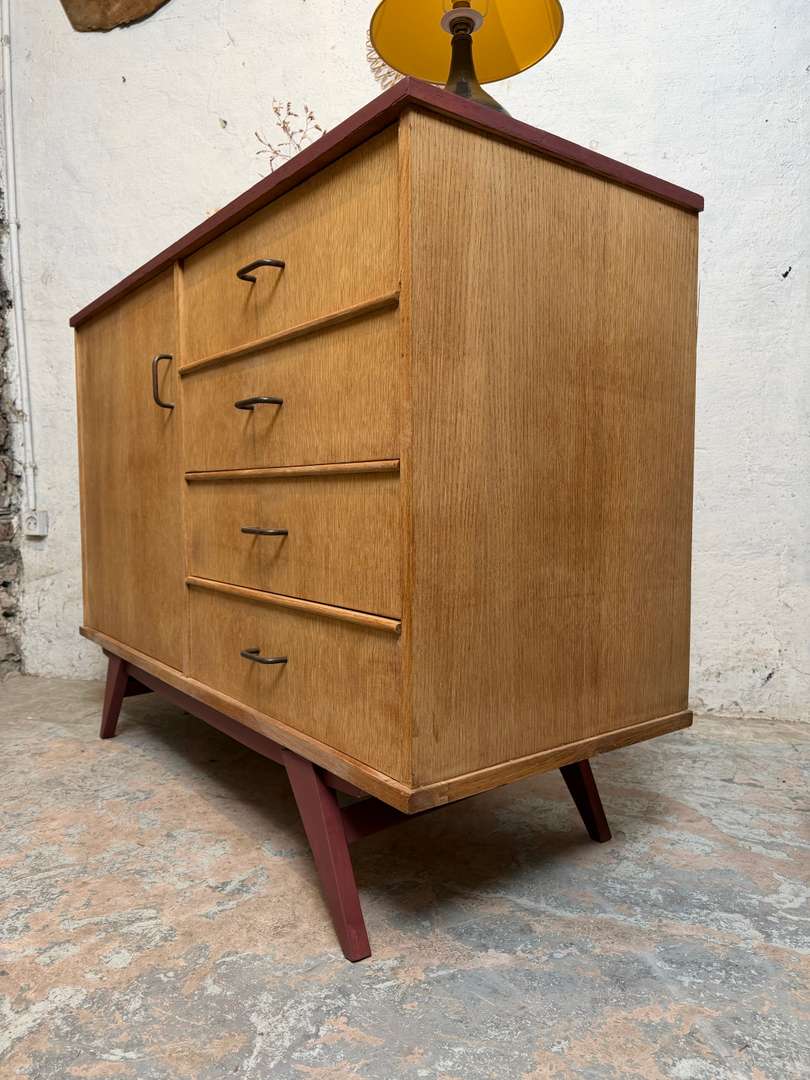 Commode vintage – années 50 420 € Ajouter au panierCommode vintage des années 50. Plateau et piètement peints en bordeaux, poignées en laiton. Meuble fonctionnel, idéal en chambre ou séjour. #commodevintage #annees50 #mobilierancienDimensionsLargeur121 cmProfondeur48 cmHauteur90 cmRenseignementsRéférence2603013