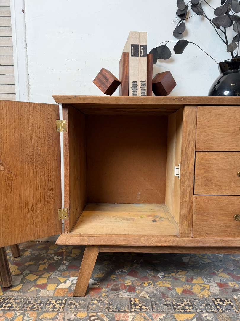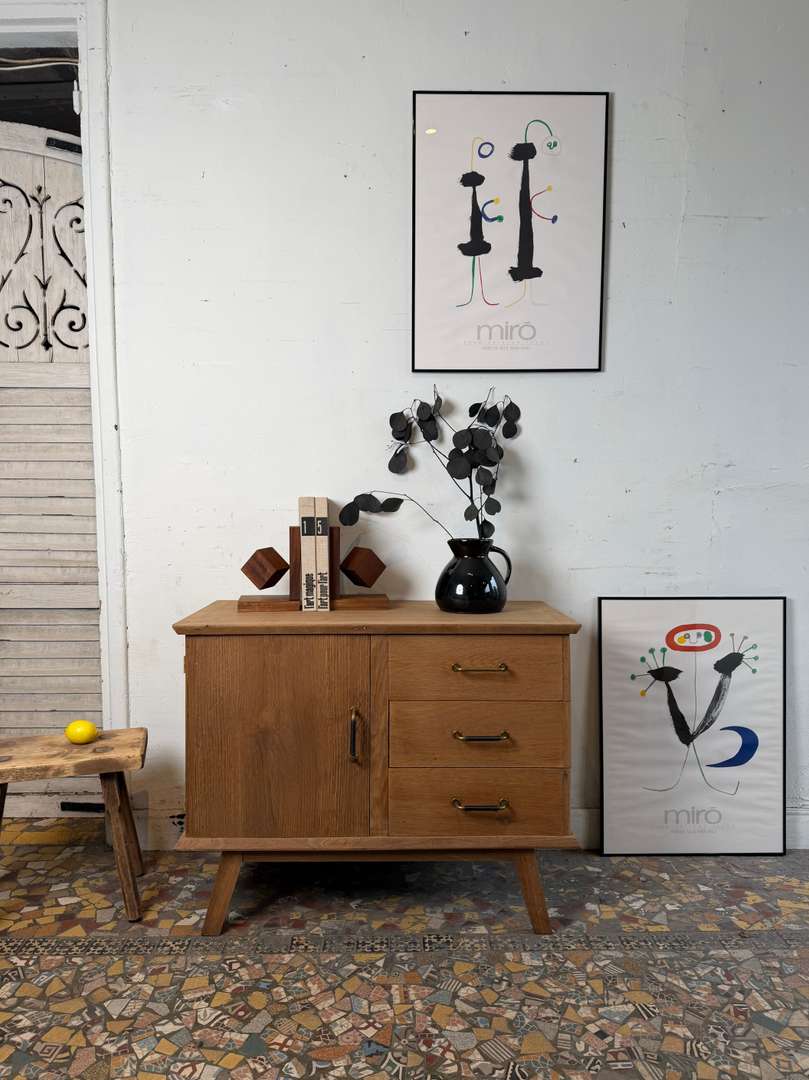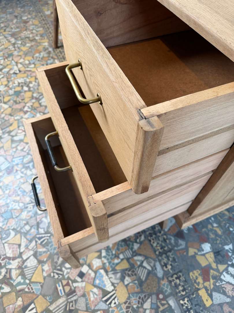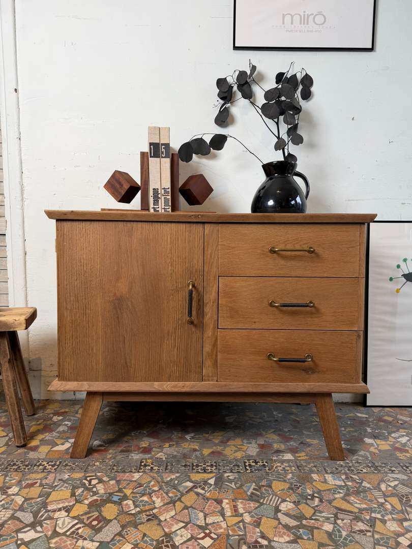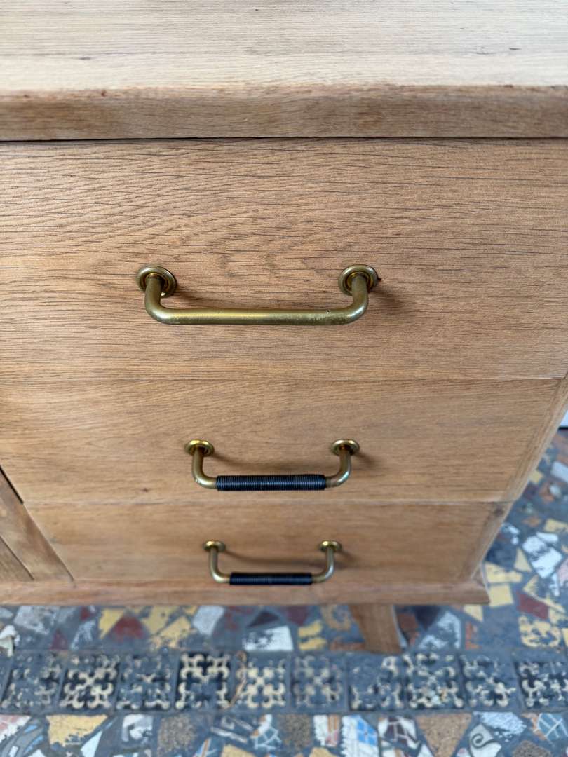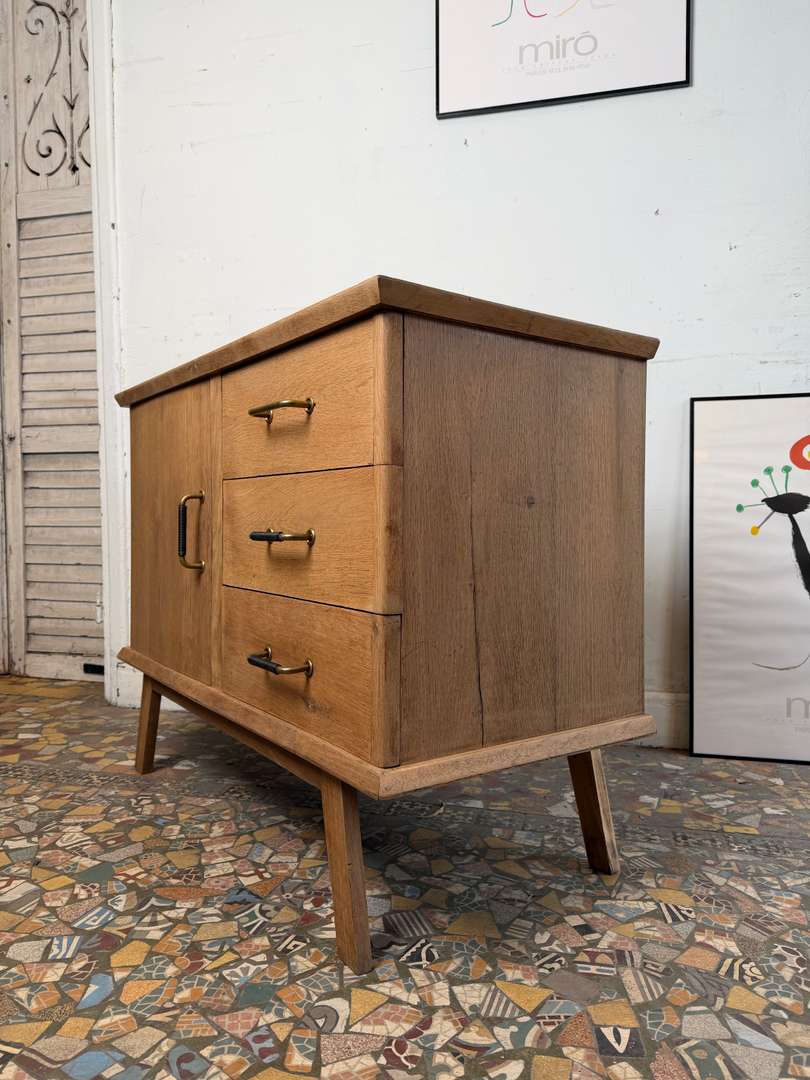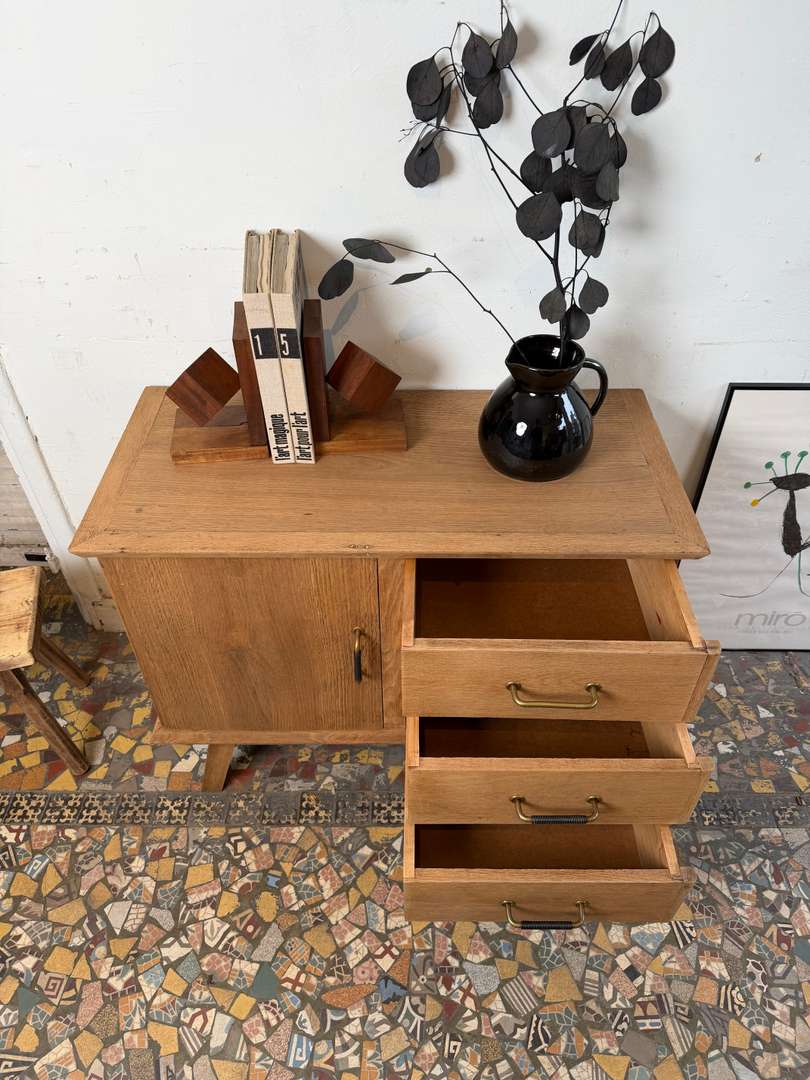 Commode vintage en chêne 280 € Ajouter au panierPetit modèle en chêne, reposant sur des pieds compas. Poignées en laiton d’origine. Un format facile à intégrer, parfait en commode d’appoint ou meuble de chambre. #commodevintage #meublevintage #cheneDimensionsLargeur89.5 cmProfondeur42.5 cmHauteur70 cmProfondeur intérieure38 cmRenseignementsRéférence2605008