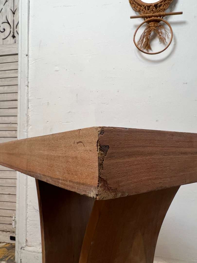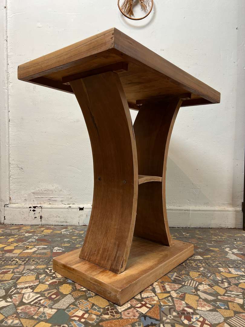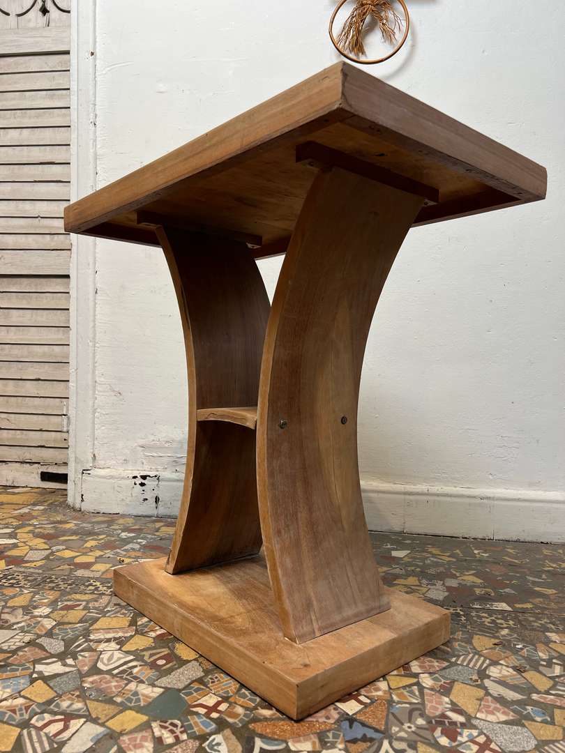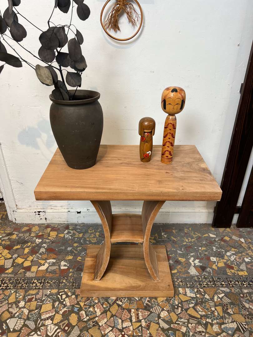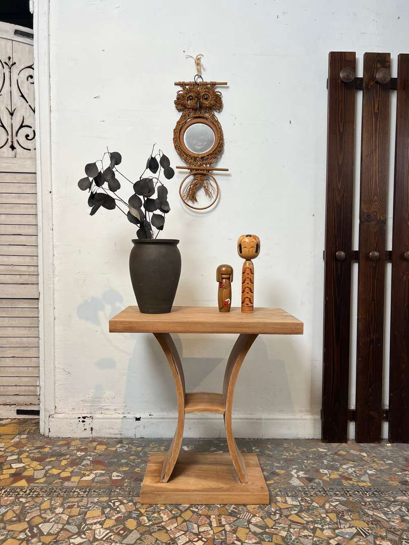 Petite console Art Déco 200 € Ajouter au panierPetite console Art Déco en placage de noyer, idéale en bout de canapé ou en table d’appoint. Sa ligne courbe typique de la période lui donne une silhouette élégante et légère. #artdeco #consolevintage #boutdecanape #meublevintage #placagedenoyer #brocanteDimensionsLargeur65.5 cmProfondeur40 cmHauteur65 cmRenseignementsRéférence2546002