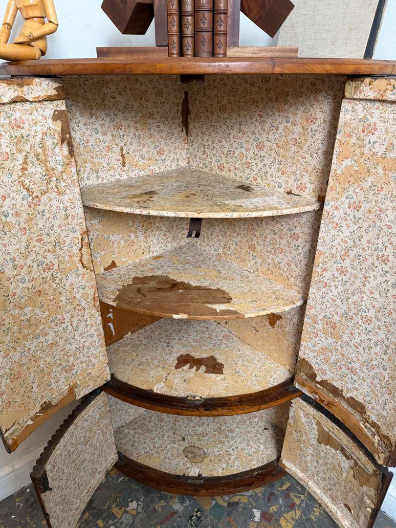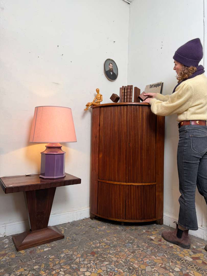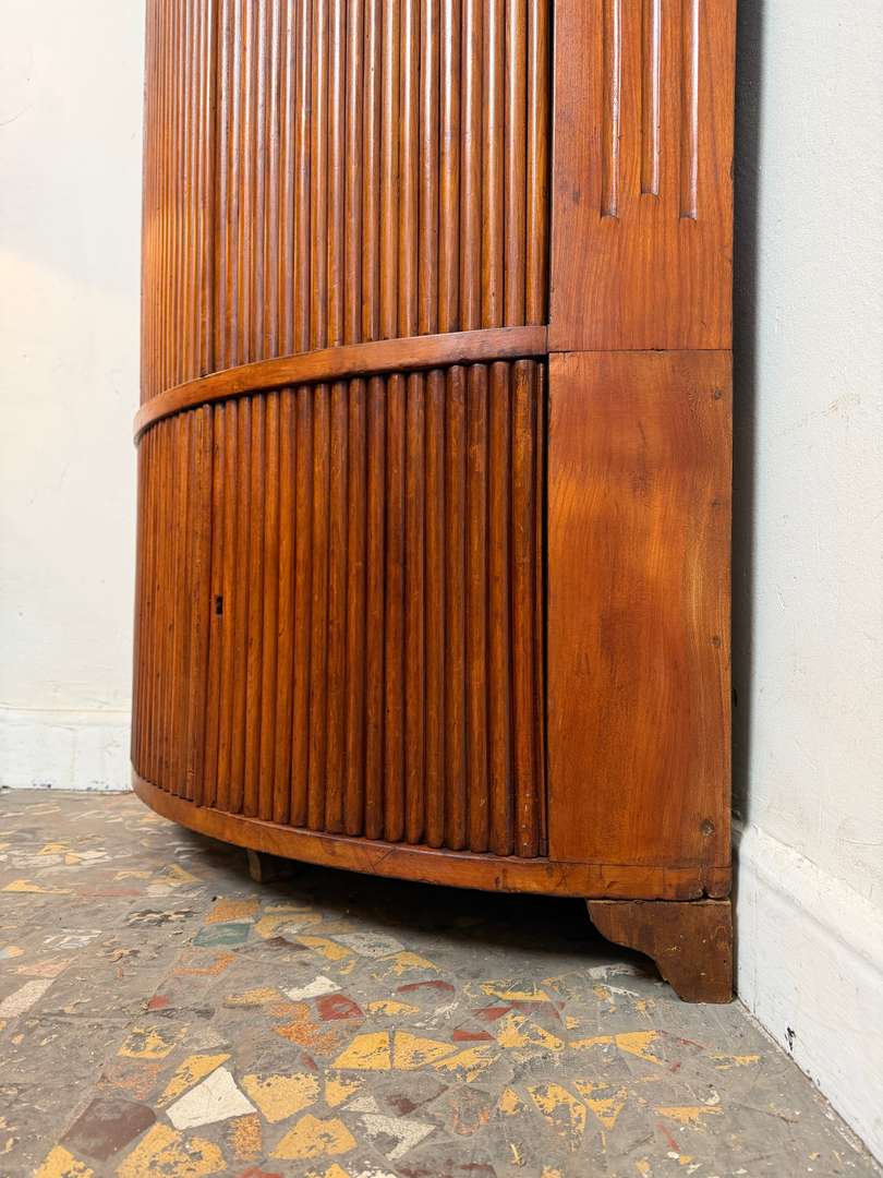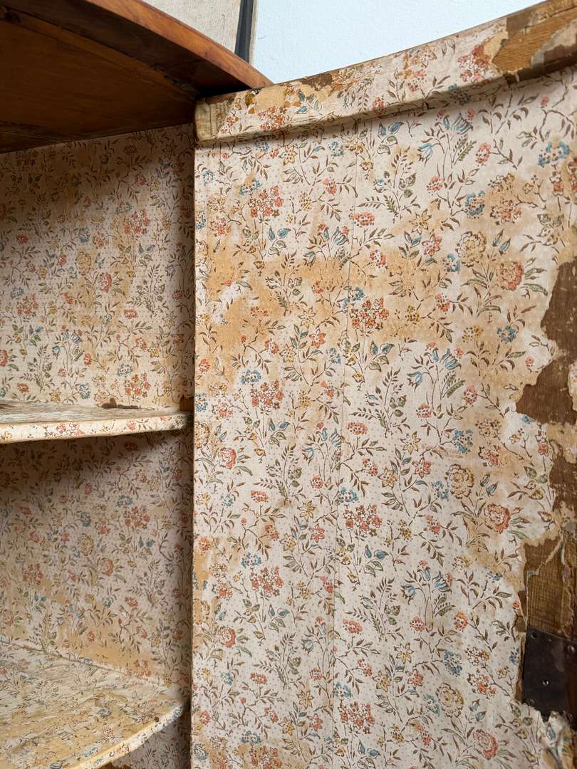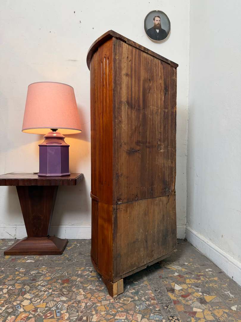 Encoignure d’époque Louis XVI en noyer, datant de la fin du XVIIIᵉ siècle. Belle fabrication, façade à cannelures et proportions équilibrées, conçue pour s’intégrer dans un angle. Intérieur conservé avec son papier d’origine. Le meuble ferme, sans clé. Traces du temps visibles, cohérentes avec son âge.