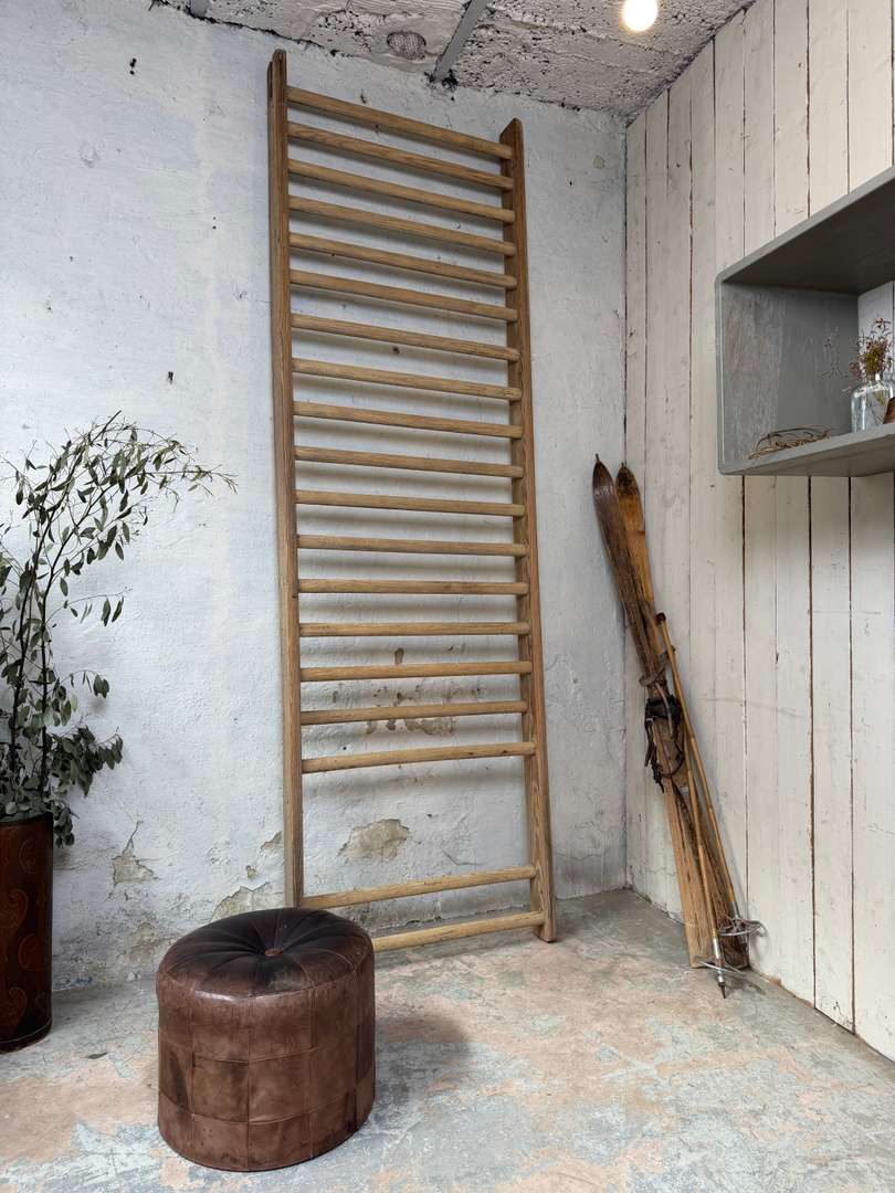 Espalier de sport vintage 380 € Ajouter au panierAncien espalier en bois, structure sapin et barreaux en hêtre. Belle patine d’usage, solide et décoratif. Peut être utilisé en déco murale, vestiaire ou détourné en porte-serviettes. #espalier #vintage #boisancien #decoatelier #brocanteDimensionsLargeur91 cmProfondeur12 cmHauteur291 cmRenseignementsRéférence2614009
