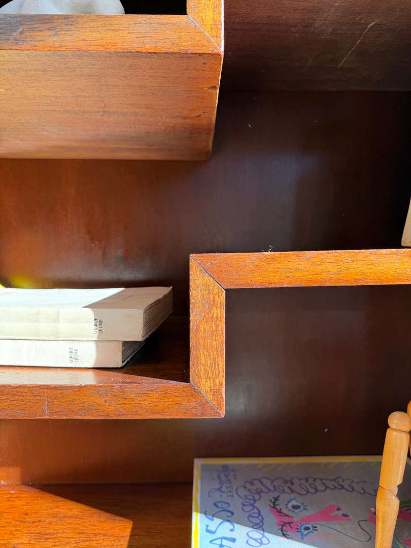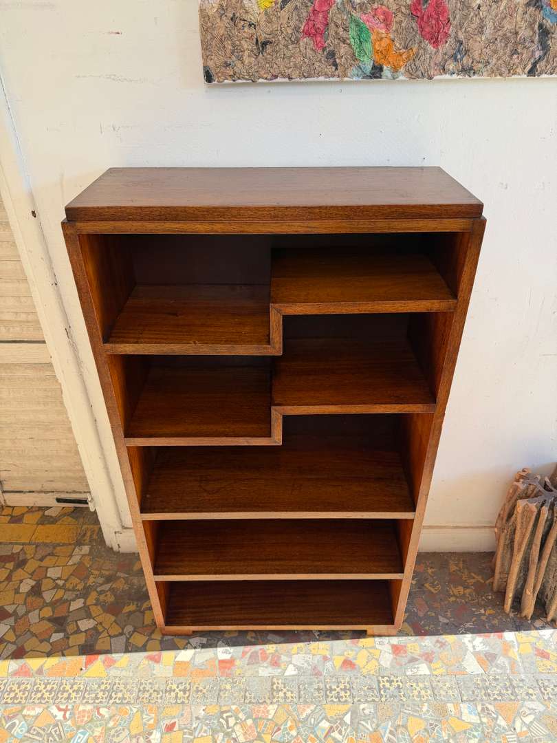 Étagère Art Déco en palissandre 480 € Ajouter au panierÉtagère Art Déco en palissandre, aux lignes géométriques et asymétriques. Jeu de niveaux décalés et structure sobre. Pièce décorative autant que fonctionnelle, parfaite pour mettre en valeur livres et objets. #etagereartdeco #palissandre #mobilierancienDimensionsLargeur71 cmProfondeur29.5 cmHauteur125 cmHauteur des étagères21 + 29,5 + 12,5 cmRenseignementsRéférence2609015