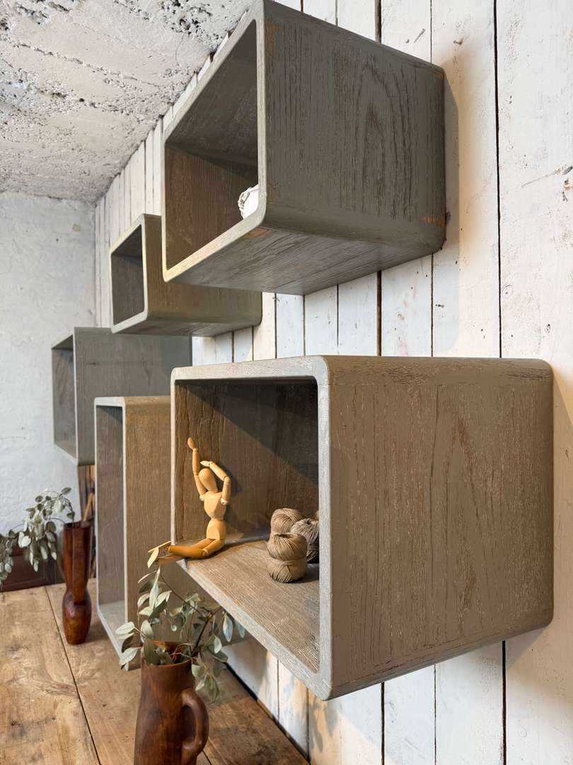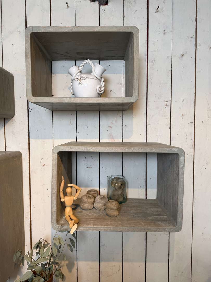 Étagères murales patinées 380 €le lot de 5 pièces Ajouter au panierCes éléments peuvent se suspendre au mur ou se poser. Ils présentent une jolie patine cérusée qui met en valeur le veinage du bois. À disposer seuls ou en composition. #etagere #etagerebois #patinecerusee #deco #mobilierancien #brocanteDimensionsDimensions de l'étagère de gauche78 x 50 x 42pr cmDimensions de l'étagère basse du milieu69 x 45 x 40pr cmDimensions de l'étagère basse de droite 60 x 39 x 37pr cmDimensions de l'étagère haute de droite 51 x 33,5 x 36pr cmDimensions de l'étagère haute du milieu42 x 28 x 34pr cmRenseignementsRéférence2613014