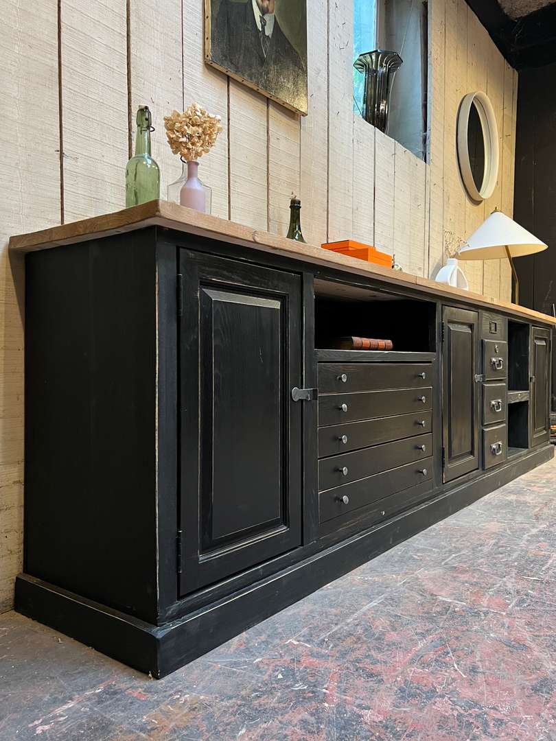 Grand meuble d’atelier Ce produit est venduFabrication artisanale Tiroirs et portes anciennes Structure neuve DimensionsLargeur290 cmProfondeur45 cmHauteur77 cmRenseignementsRéférence2249027