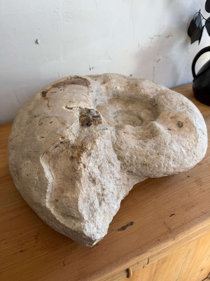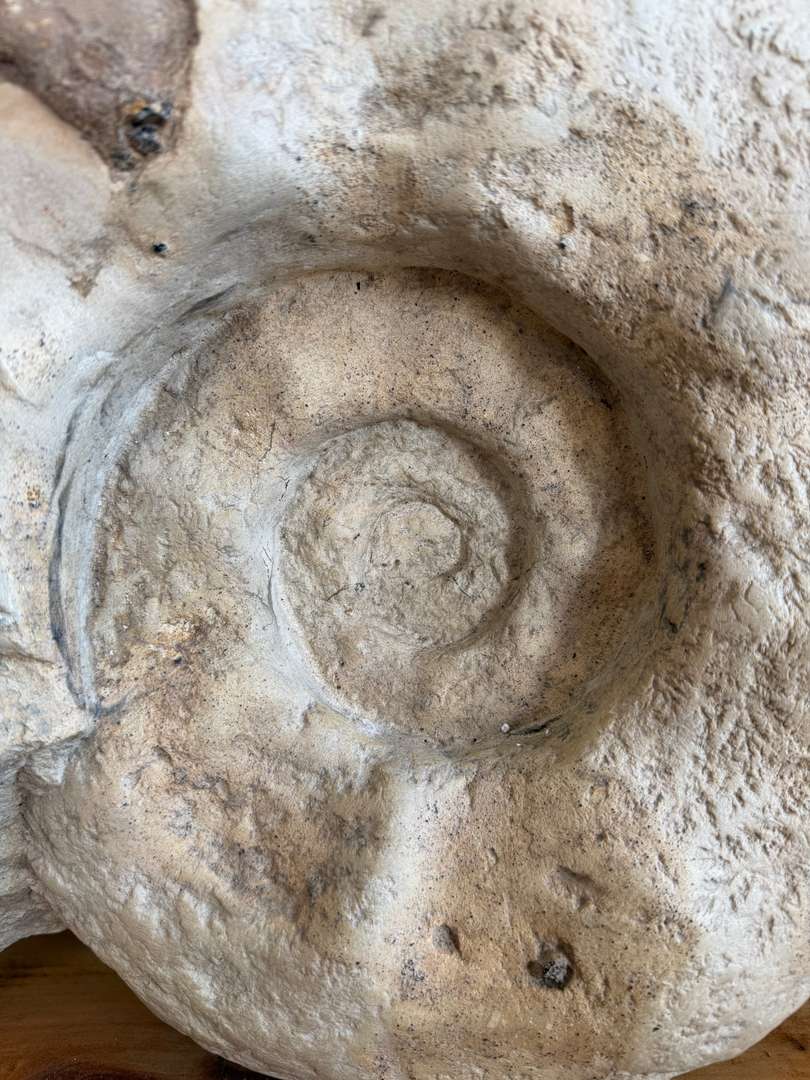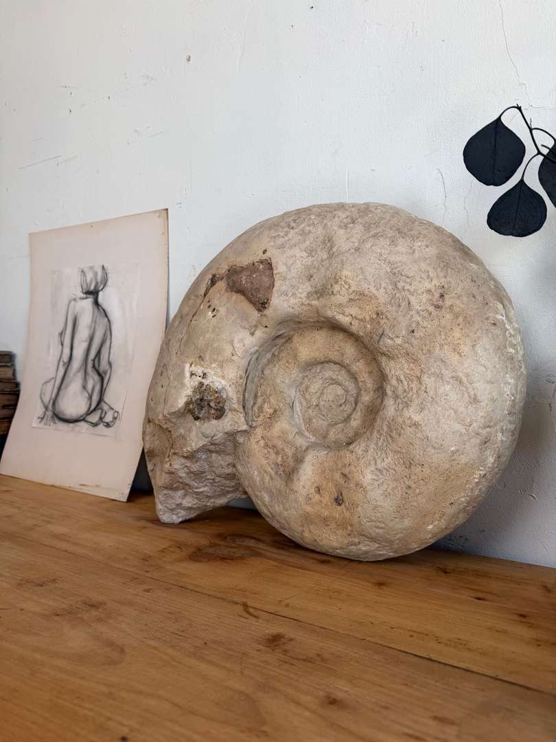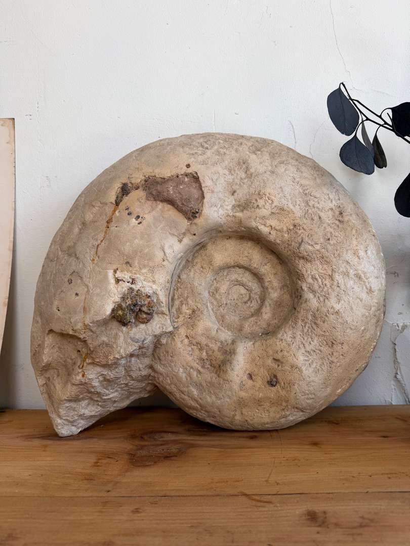 Très belle spirale centrale, relief marqué et traces naturelles de minéralisation. Une pièce spectaculaire, autant décorative que fascinante.