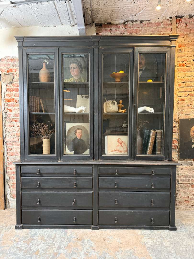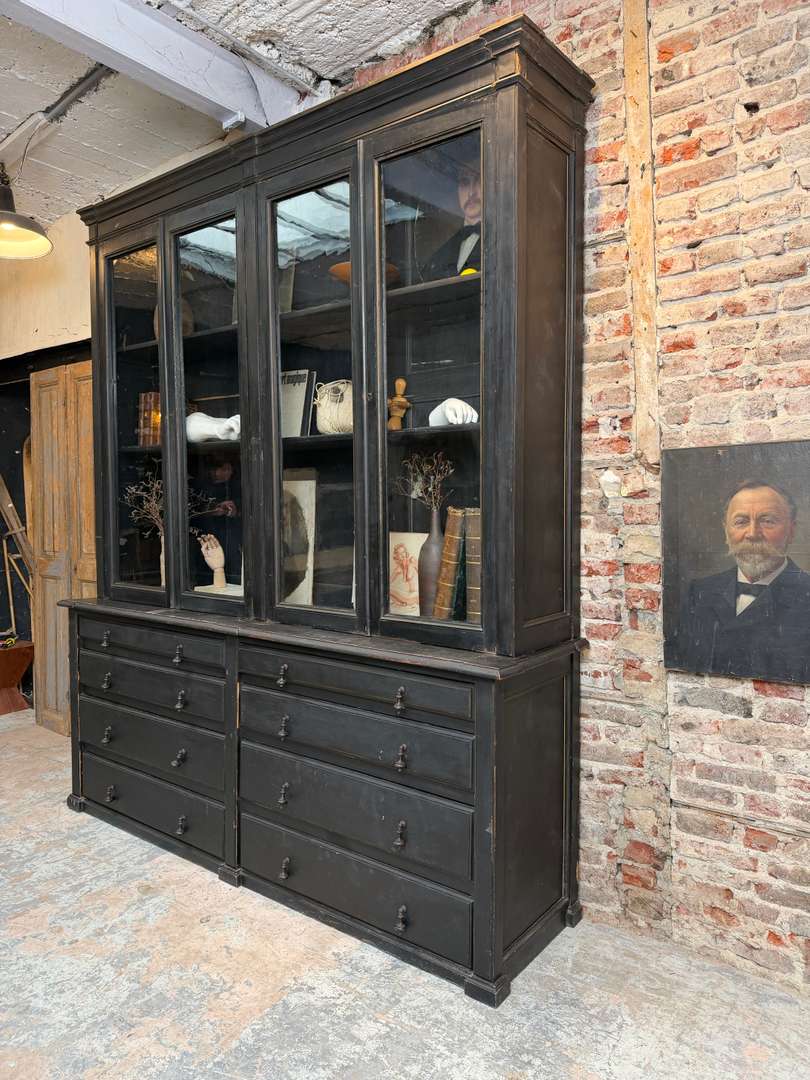 Grande bibliothèque vitrée noire — fin XIXème