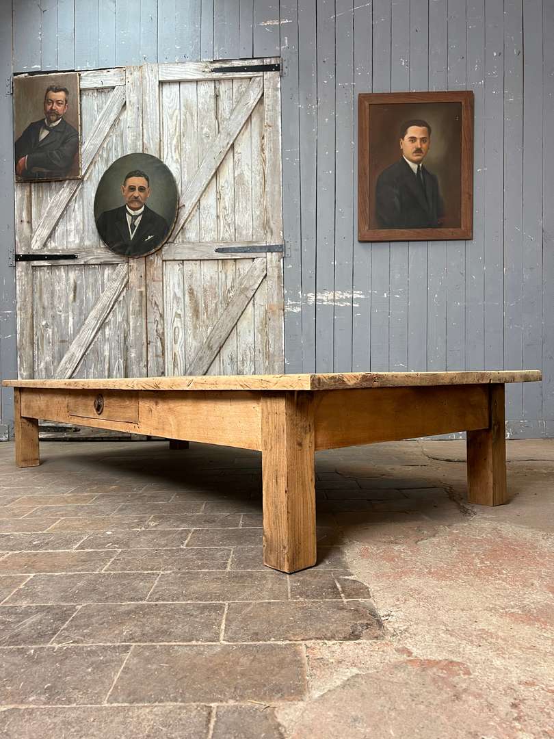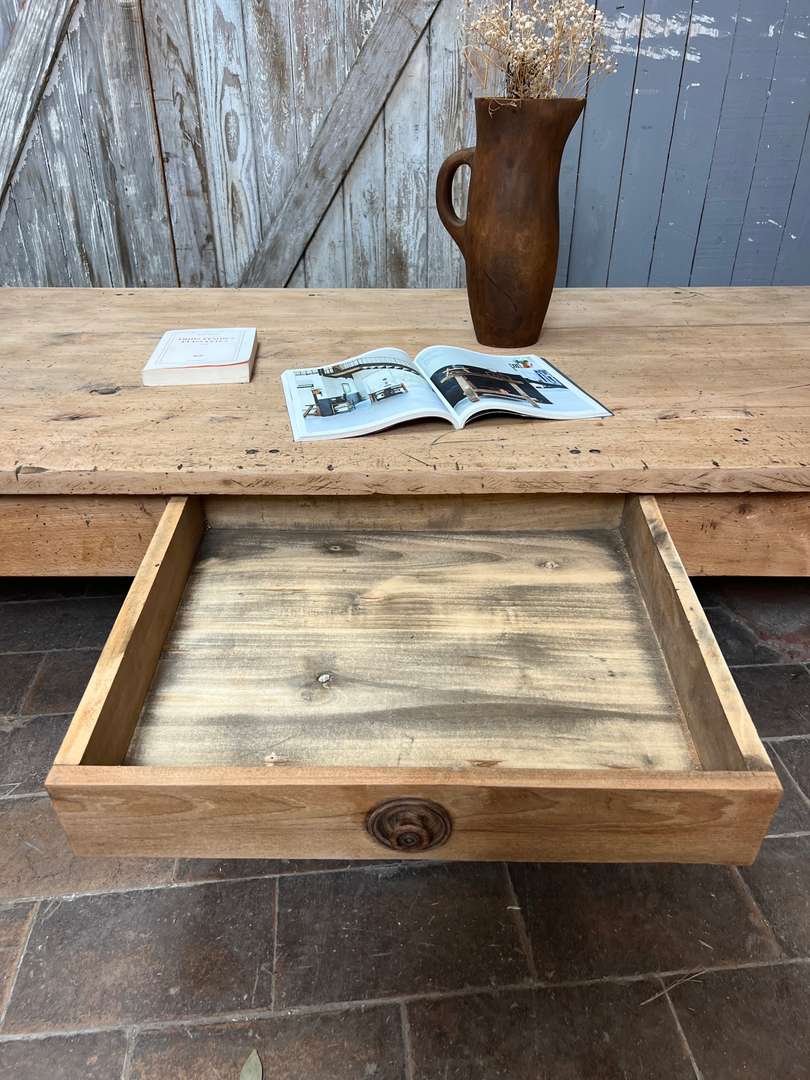 Grande table basse en hêtre - Bois brut 580 € Ajouter au panierAncienne table basse en hêtre, avec un plateau en bois brut. Elle possède un tiroir pratique pour le rangement. #tablebasse #hetre #boisbrut #meublevintage #brocante #decoauthentiqueDimensionsLargeur199 cmProfondeur88 cmHauteur37 cmRenseignementsRéférence2538006