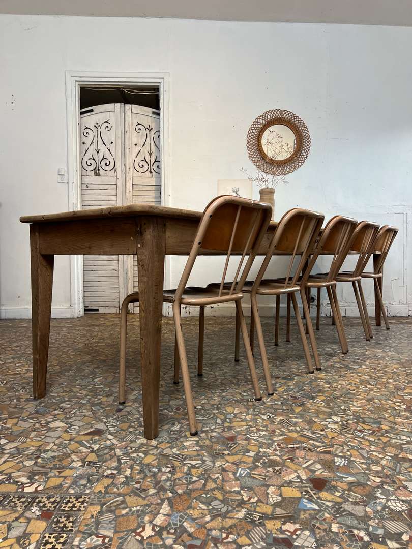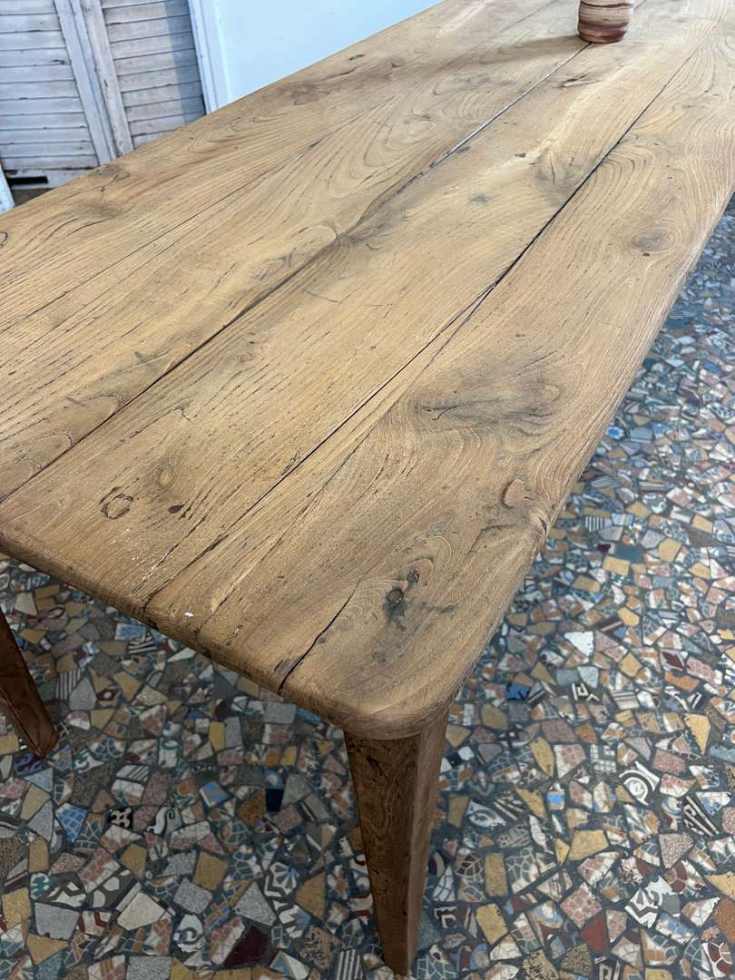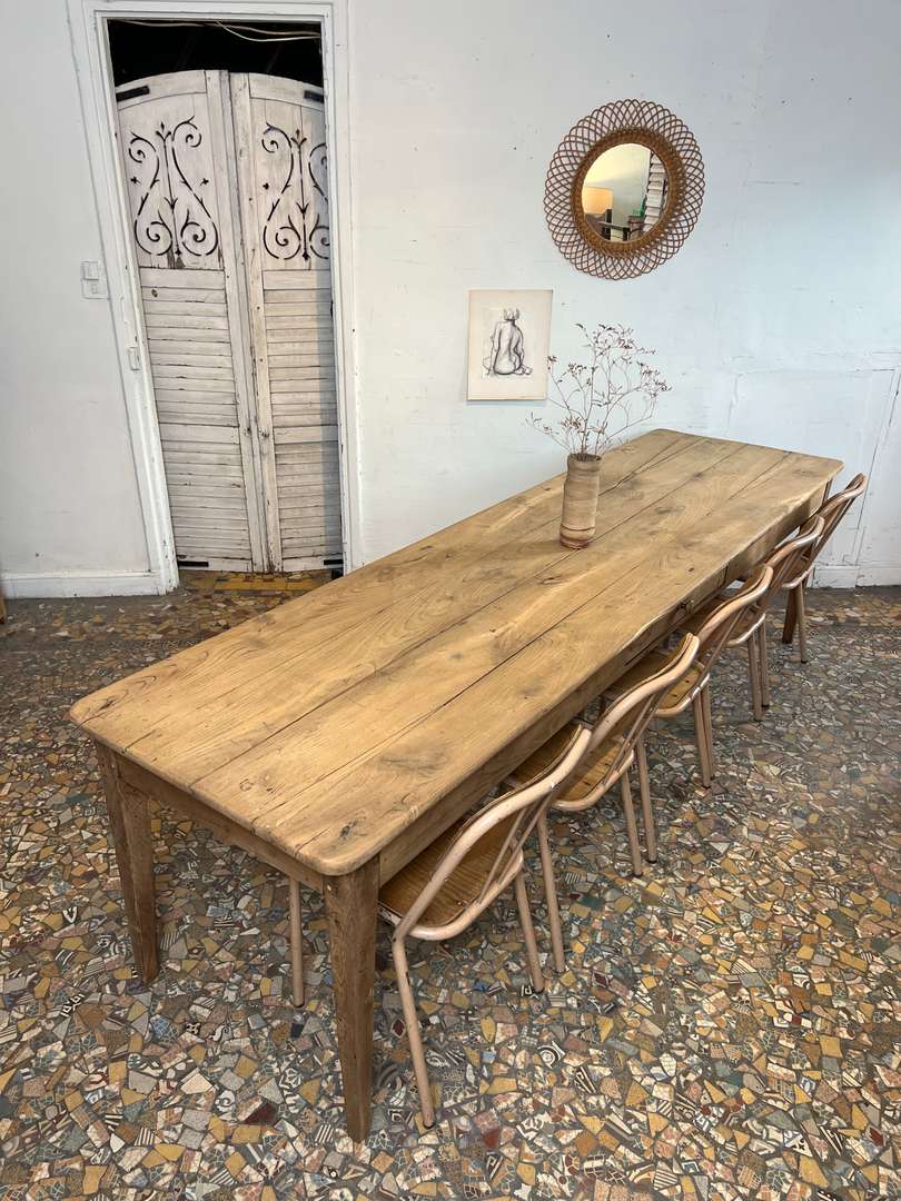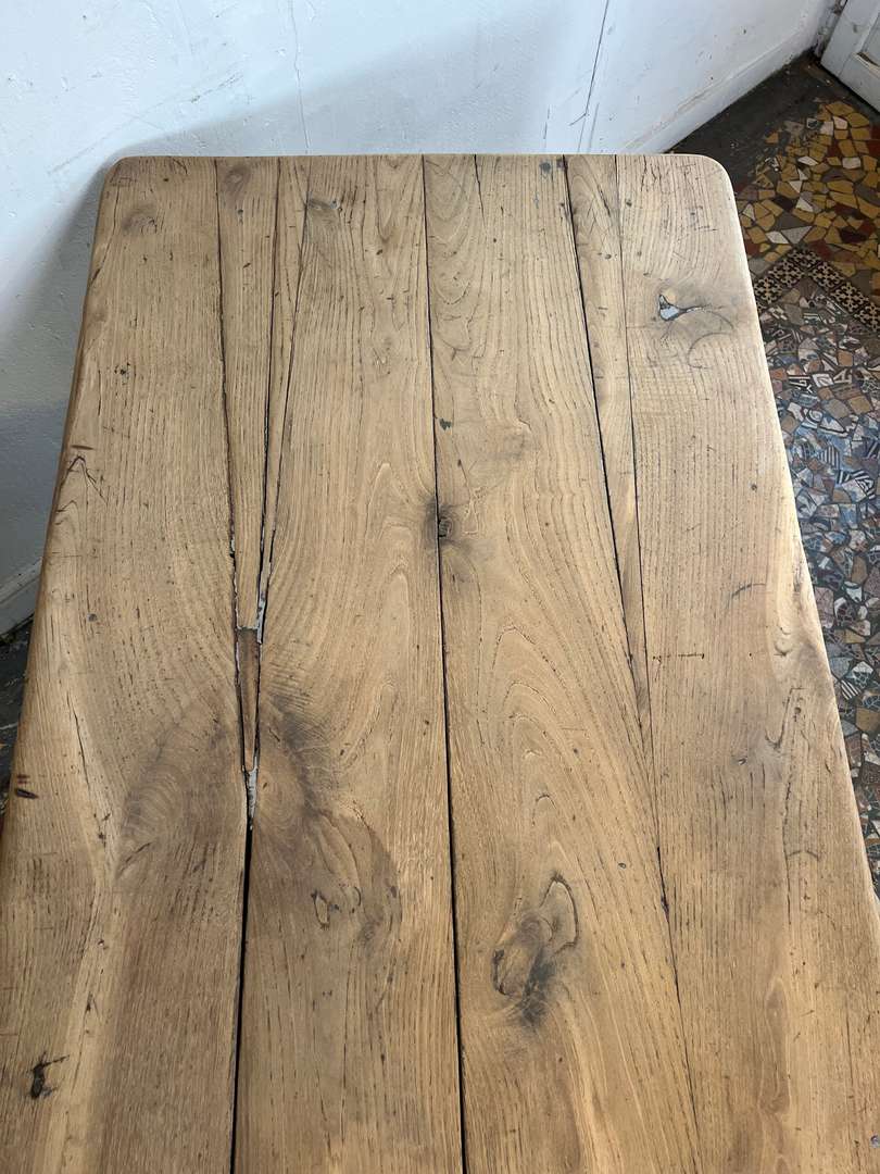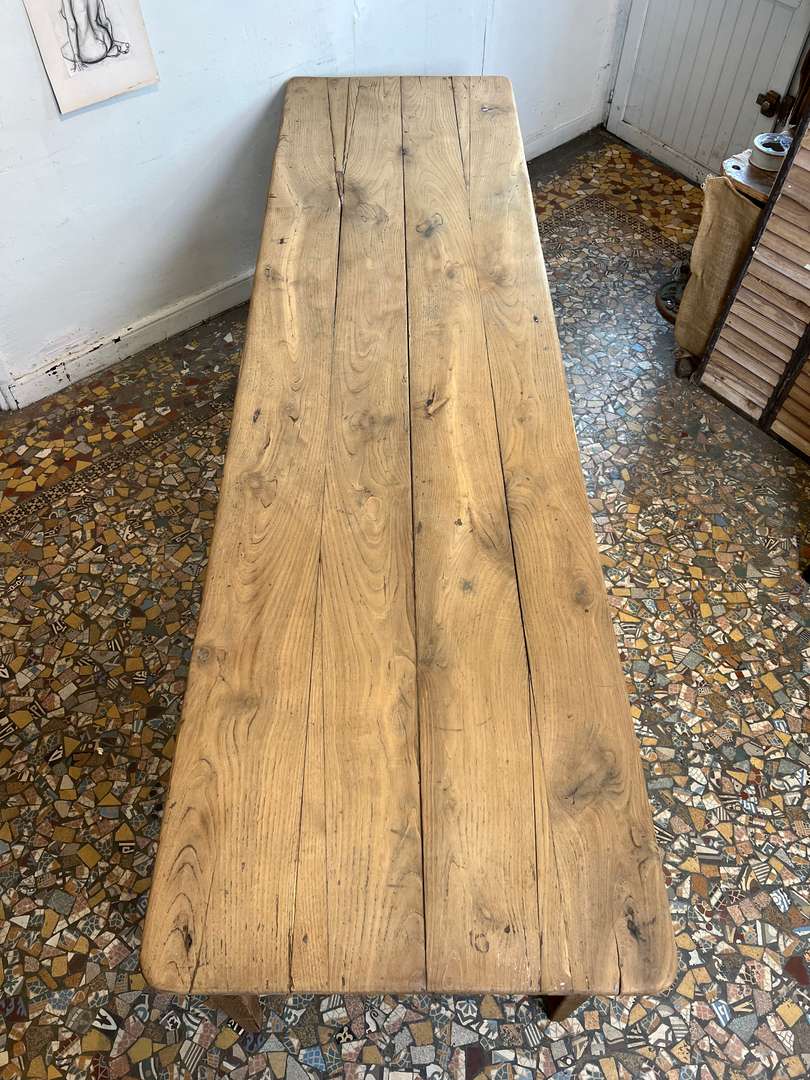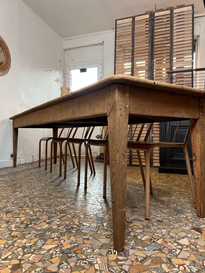 Grande table de ferme en châtaignier 1500 € Ajouter au panierAncienne table du XIXᵉ siècle en châtaignier massif. Plateau en bois brut, belle patine, un tiroir en ceinture. Idéale pour les grandes tablées, jusqu’à 10/12 personnes. #tableancienne #chataignier #mobilierancienDimensionsLargeur285 cmProfondeur78 cmHauteur76 cmHauteur dessous bandeau61 cmRenseignementsRéférence2551011