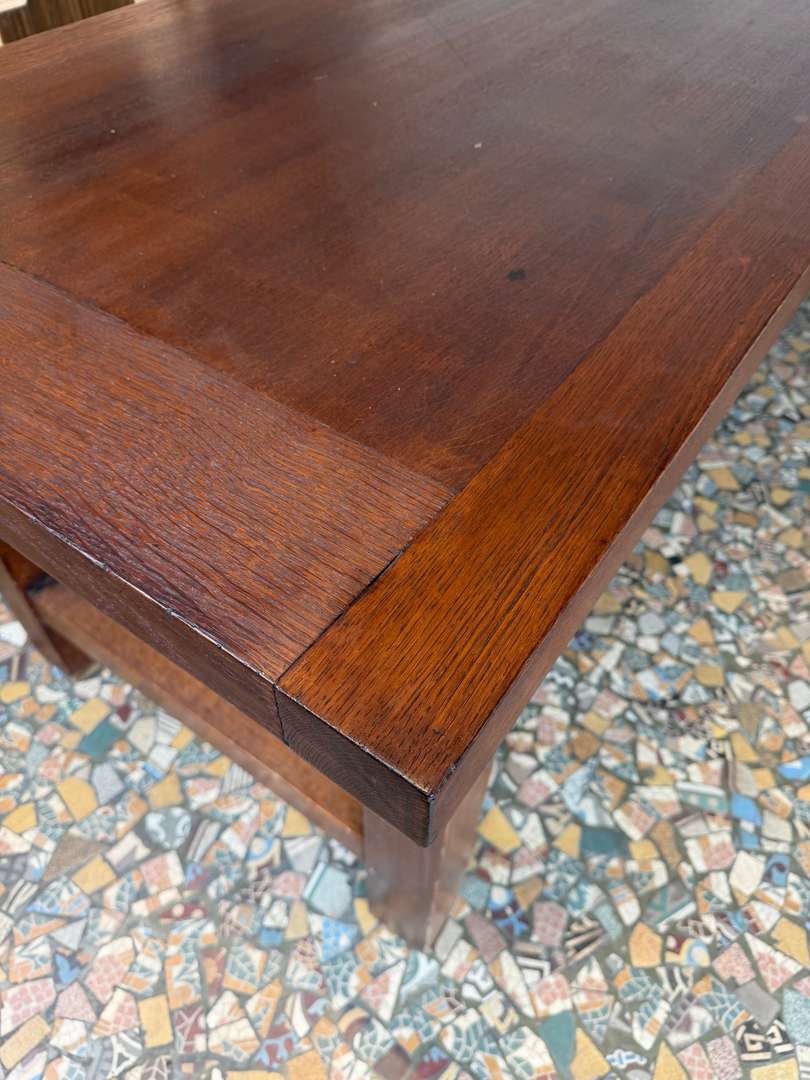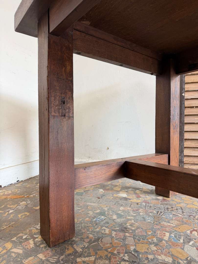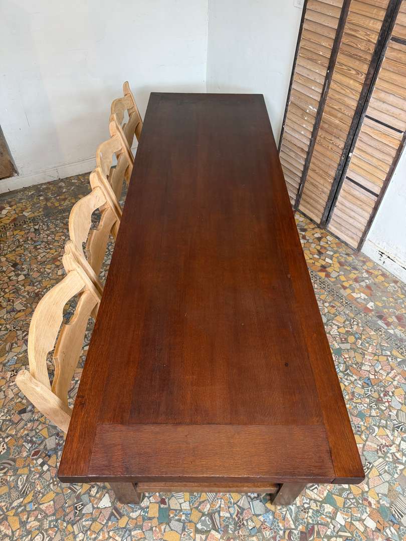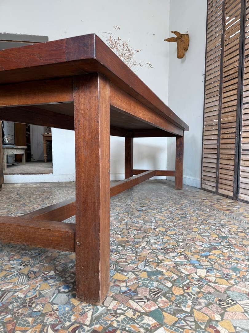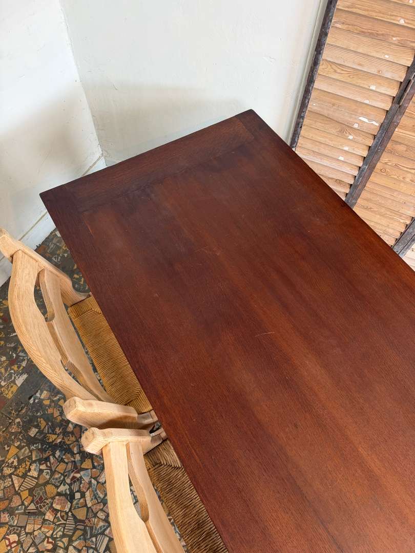 Elle peut accueillir facilement 10 à 12 personnes, idéale en table de salle à manger ou grande table de travail. Le plateau présente une belle patine, avec quelques marques du temps qui participent à son charme.