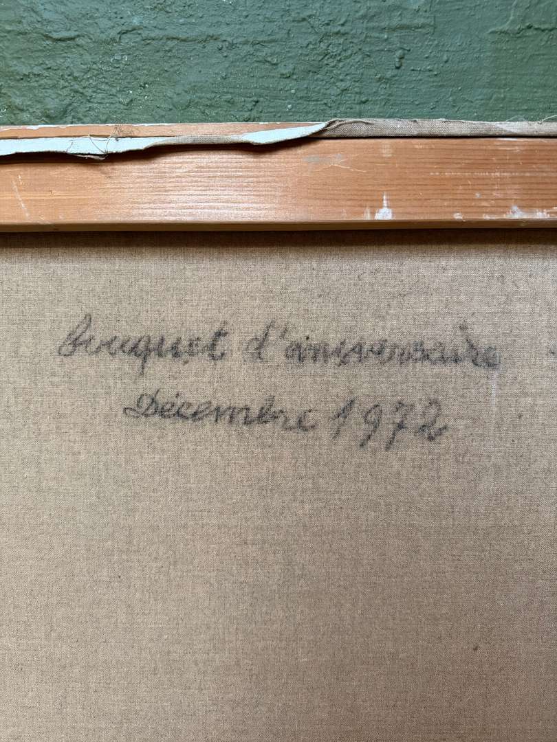 Intitulée “Bouquet d’anniversaire” et datée 1972 au dos. Elle provient du fond de l’atelier de l’artiste.