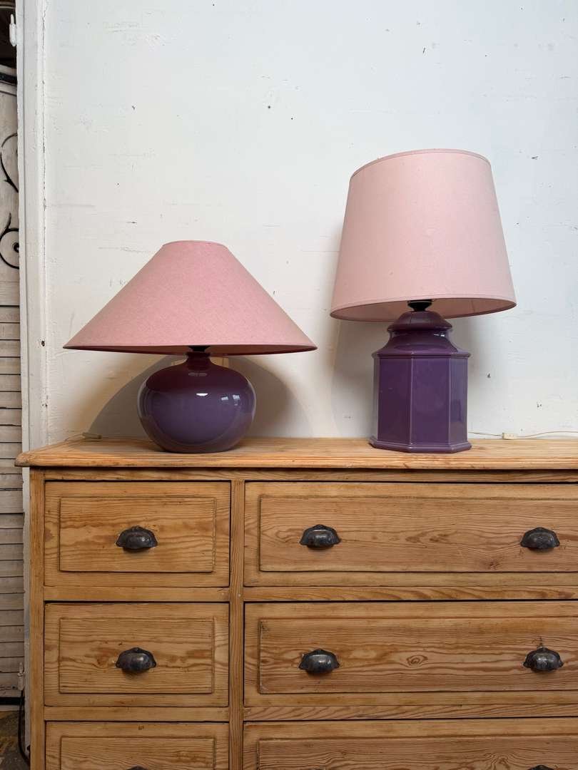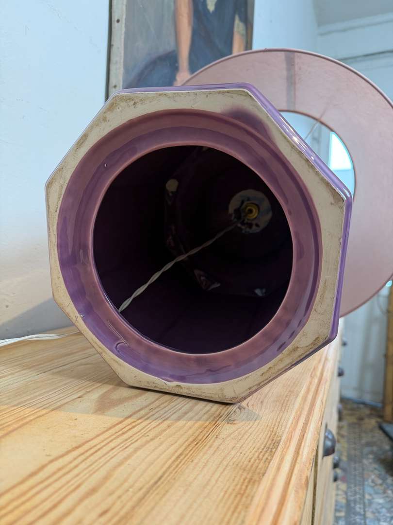 Lampe années 80 220 €Livraison france offerte Ajouter au panierLampe des années 80 avec pied en céramique violette. Abat-jour rose dans son jus, ampoule à visser. #lampevintage #annees80 #ceramique #lampeancienne #brocanteDimensionsLargeur43 cmProfondeur43 cmHauteur64 cmRenseignementsRéférence2602007