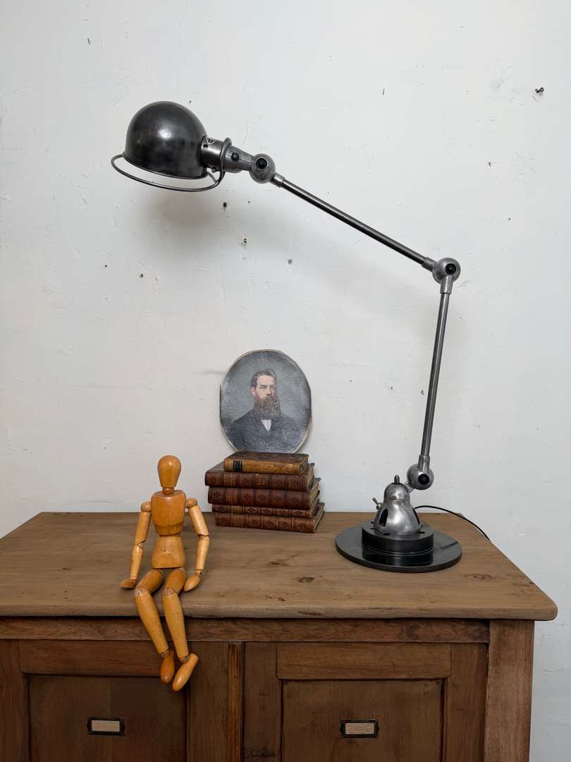 Lampe d’atelier Jieldé — années 50Ce produit est venduLampe d’atelier Jieldé des années 50, entièrement articulable et orientable. Plaque Jieldé rivetée et interrupteur d’origine. Électricité neuve. #jielde #lampeatelier #annees50 #designindustriel #luminairevintage #atelierDimensionsDimensions du socle 27 cmDimensions des bras42 x 2 cmDimensions du globe20 cmRenseignementsRéférence2610006