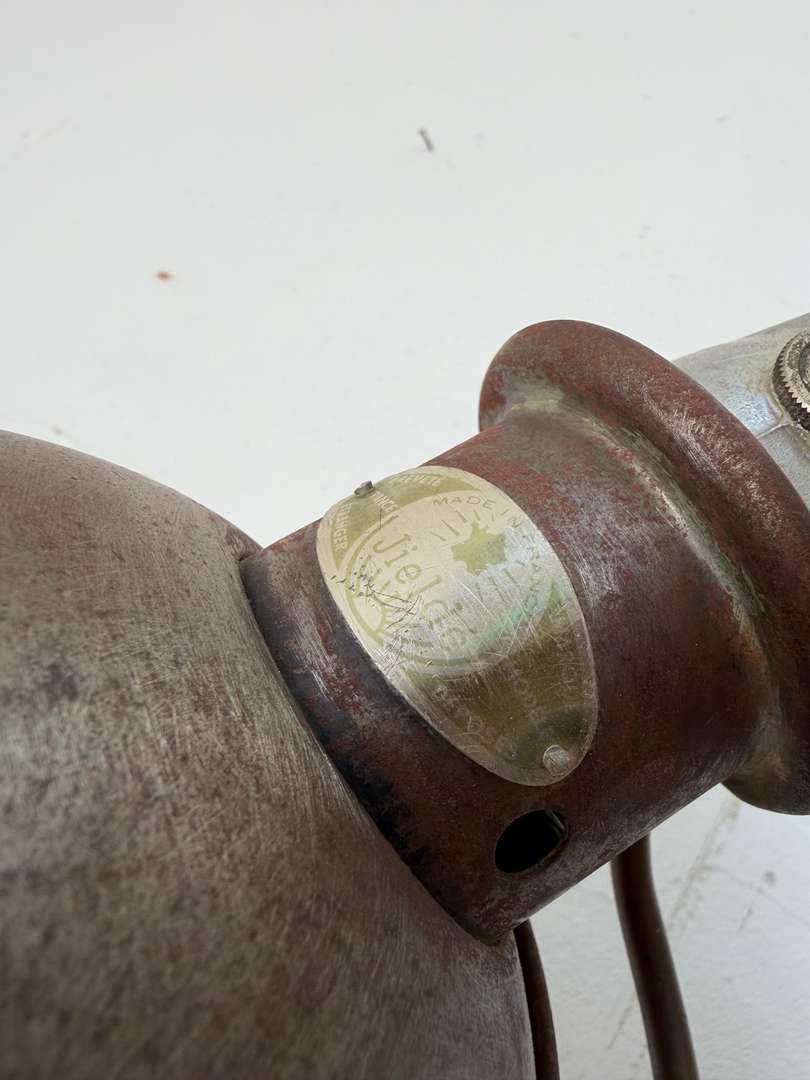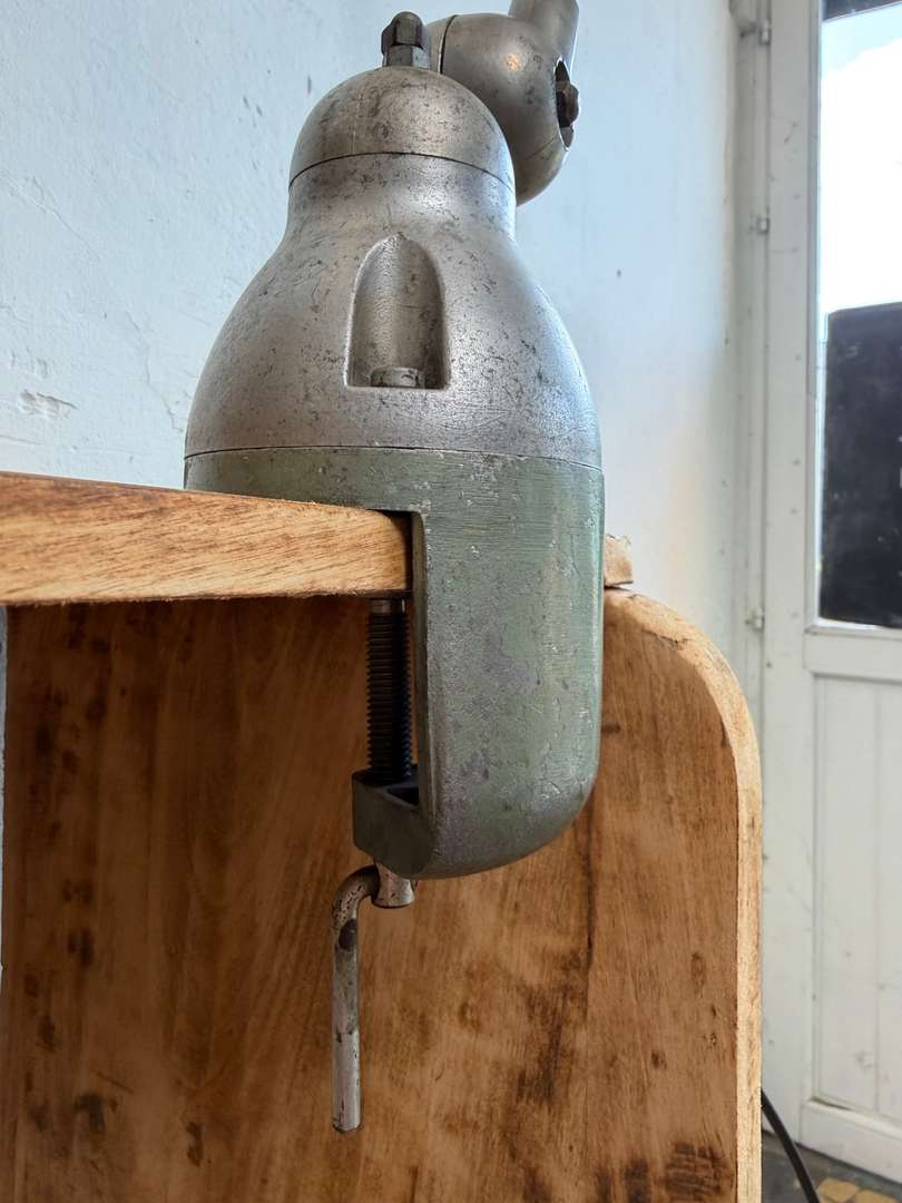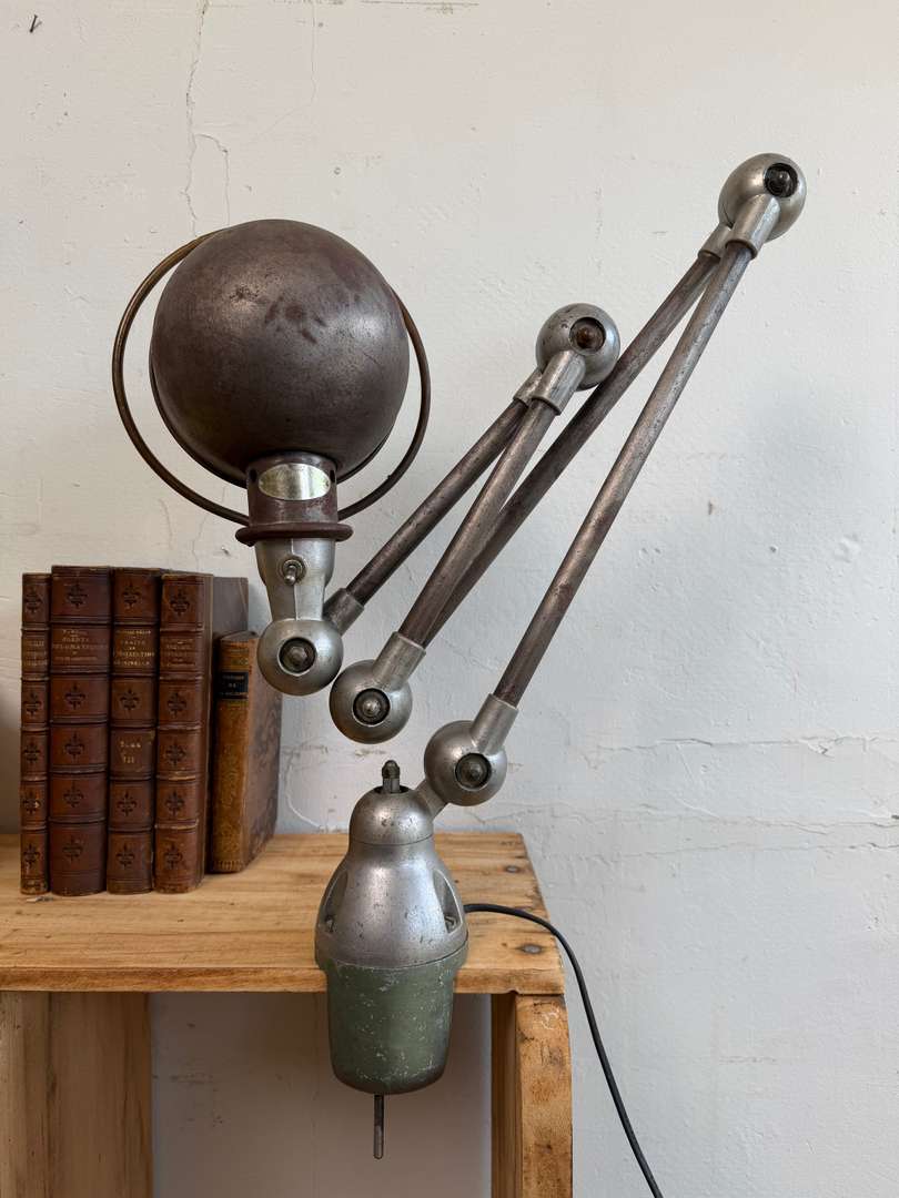 Lampe d’atelier Jieldé sur étau — années 50 580 €Livraison france offerte Ajouter au panierAncienne lampe d’atelier Jieldé des années 50 montée sur étau. Plaque et interrupteur d’origine. Entièrement articulable et orientable. #lampejielde #lampeatelier #jielde #luminaireindustriel #annees50 #mobilieratelierDimensionsDimensions des petits bras 2 x 28 cmDimensions des grands bras 2 x 42 cmDiamètre du globe 20 cmRenseignementsRéférence2611003