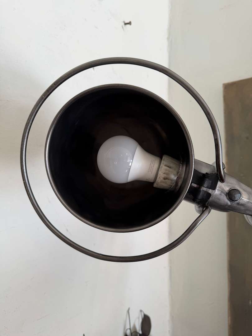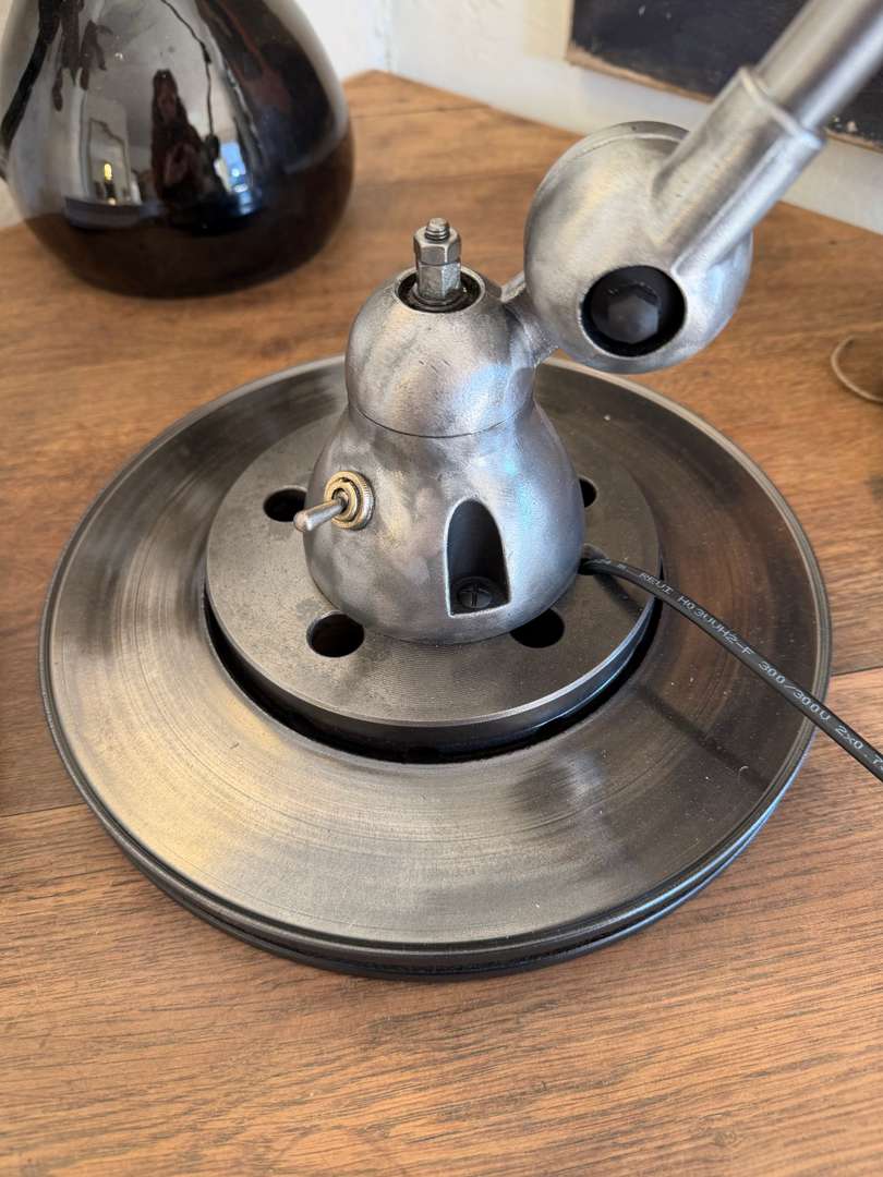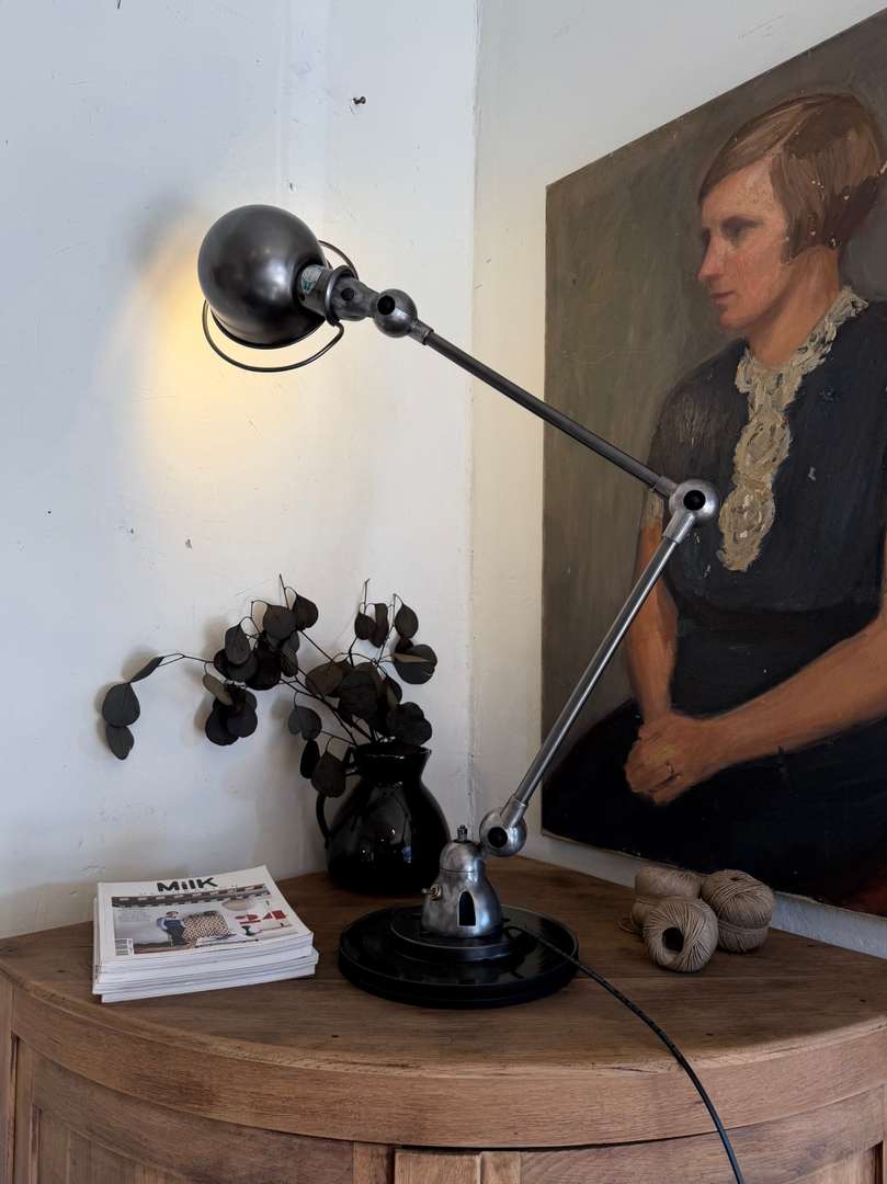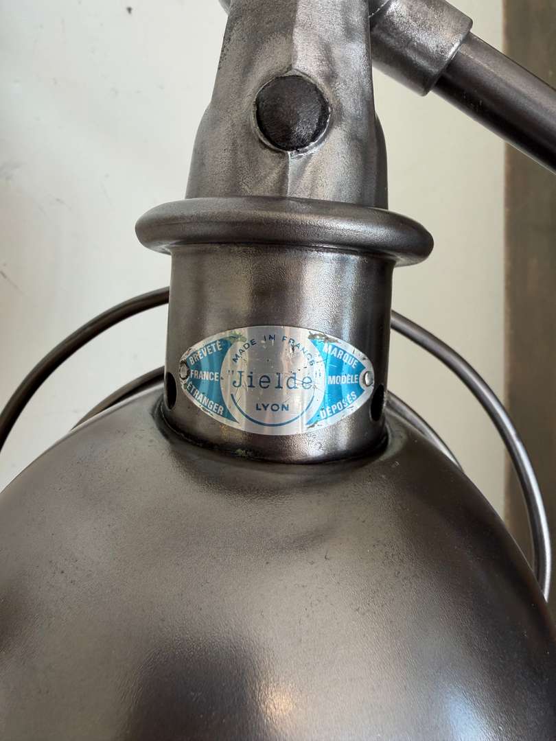 Lampe d’atelier Jieldé — années 50Ce produit est venduLampe d’atelier Jieldé des années 50, entièrement articulable et orientable. Plaque Jieldé rivetée et interrupteur d’origine. Électricité neuve. #jielde #lampeatelier #annees50 #designindustriel #luminairevintage #atelierDimensionsDimensions des bras2 x 42 cmDimensions du globe20 cmRenseignementsRéférence2612014