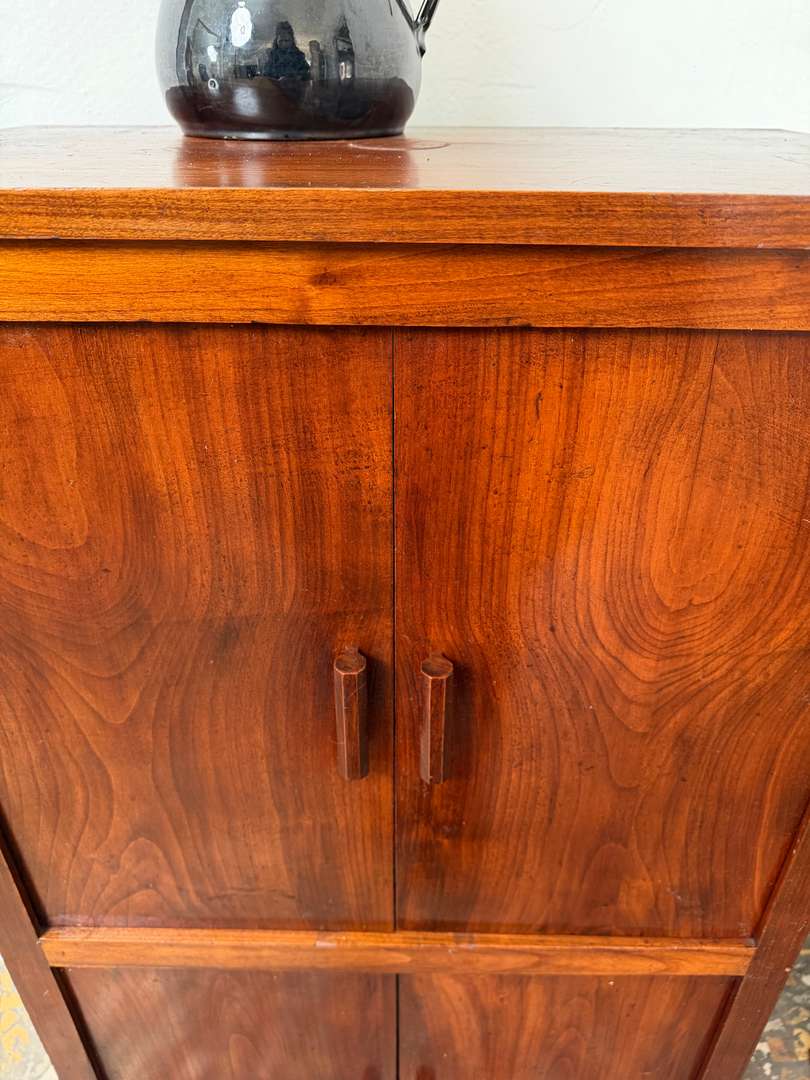 Meuble de rangement des années 40/50 en palissandre. Lignes sobres et élégantes, typiques de la période Art Déco tardif / moderniste.