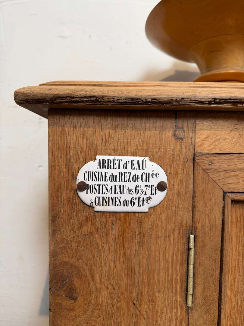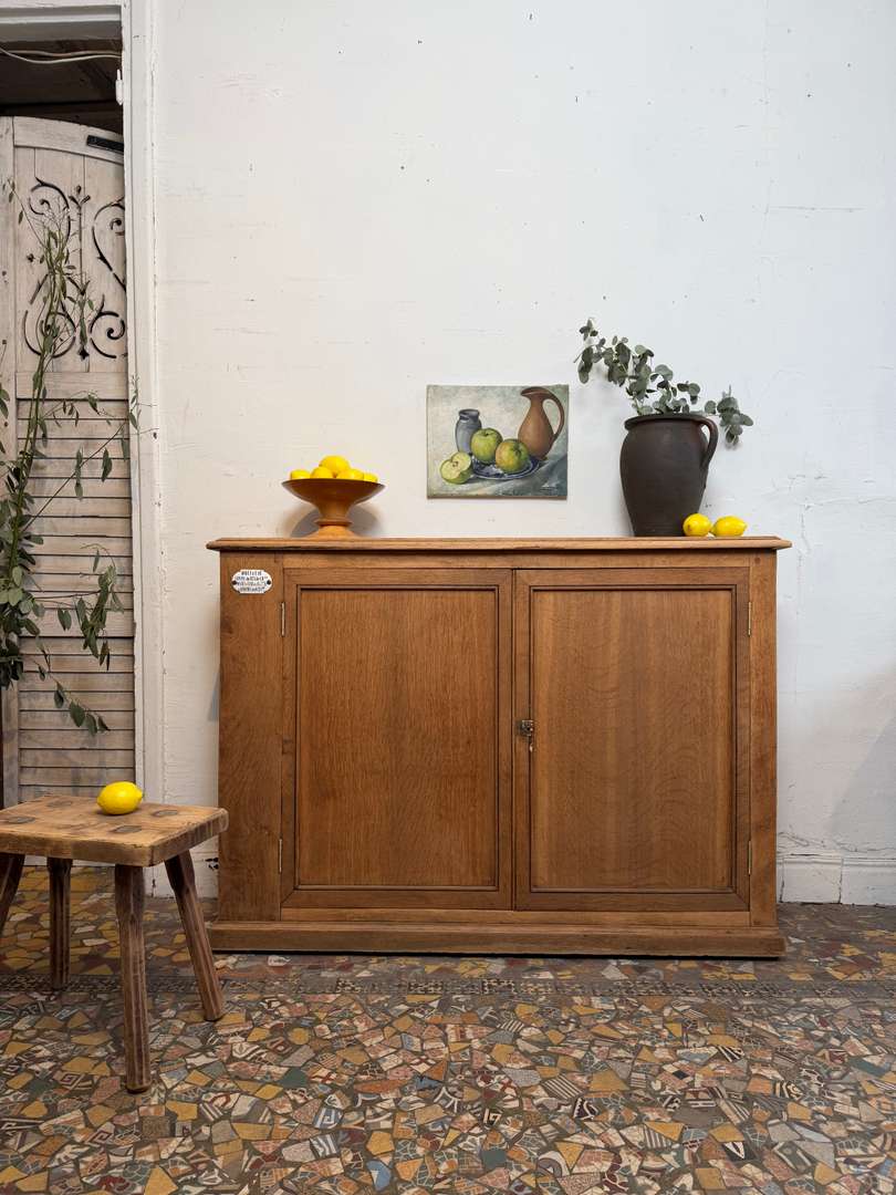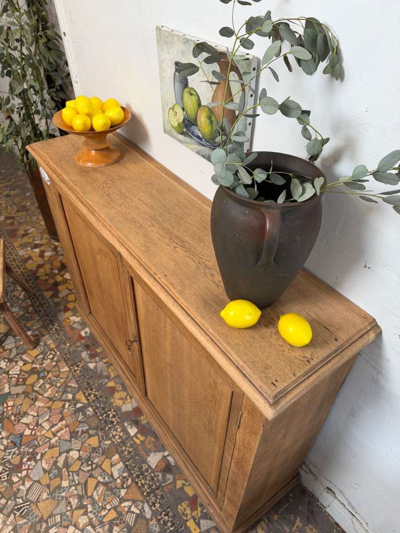 Meuble étroit en chêneCe produit est venduMeuble ancien en chêne, de format étroit, idéal pour un espace réduit. Il est équipé d’une plaque émaillée ancienne. L’intérieur offre des étagères modulables pour le rangement. Le meuble ferme à clé. #meubleanancien #chene #plaqueemailleeDimensionsLargeur125 cmProfondeur32 cmHauteur89 cmProfondeur intérieure24,5 cmRenseignementsRéférence2605007