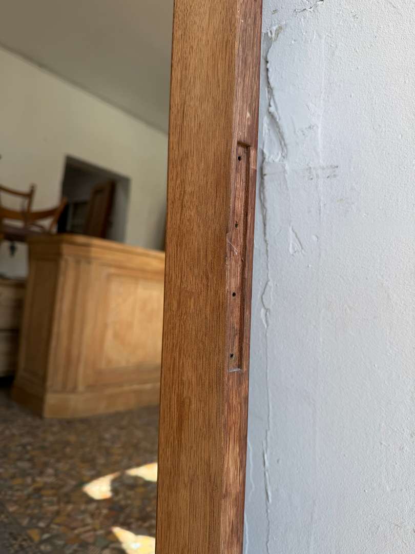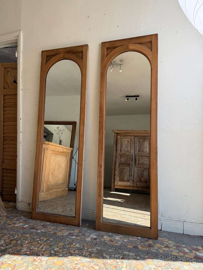 Miroir en chêne – XXe siècleCe produit est venduMiroir en chêne XXe siècle Encadrement à arc cintré Miroir remplacé récemment Bois patiné avec traces du temps Vendu à l’unité Peut être posé ou fixé #miroir #miroirancien #chene #mobilierancien #brocante DimensionsLargeur60 cmProfondeur3.5 cmHauteur199 cmRenseignementsRéférence2612009