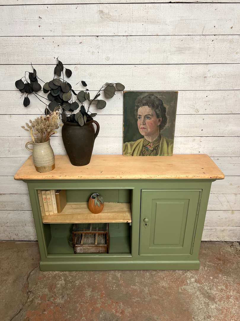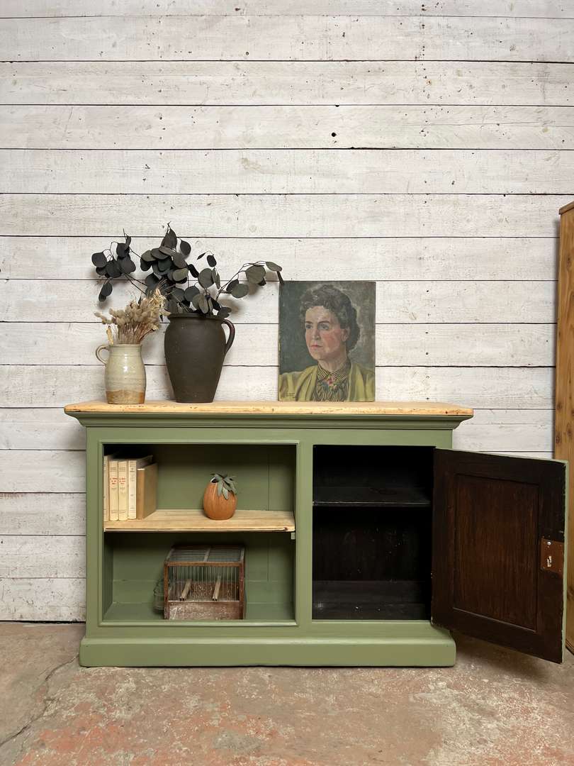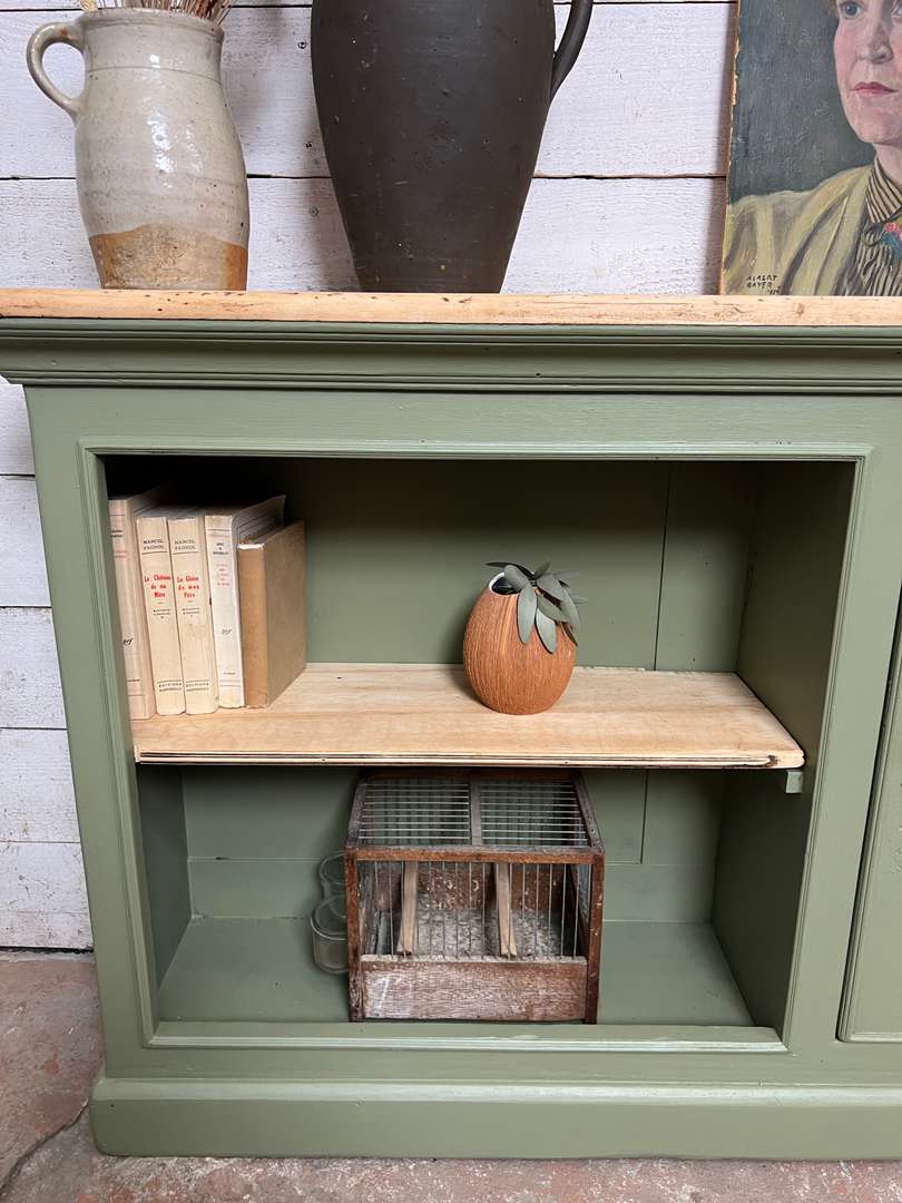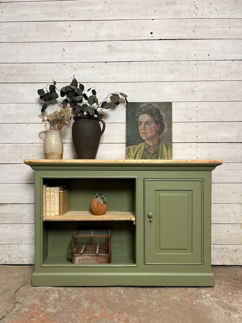 Petit meuble peint en vert Ce produit est venduAncien petit meuble étroit, composé d’une étagère et d’une porte qui ne ferme pas à clé. Il est peint en vert et possède un plateau en bois brut. Pratique pour les petits espaces. #meublevintage #petitmeuble #boisbrut #brocante #decoauthentique #meubleenbois DimensionsLargeur120 cmProfondeur31 cmHauteur79 cmProfondeur intérieure21 + 22 cmRenseignementsRéférence2538006
