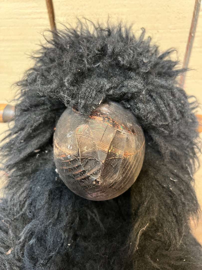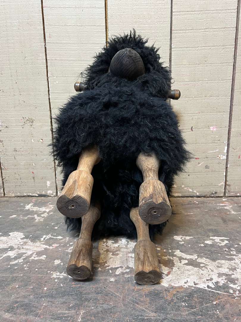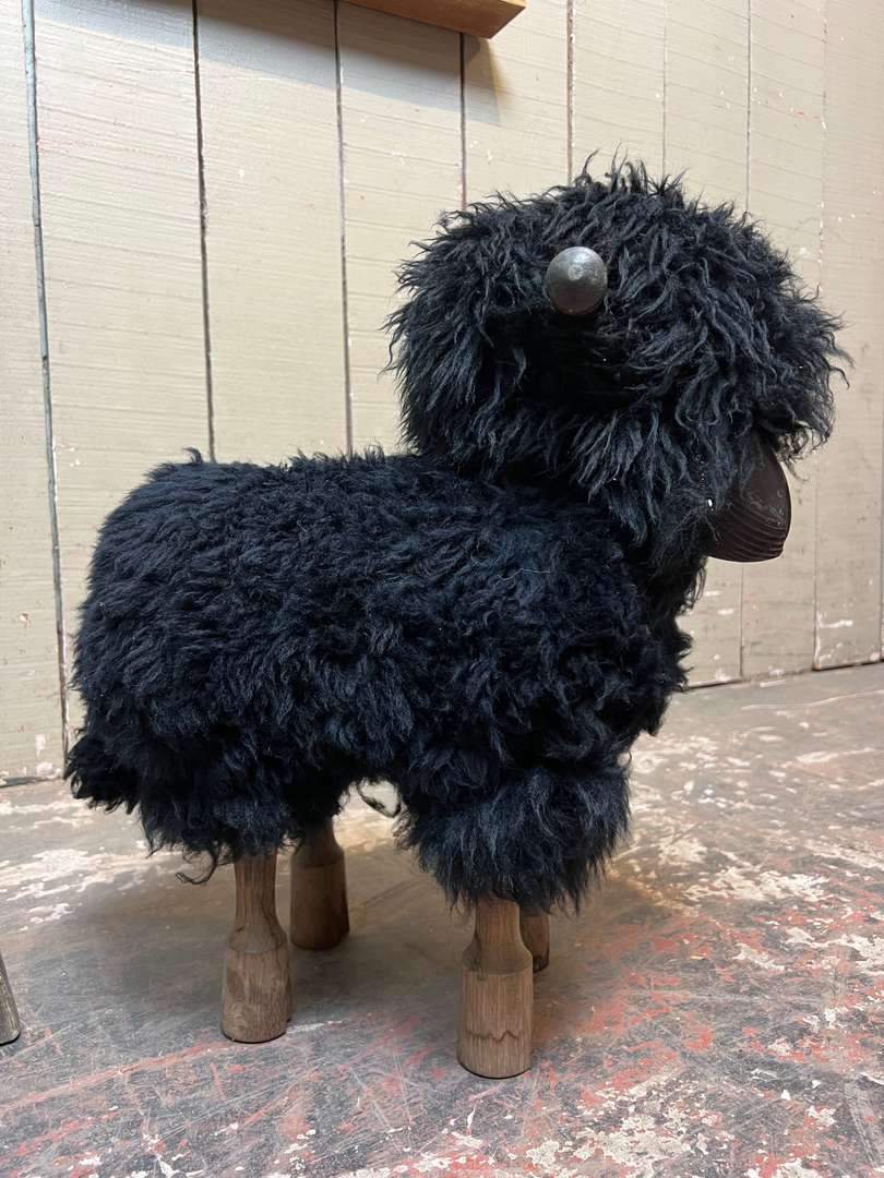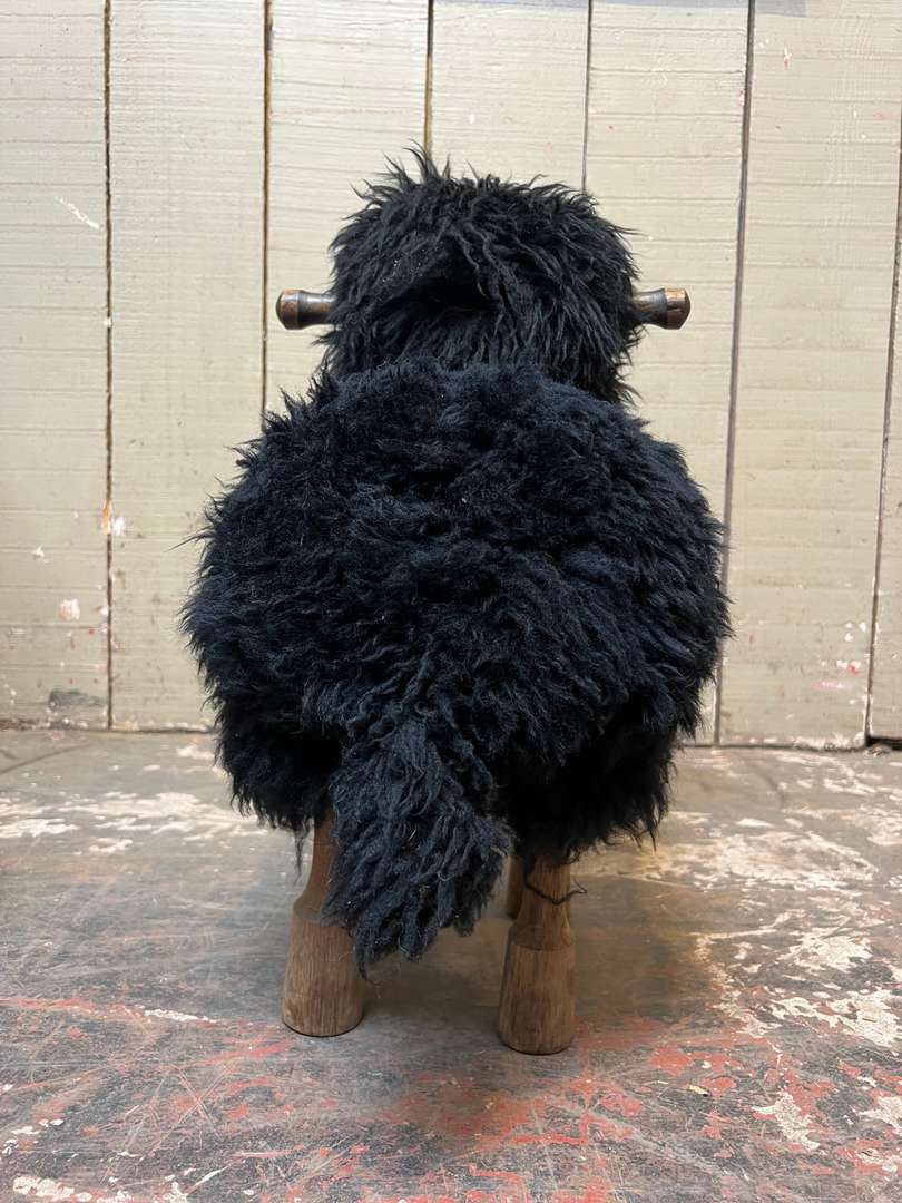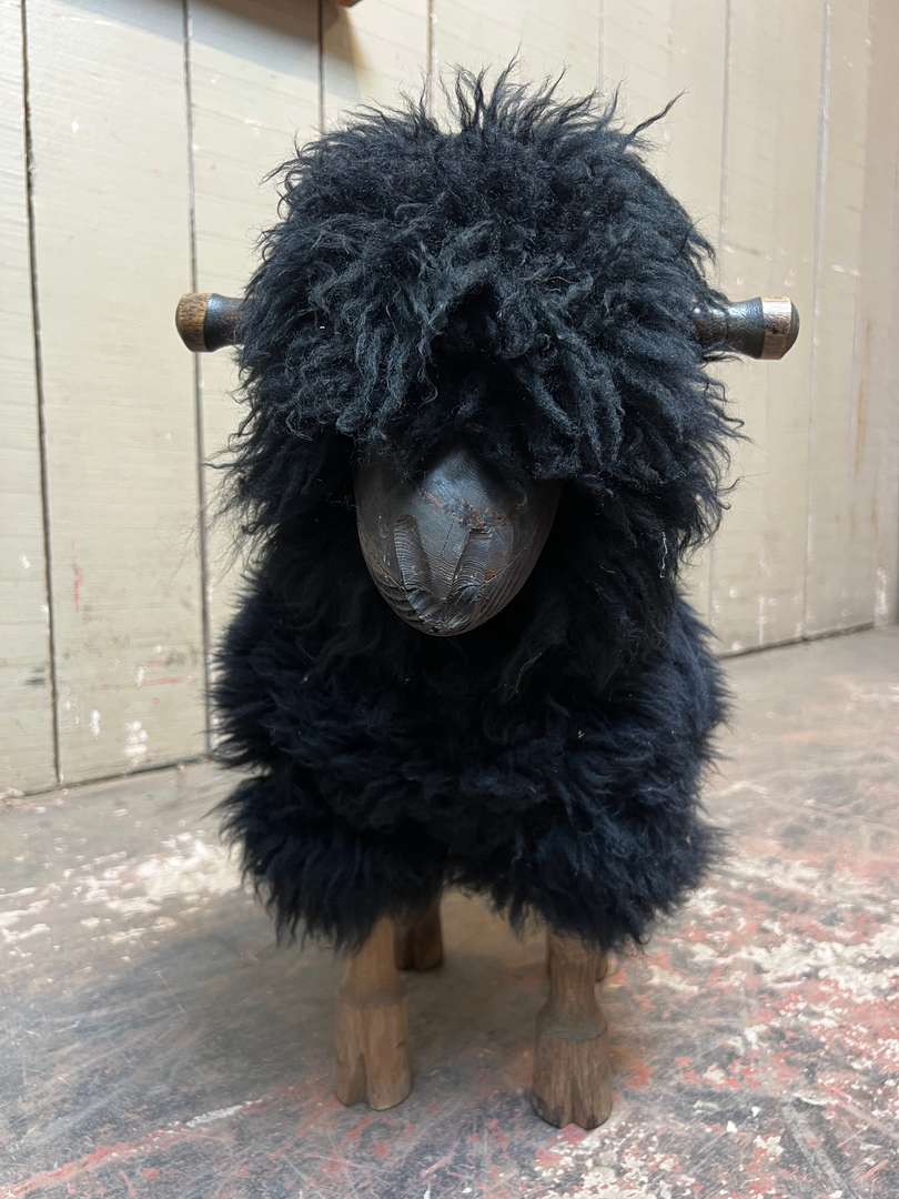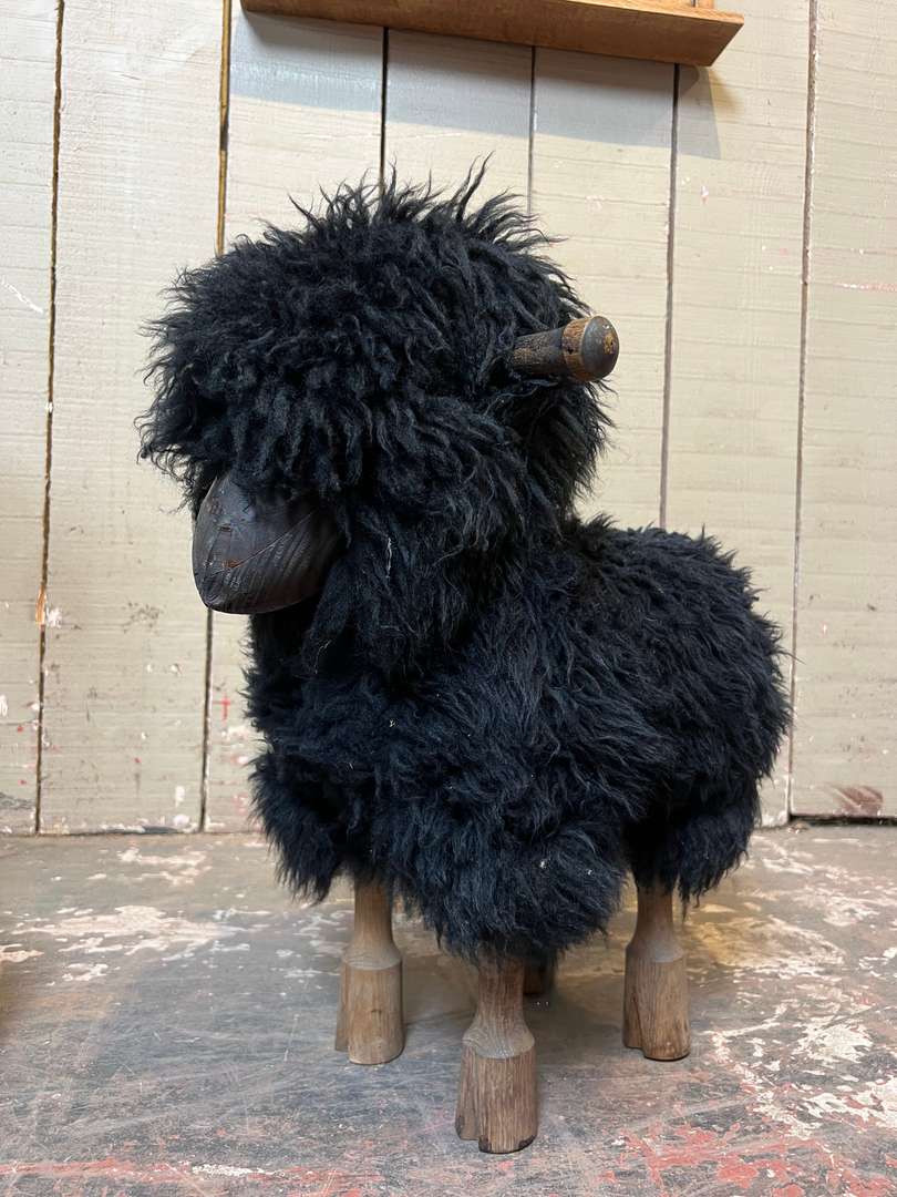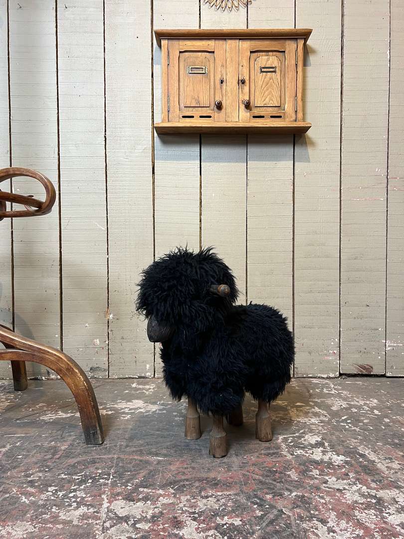 Petit mouton décoratif des années 60/70. Structure en bois, recouverte d’une laine bouclée noire. Un objet à la fois ludique et décoratif, idéal dans une chambre d’enfant ou en touche originale dans un intérieur.