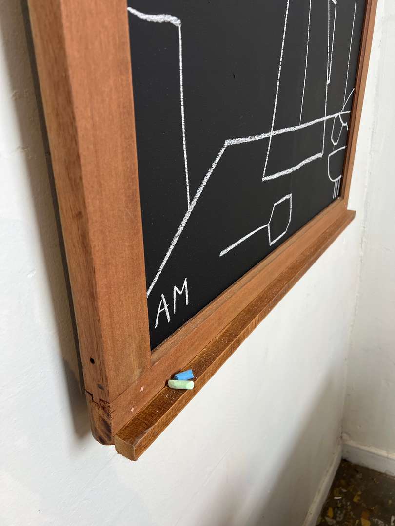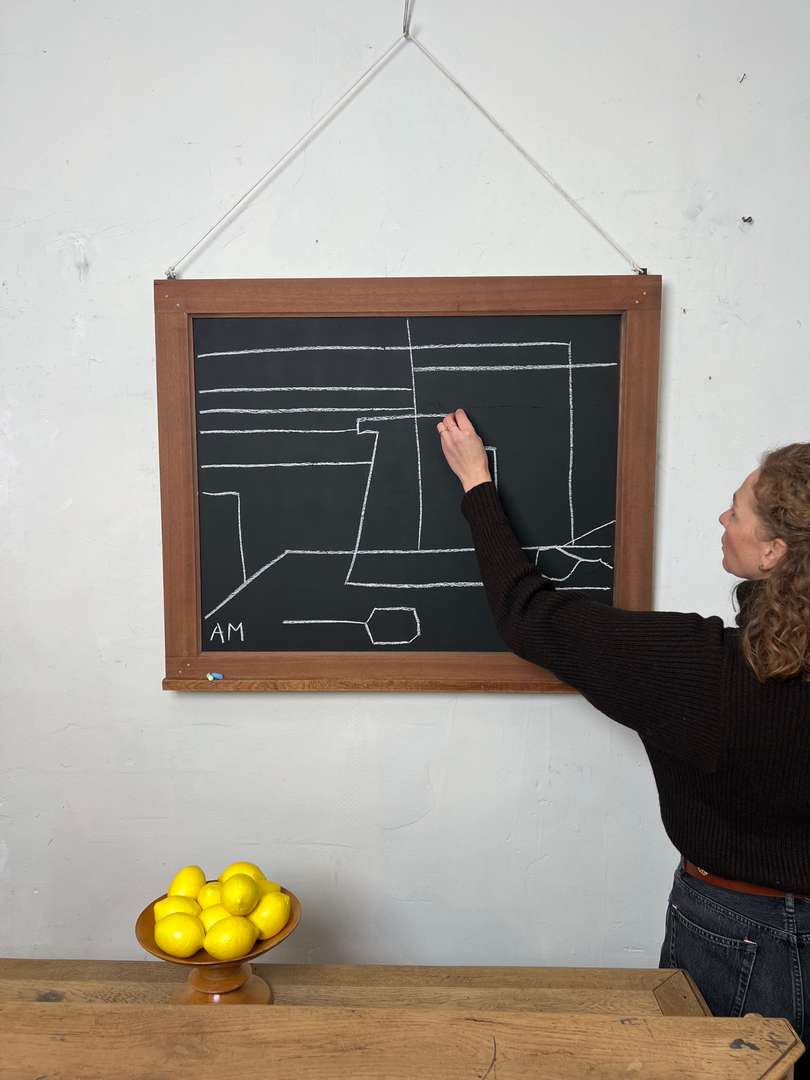 Petit tableau noir 180 € Ajouter au panierPetit tableau en bois peint en noir, façon tableau d’école, avec un encadrement en acajou. Idéal en décoration murale pour un style atelier ou pour écrire et dessiner à la craie. #tableaudecoration #acajou #styleatelierDimensionsLargeur95 cmProfondeur6 cmHauteur78 cmRenseignementsRéférence2549007