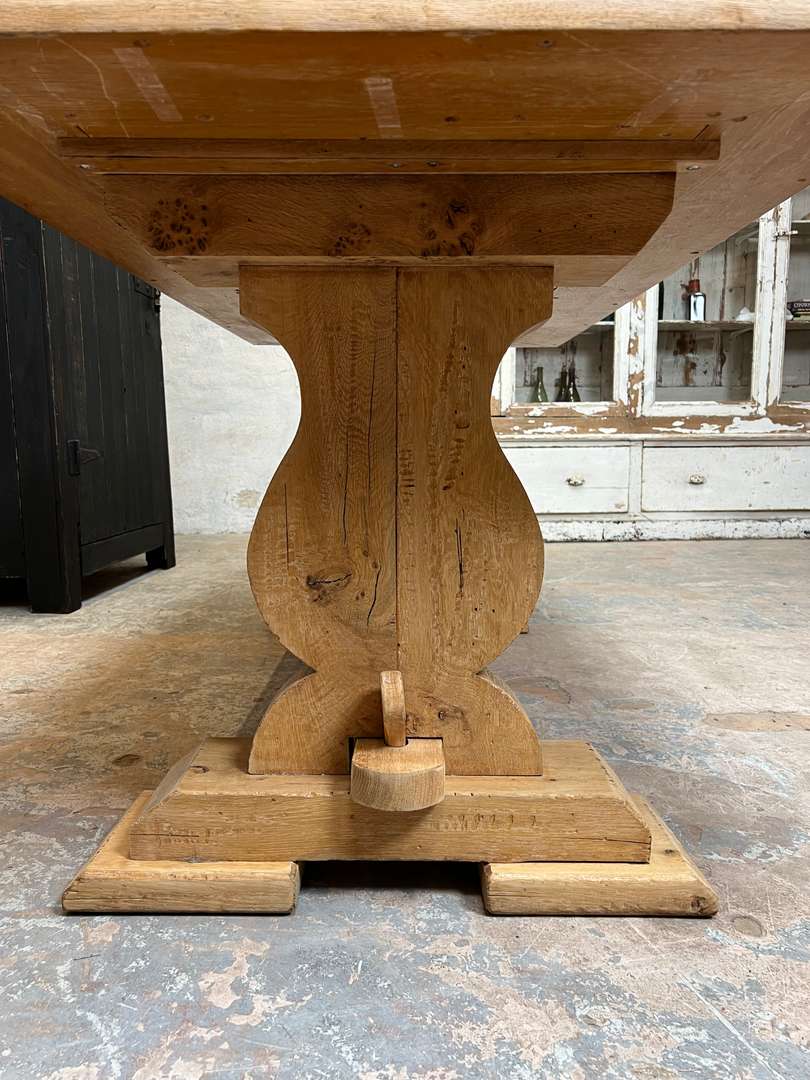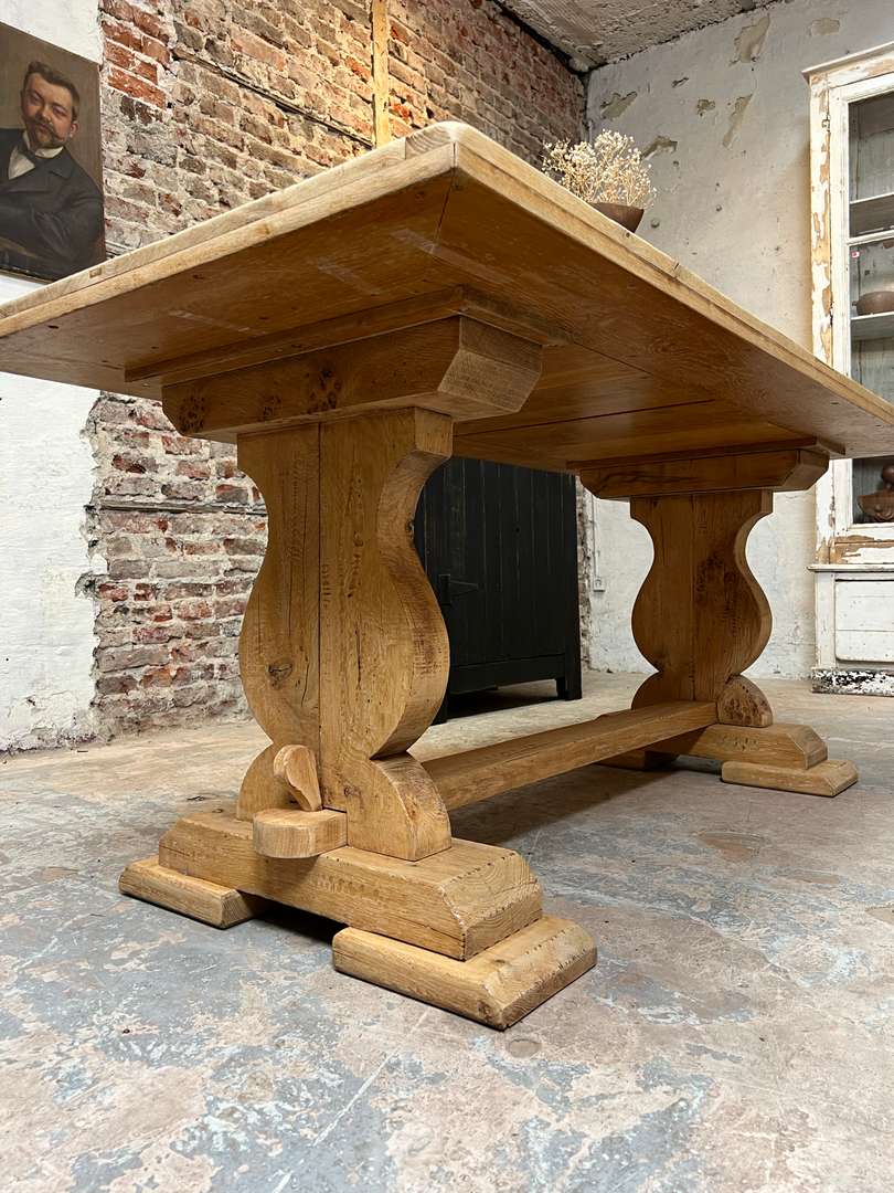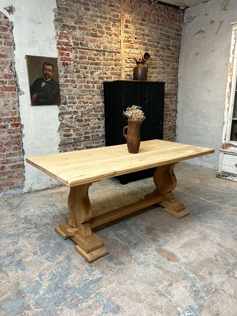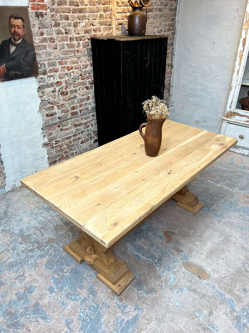 Charmante table de monastère des années 50, entièrement en chêne. Un modèle aux belles proportions, facile à placer, pouvant accueillir 6 à 8 personnes. Le plateau est brut et peut être laissé tel quel ou recevoir la finition de son choix.