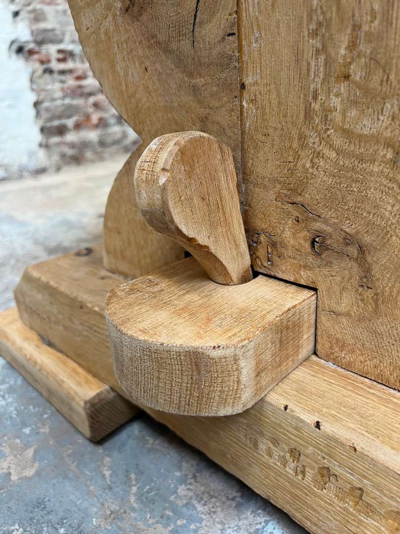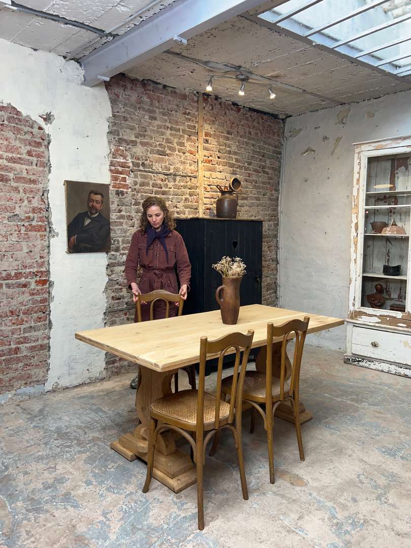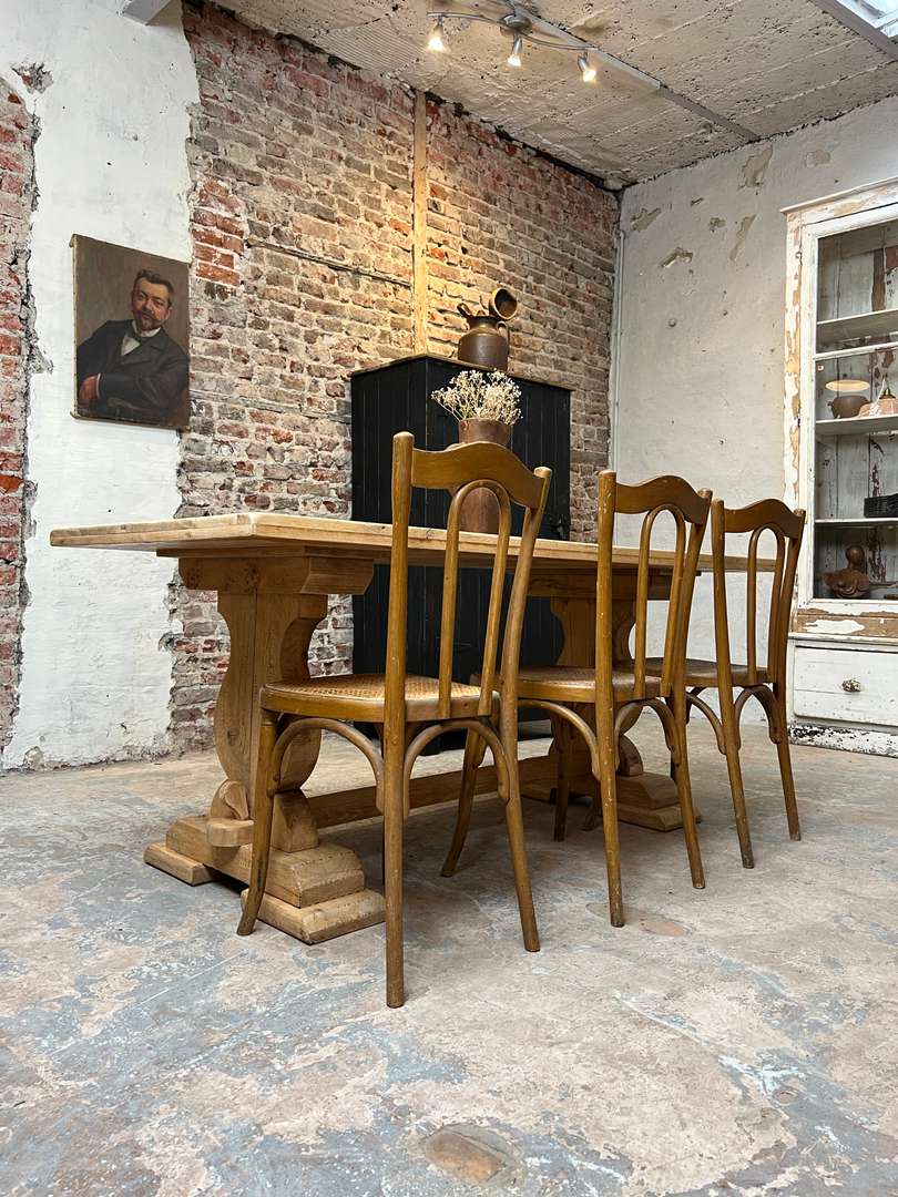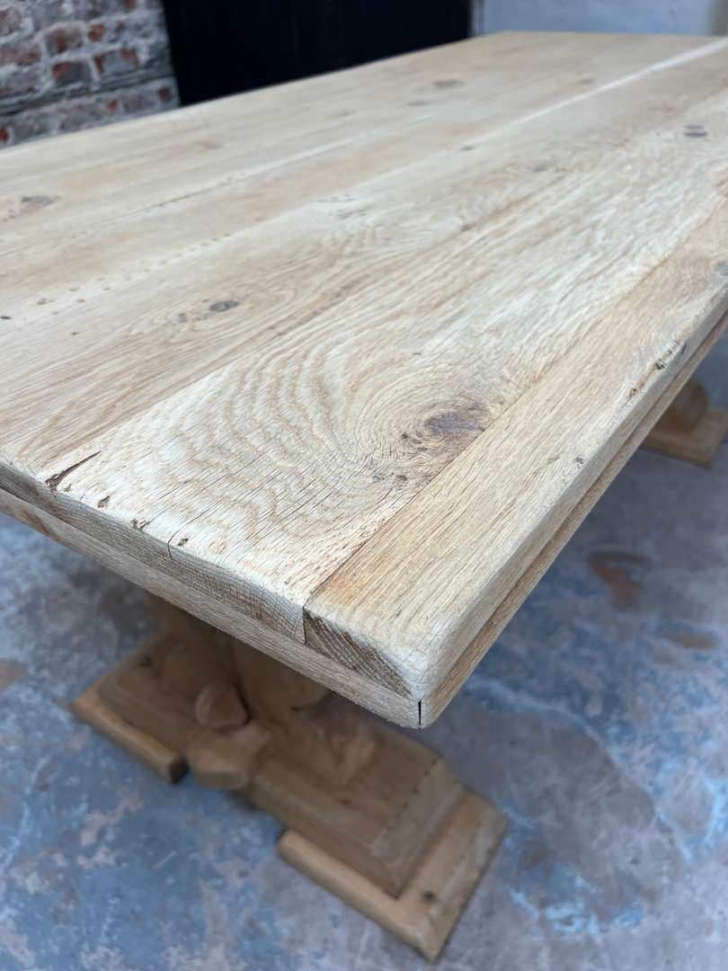 Charmante table de monastère des années 50, entièrement en chêne. Un modèle aux belles proportions, facile à placer, pouvant accueillir 6 à 8 personnes. Le plateau est brut et peut être laissé tel quel ou recevoir la finition de son choix.